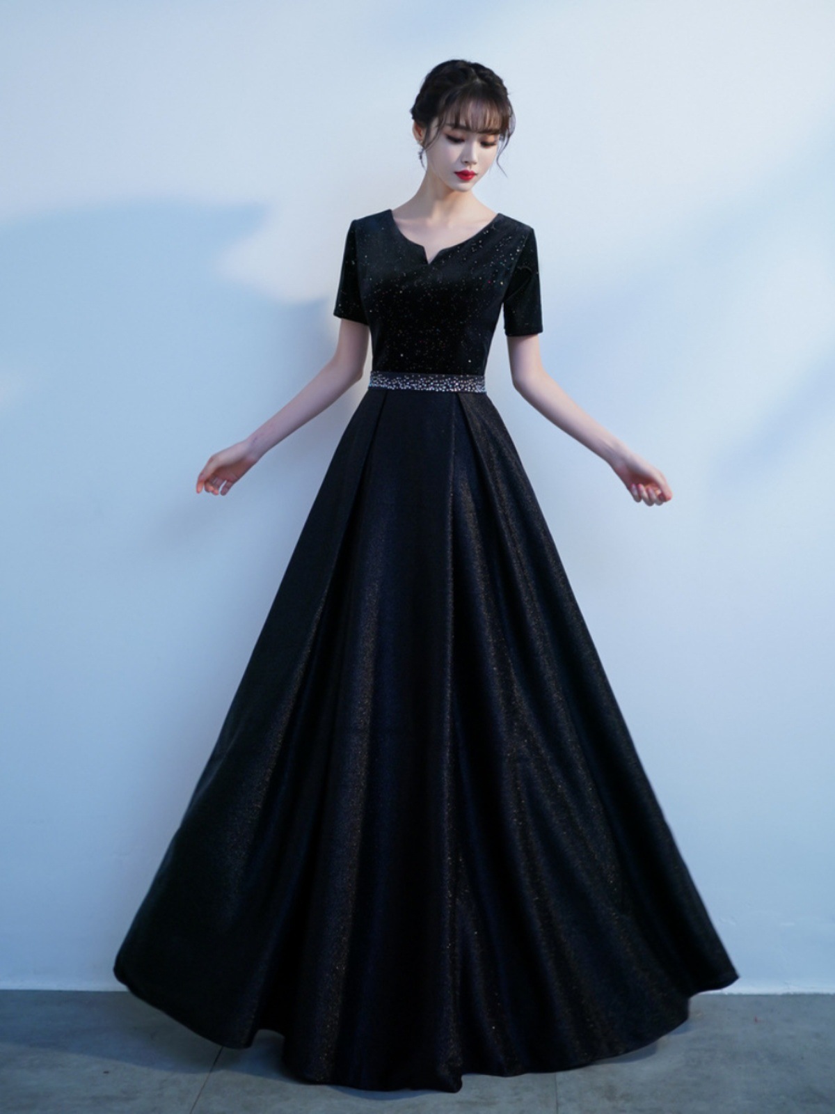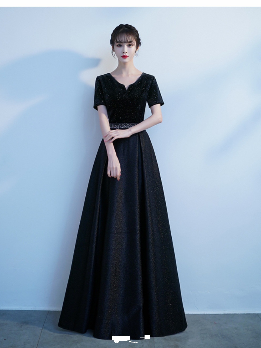 Черное вечернее платье с эффектом класса люкс, новинка 2025 года, элегантное платье для банкетов, выступлений хоров, платье для ведущих.