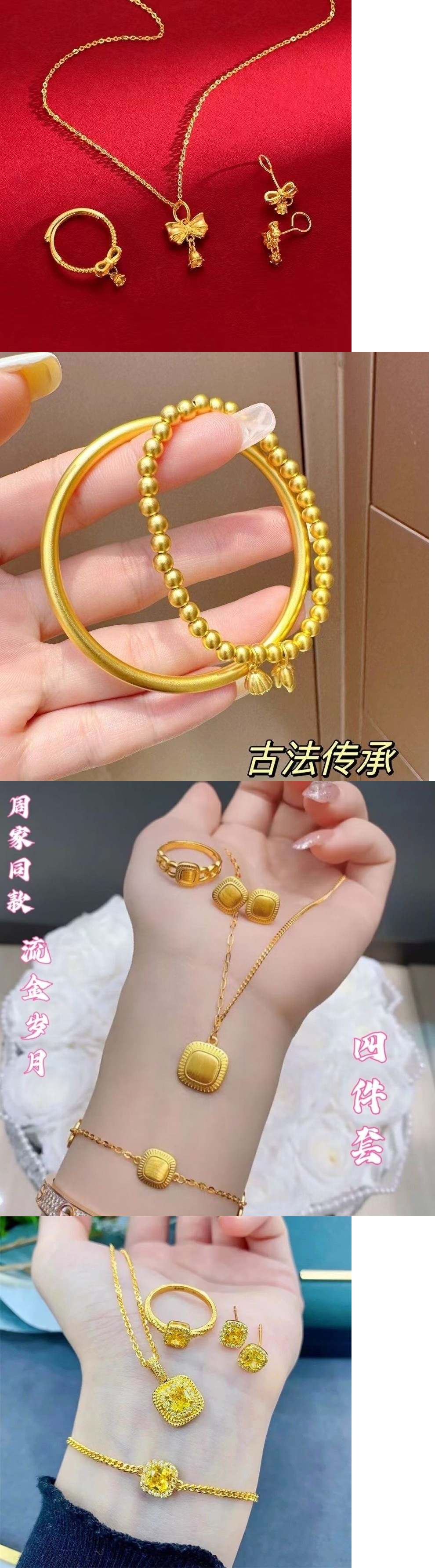 Аутентичная помолвка, имитация трех золотых украшений, набор из пяти частей, древний метод наследования браслета, один бриллиант