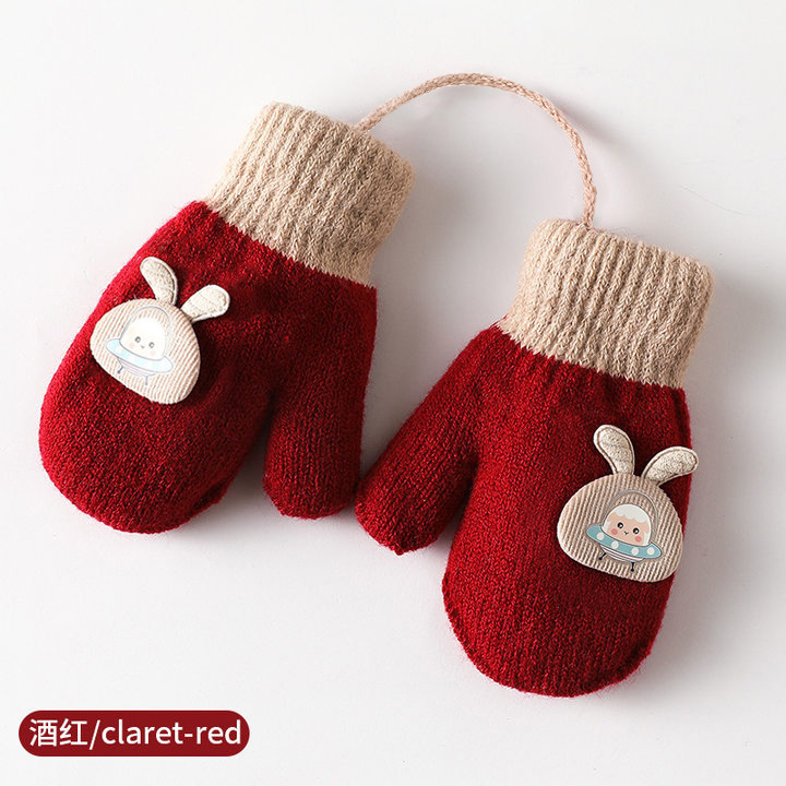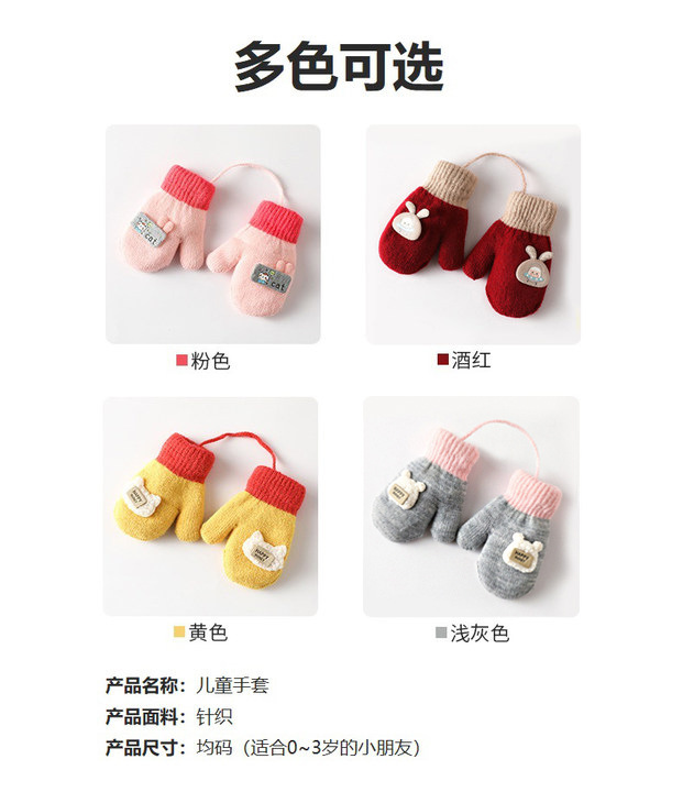 Зимний толстый бархат детские перчатки для мужчин и женщин мультфильм милый морозостойкий и теплый полный набор детский сад с веревкой