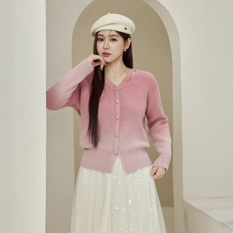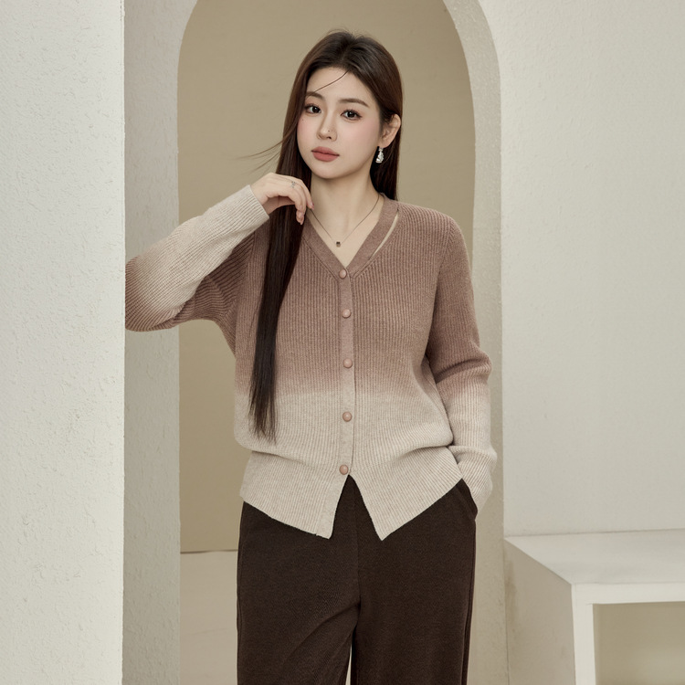 [Первый снежный ритуал Lycel градиентный свитер с V-образным вырезом] Funny Show большой размер женский толстый mm2025 весенний новый