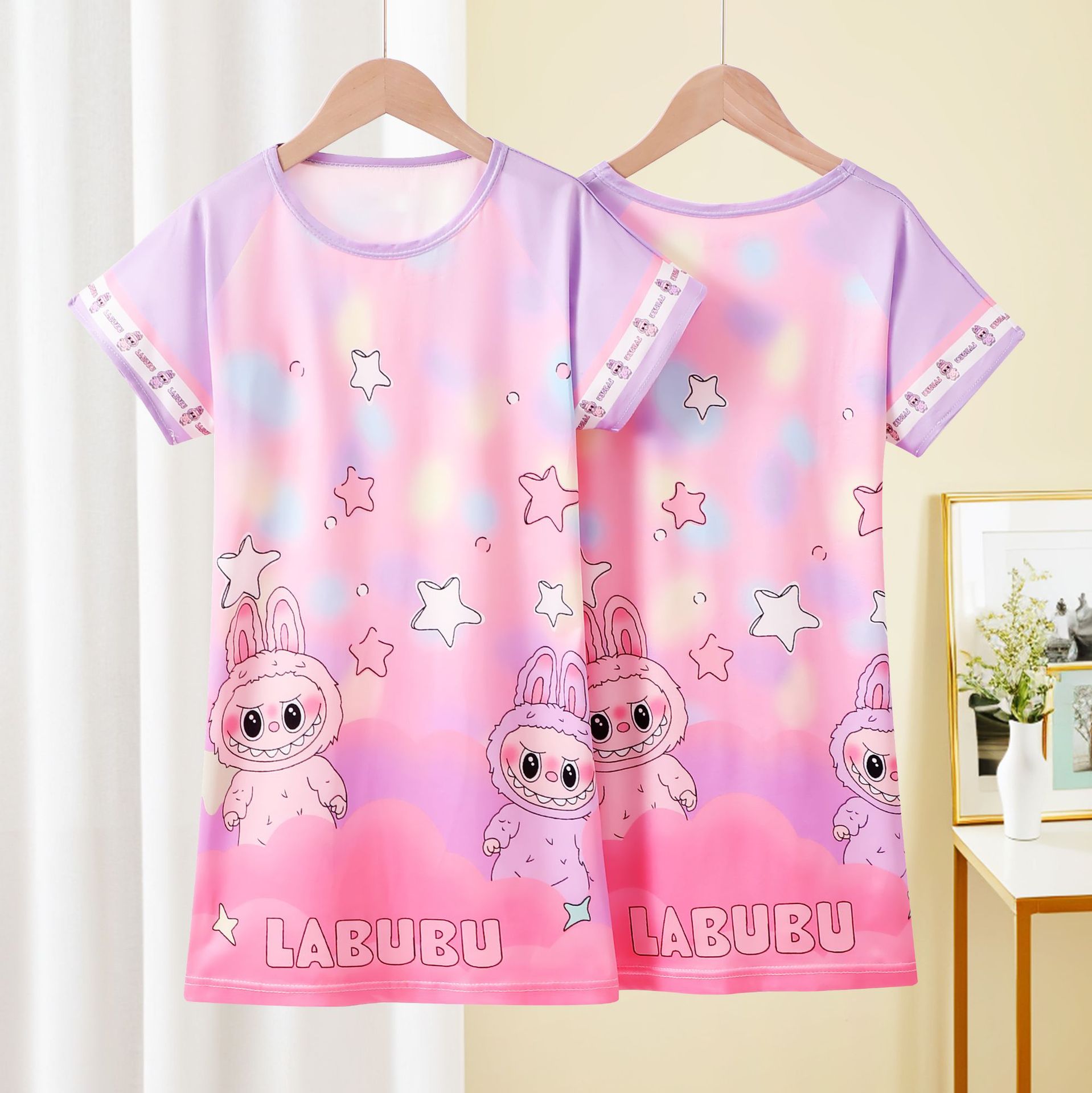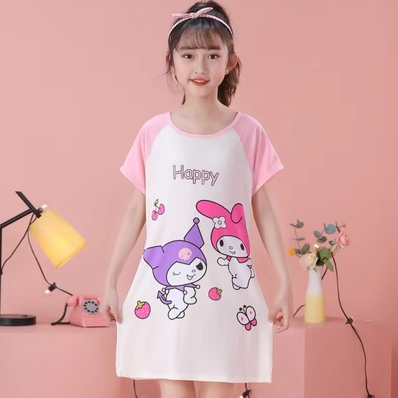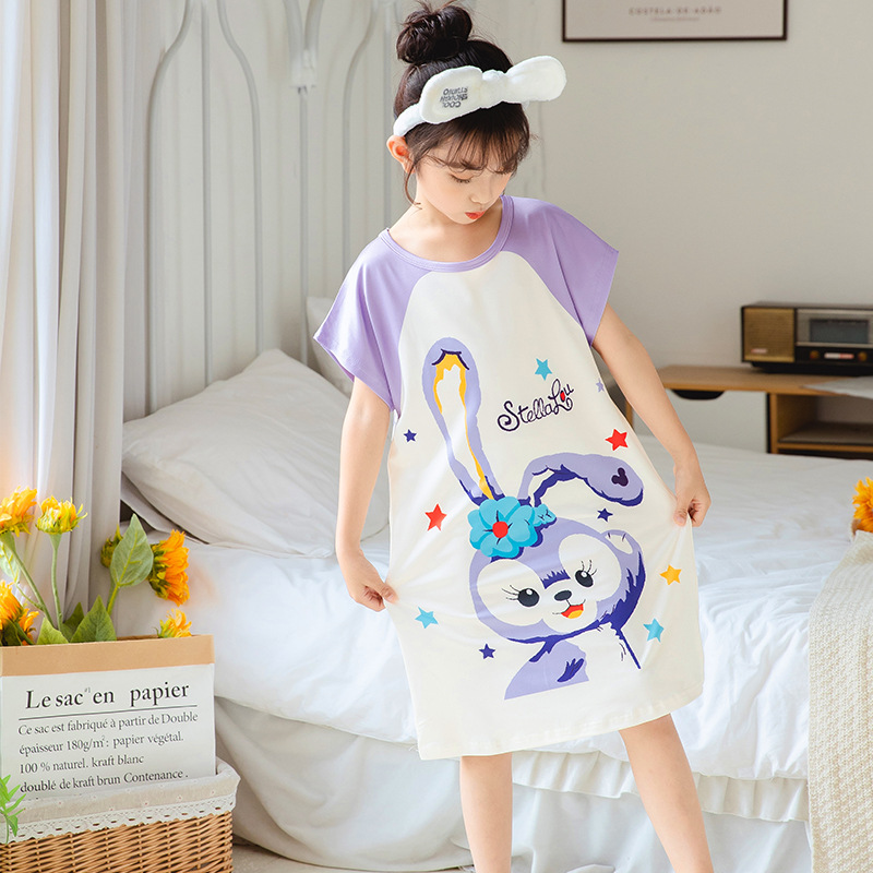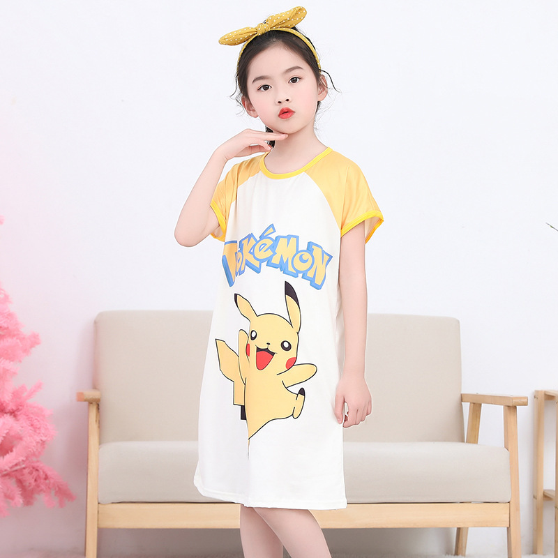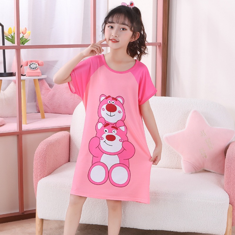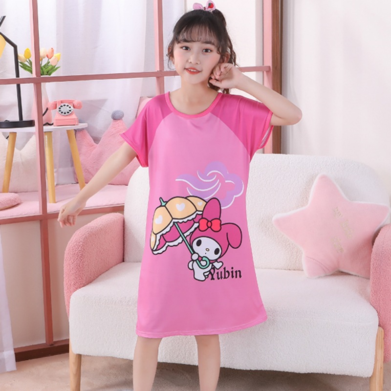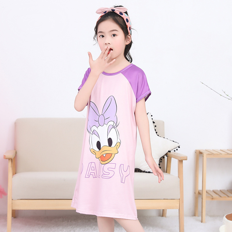 Детская пижама Девушка с короткими рукавами ночная юбка летняя маленькая девочка принцесса среднего ребенка детское летнее платье