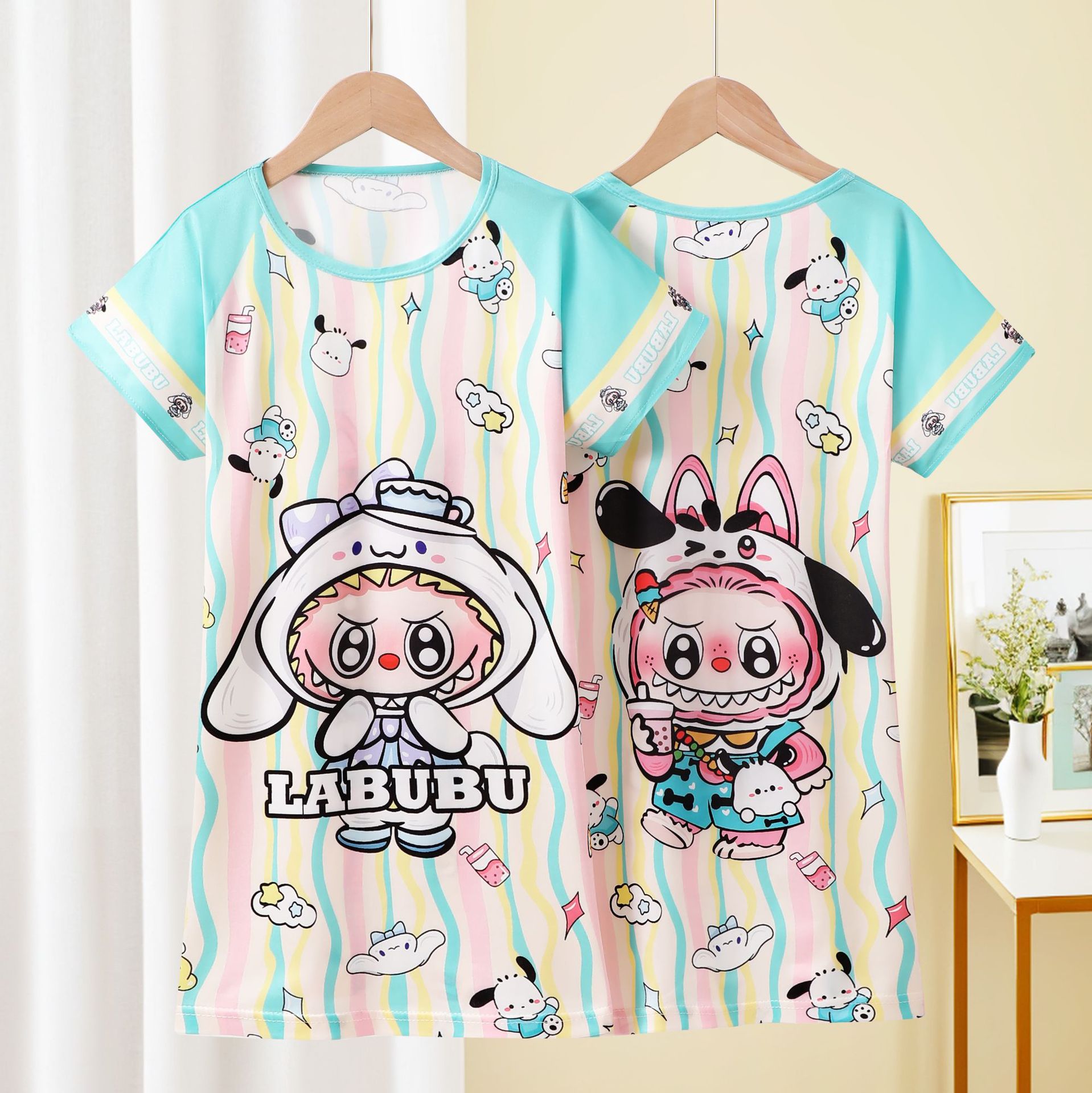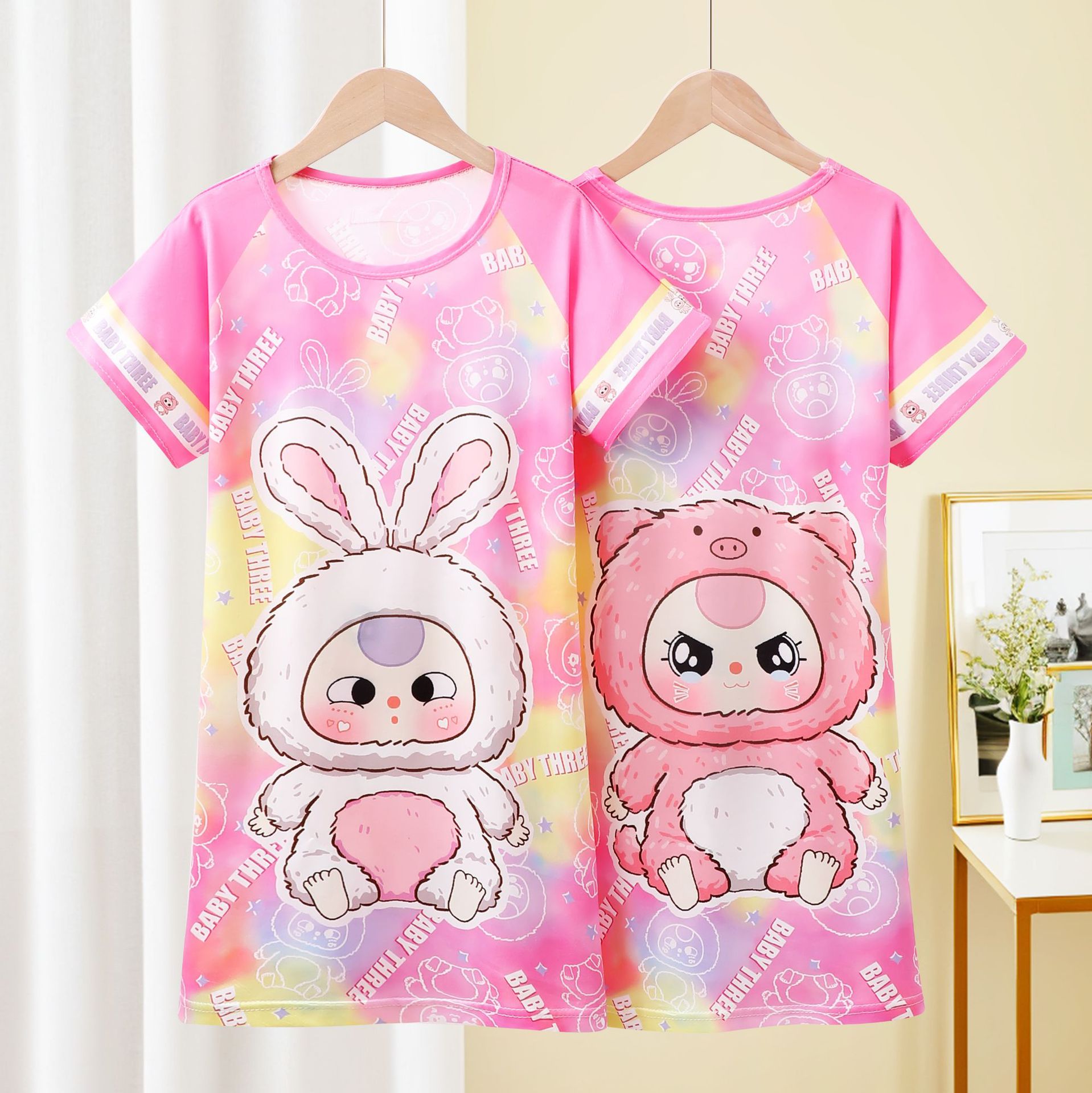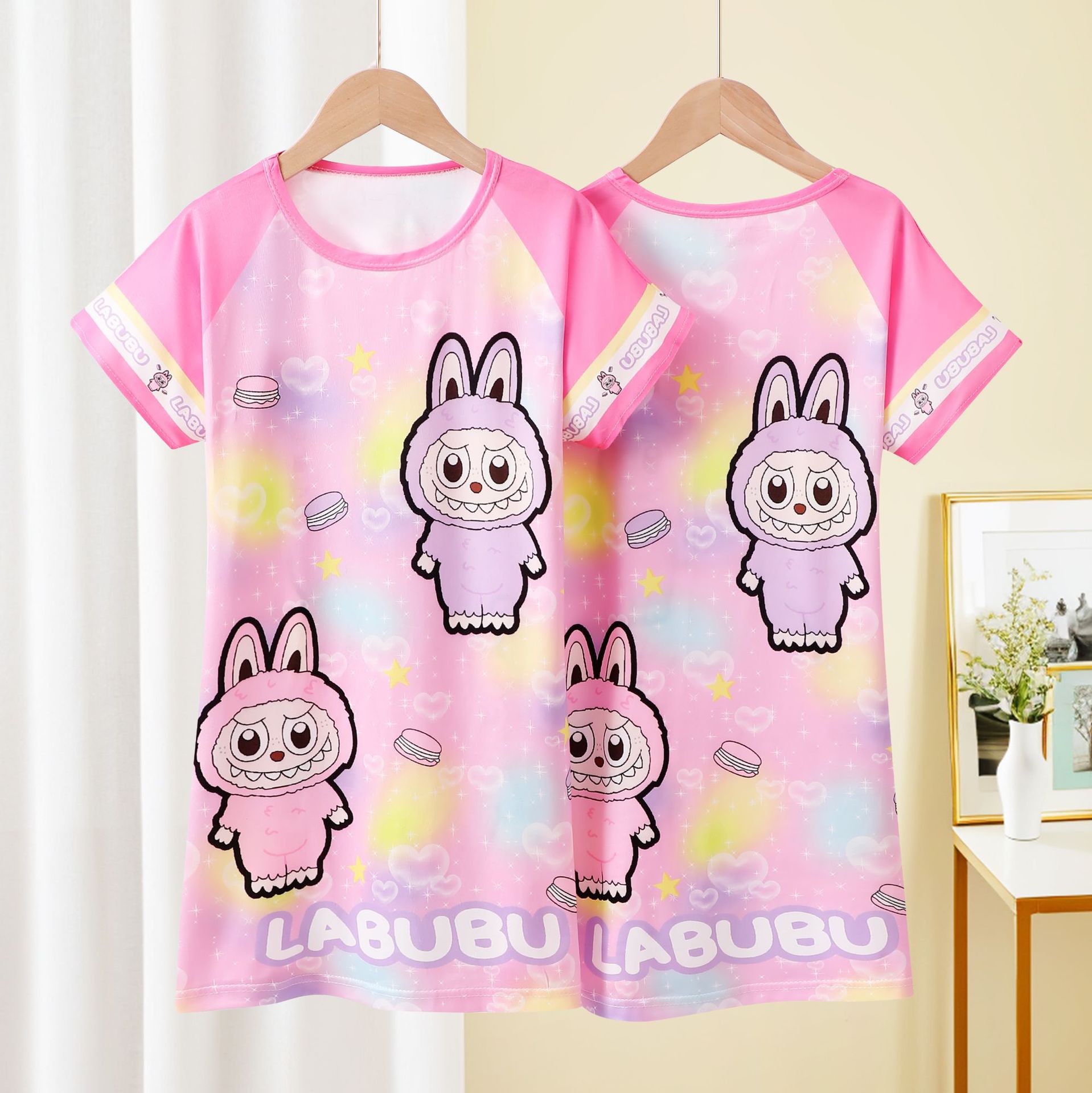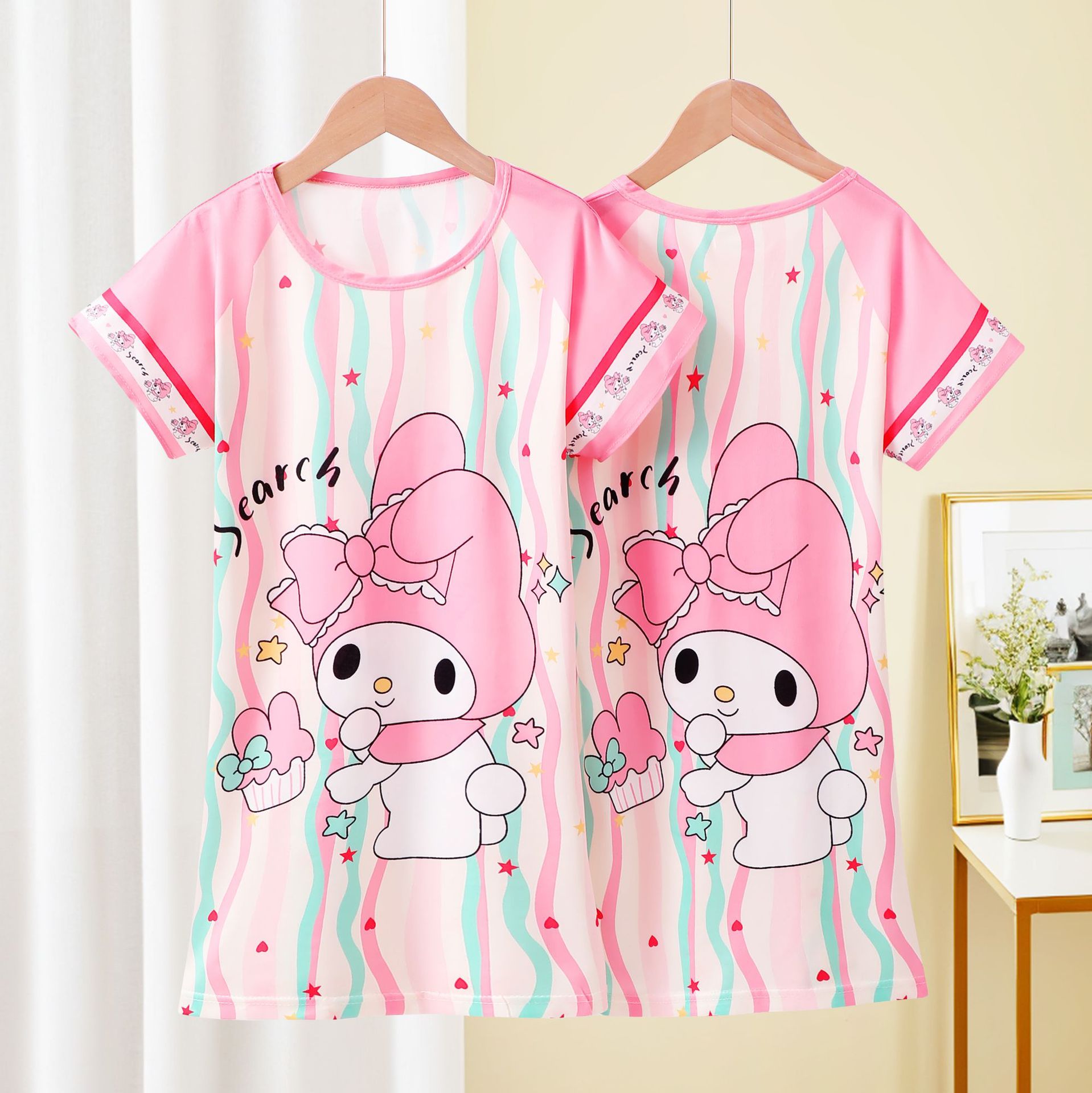 Детская пижама Девушка с короткими рукавами ночная юбка летняя маленькая девочка принцесса среднего ребенка детское летнее платье