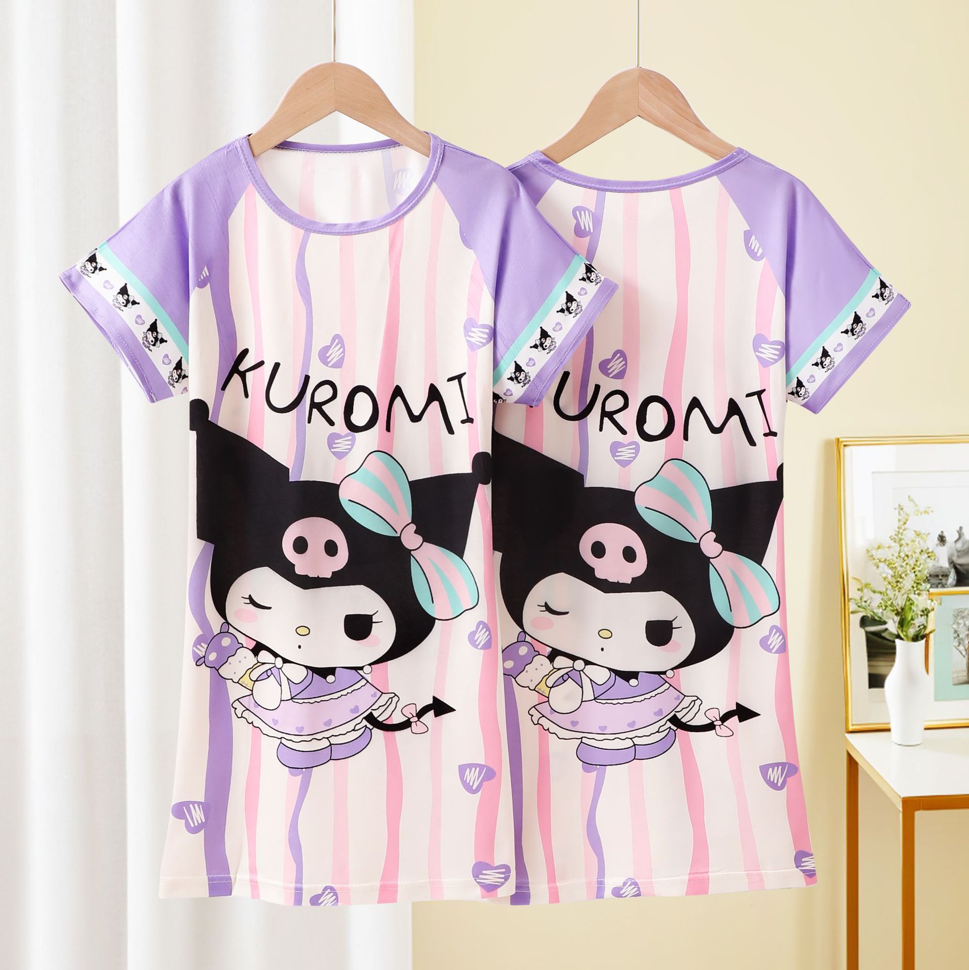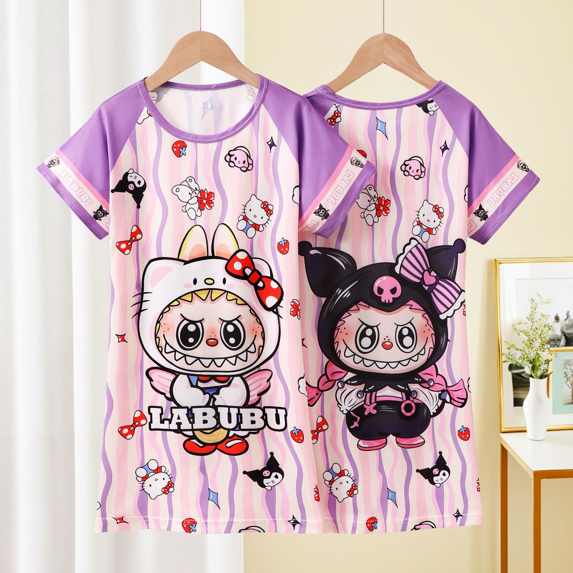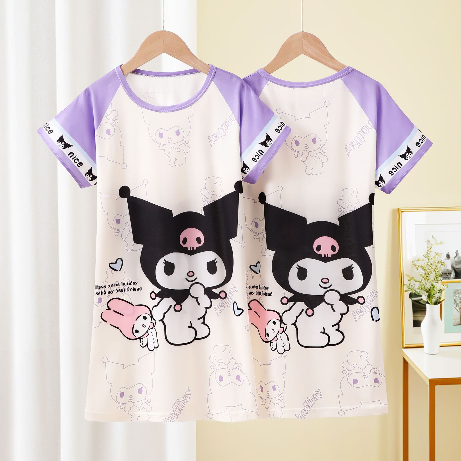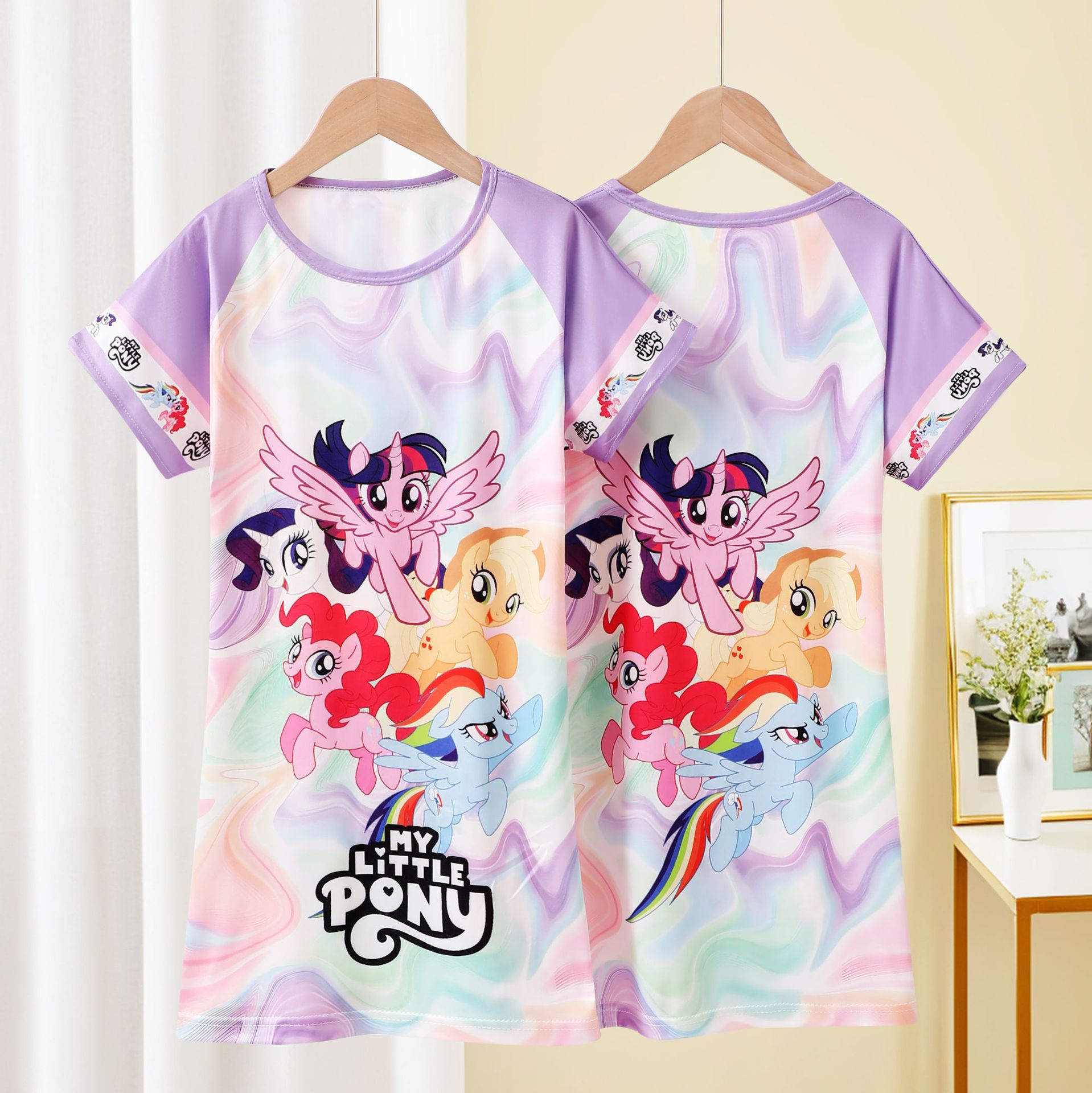 Детская пижама Девушка с короткими рукавами ночная юбка летняя маленькая девочка принцесса среднего ребенка детское летнее платье
