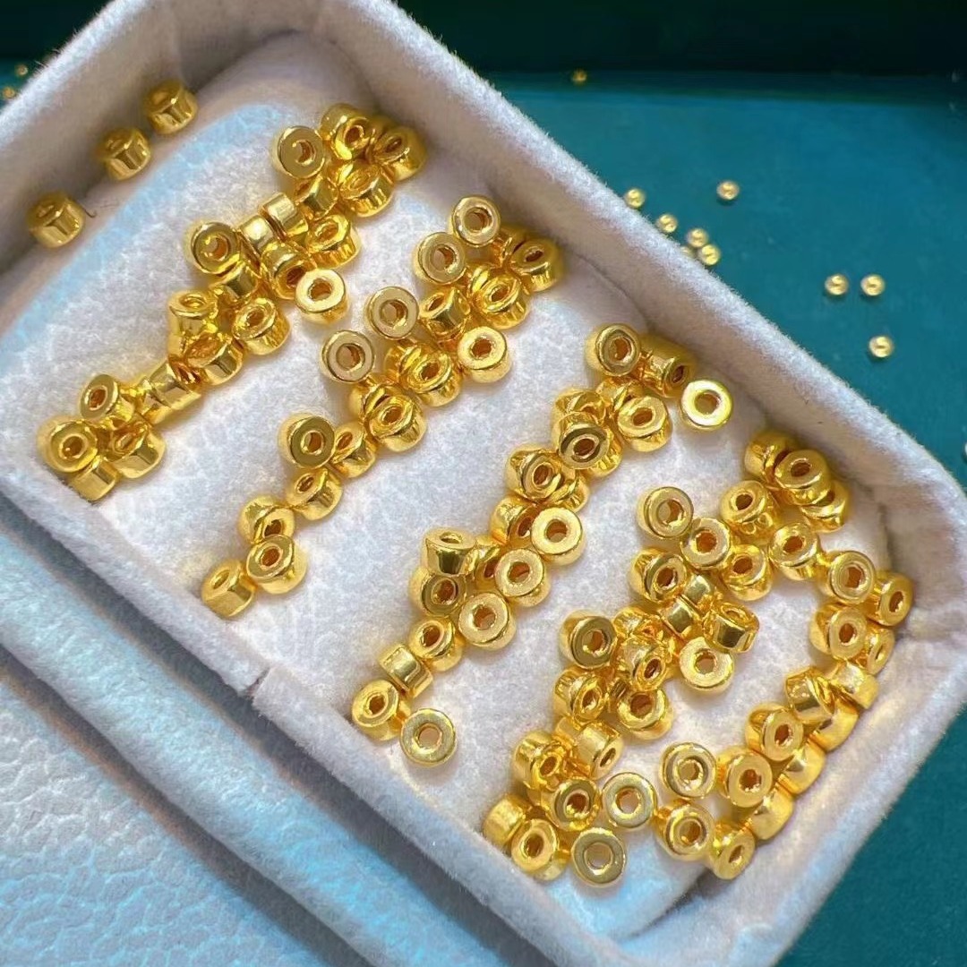 Золотая бусина-разделитель 3D из чистого золота 999 пробы, гладкая бусина-разделитель для браслета, DIY, маленький аксессуар из чистого золота.