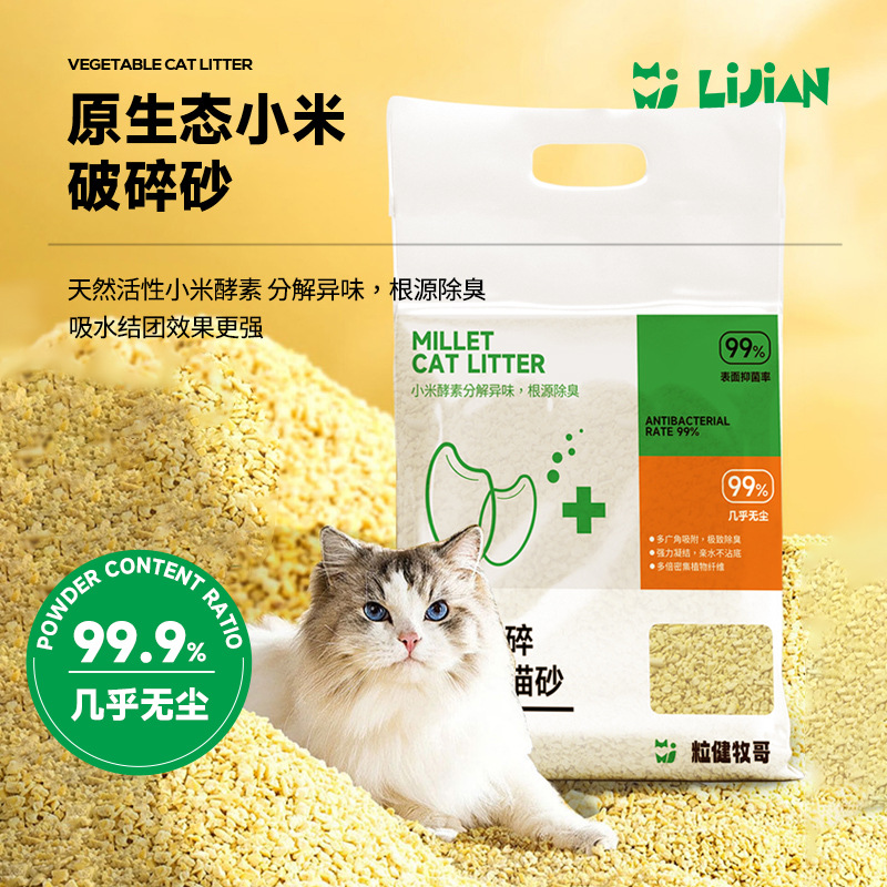 Наполнитель для кошачьего туалета Lijianmuge на растительной основе из маниоки, с функцией дезодорации, низким содержанием пыли, нелипкий, с донным слоем из проса