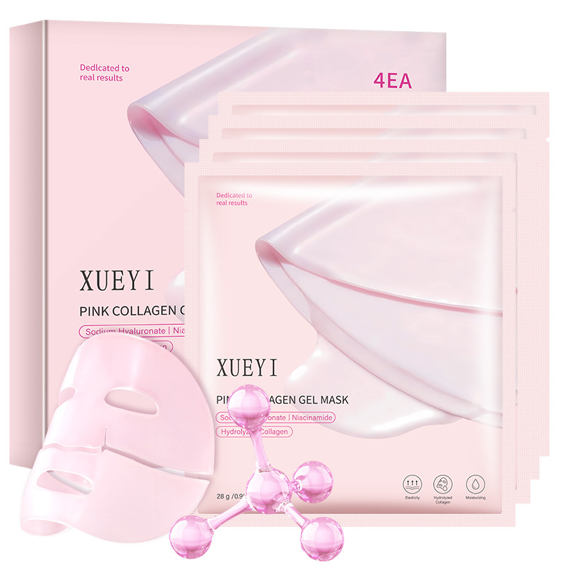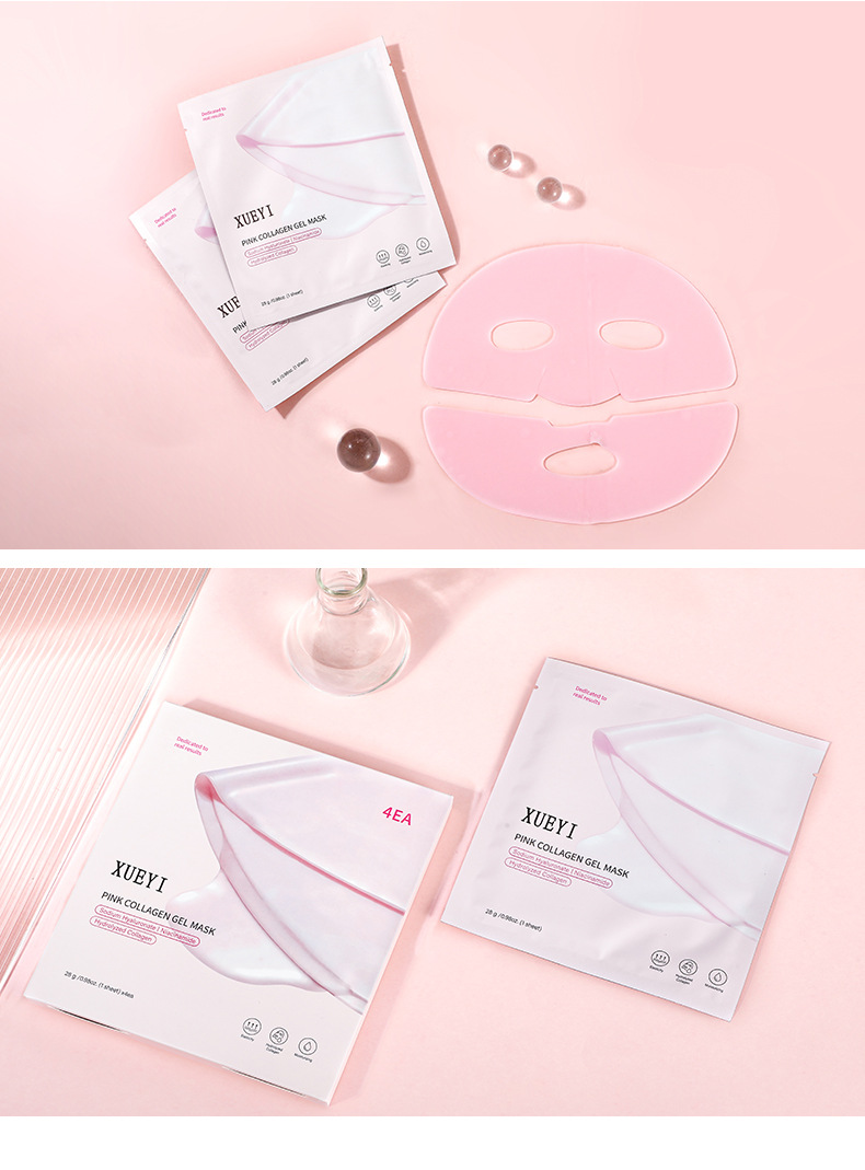 Маска коллагеновая Biying Factory Amazon TK XUEYI, розовая, полупрозрачная, 4 штуки в упаковке