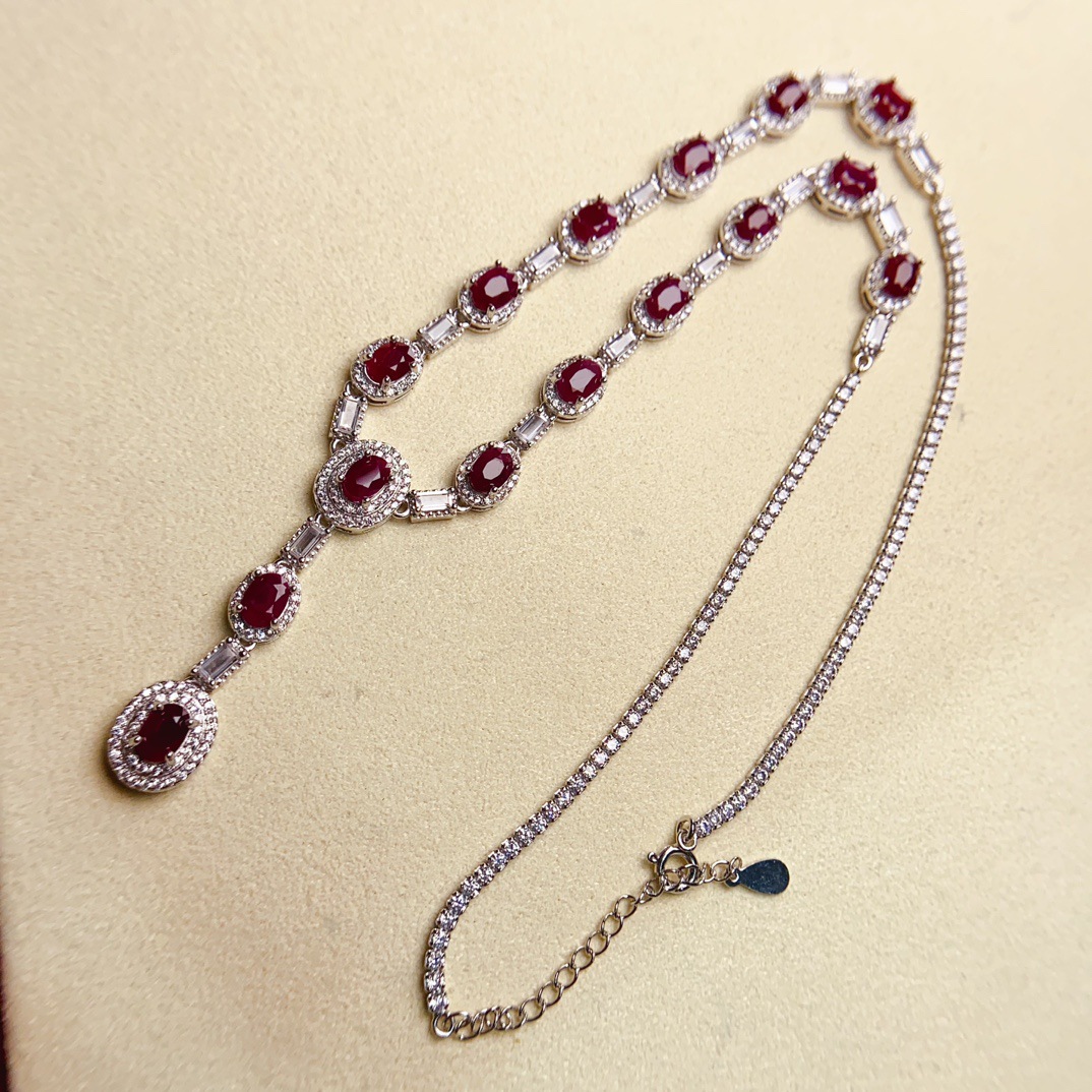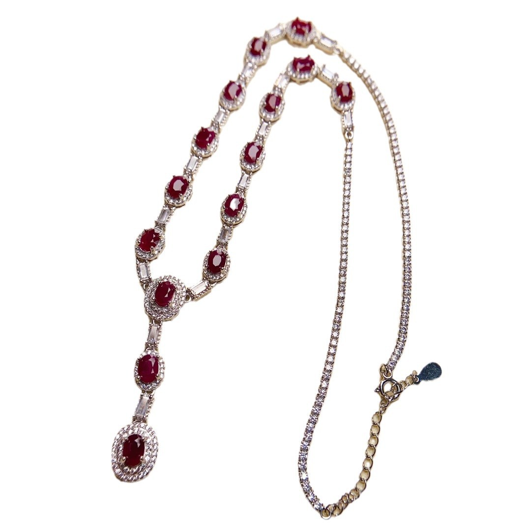 Ожерелье из натурального старого жареного рубина S925, инкрустированное серебром, основной камень 5*7
