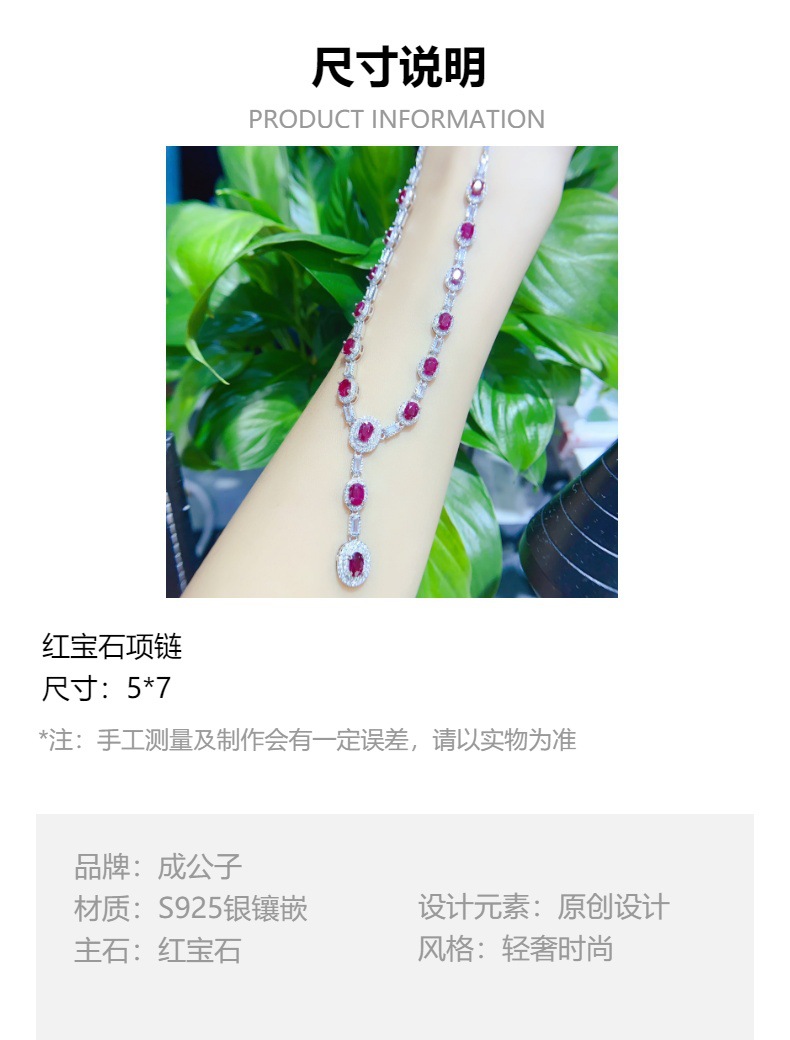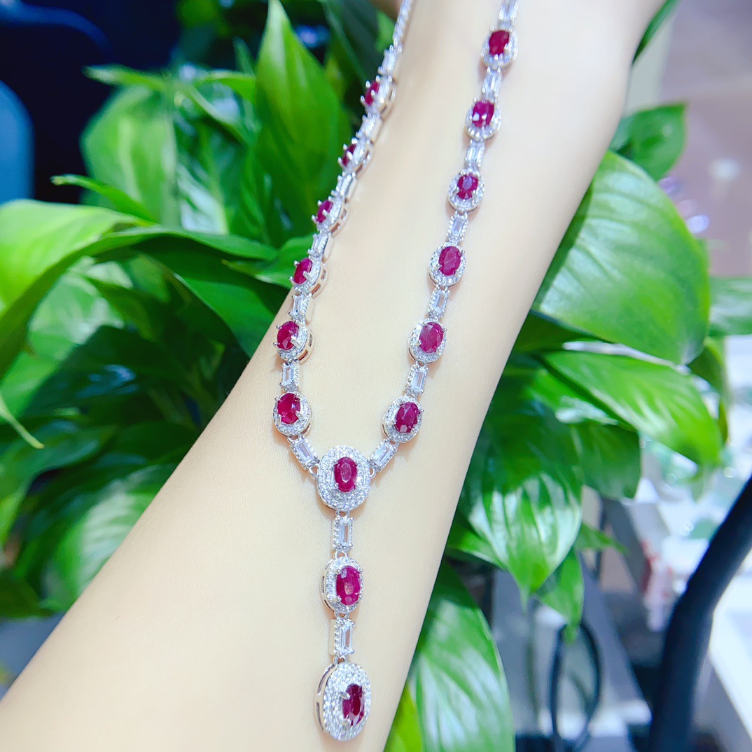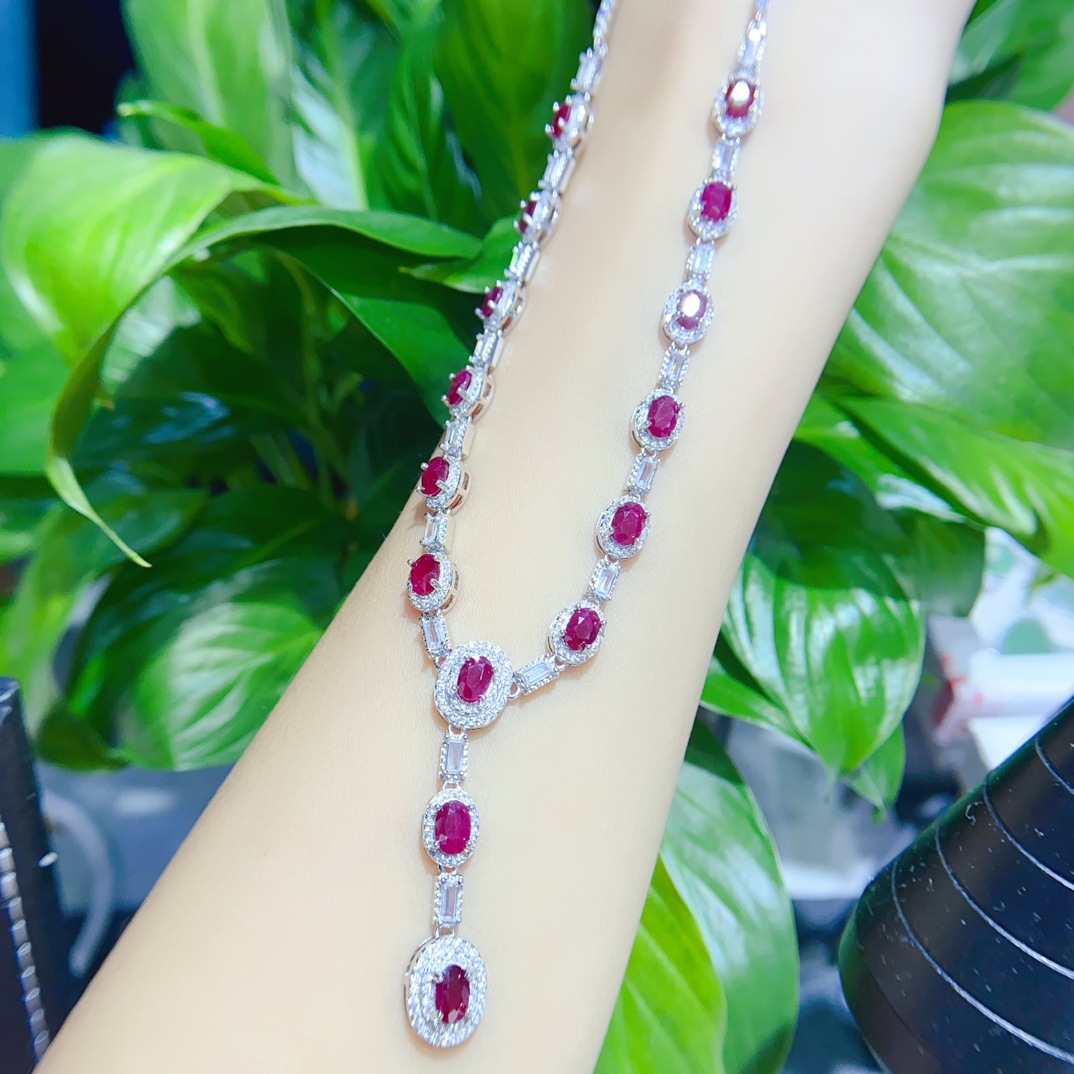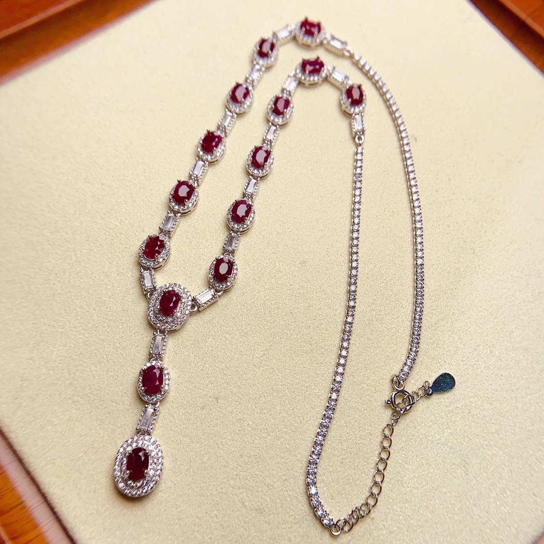 Заводская оптовая продажа натурального рубинового ожерелья S925 Серебряная инкрустация основного камня 5*7 Горячие продажи в Европе и Америке