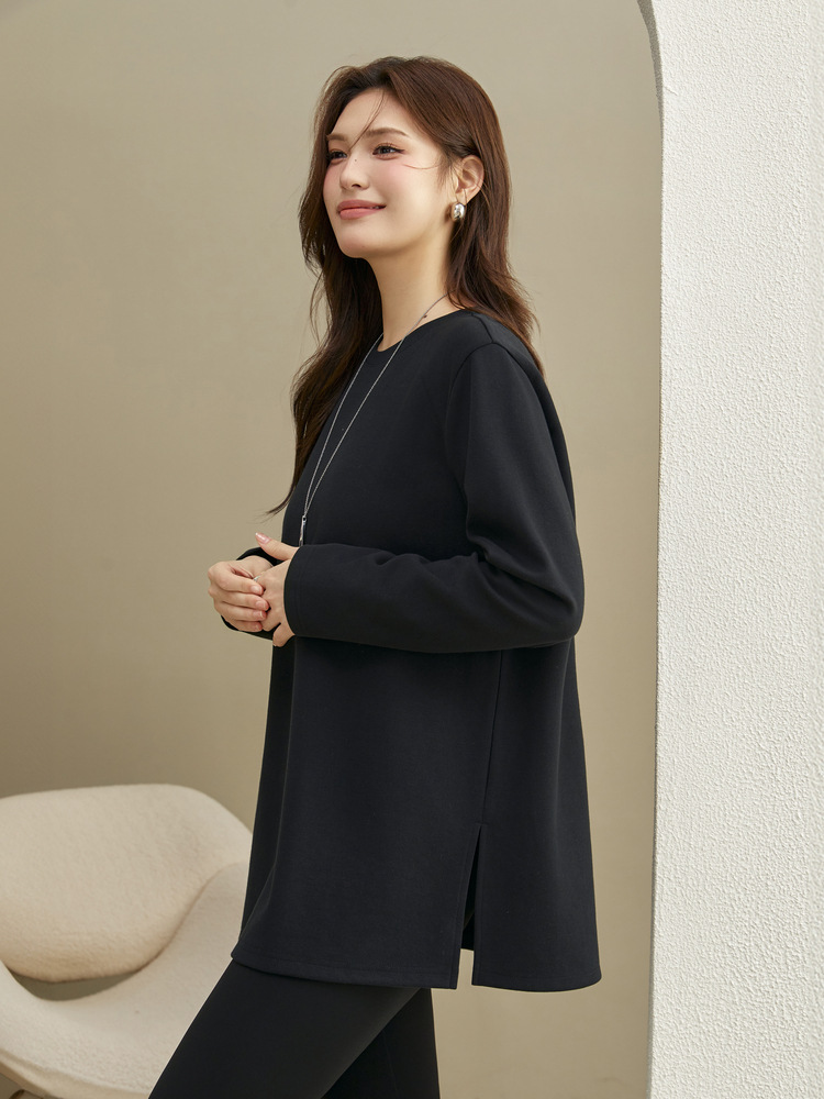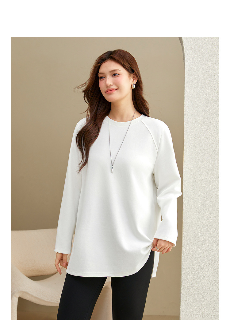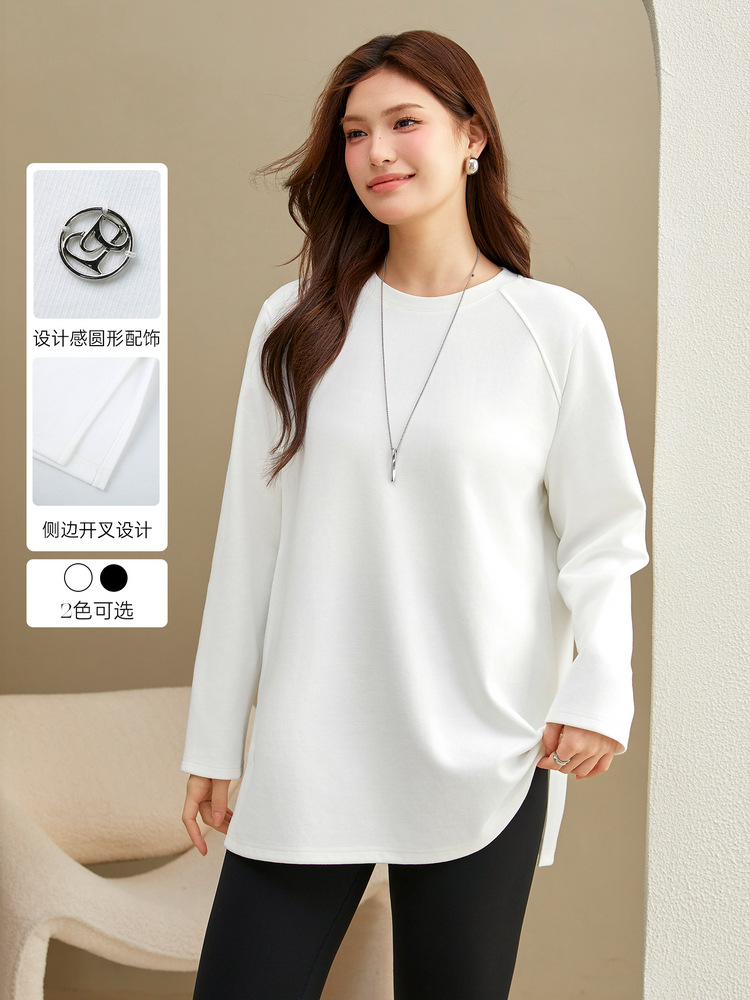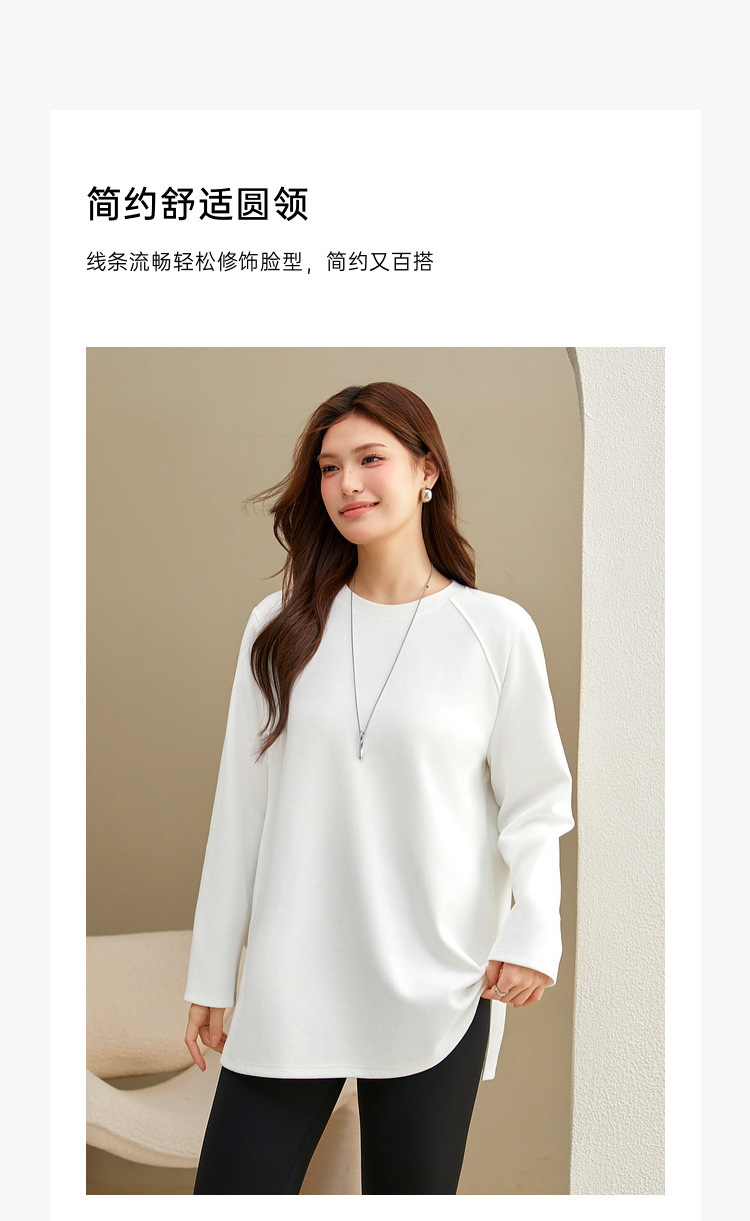 [Простая и случайная ленивая футболка] Funny Show большой размер женский открытый вилочный дикий топ жирный mm2025 весенний новый