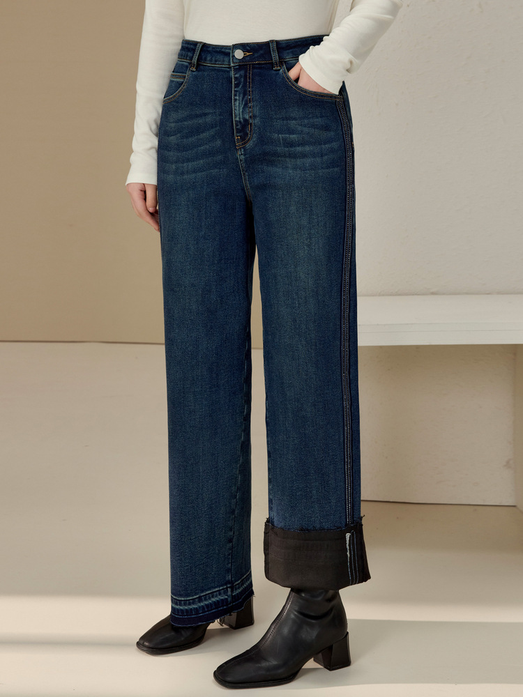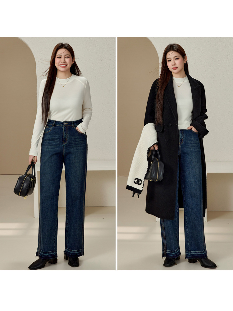 [Волосатые джинсы Leisel с широкими ножками] Funny Show Большой размер женский толстый mm2025 весенний новый