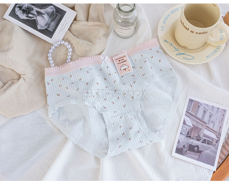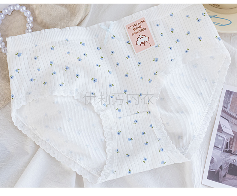 10A нижнее белье с цветочным принтом 327, женское нижнее белье из чистого хлопка, хлопковые бесшовные трусы со средней талией, нижнее белье для девочек, нижнее белье из чистого хлопка