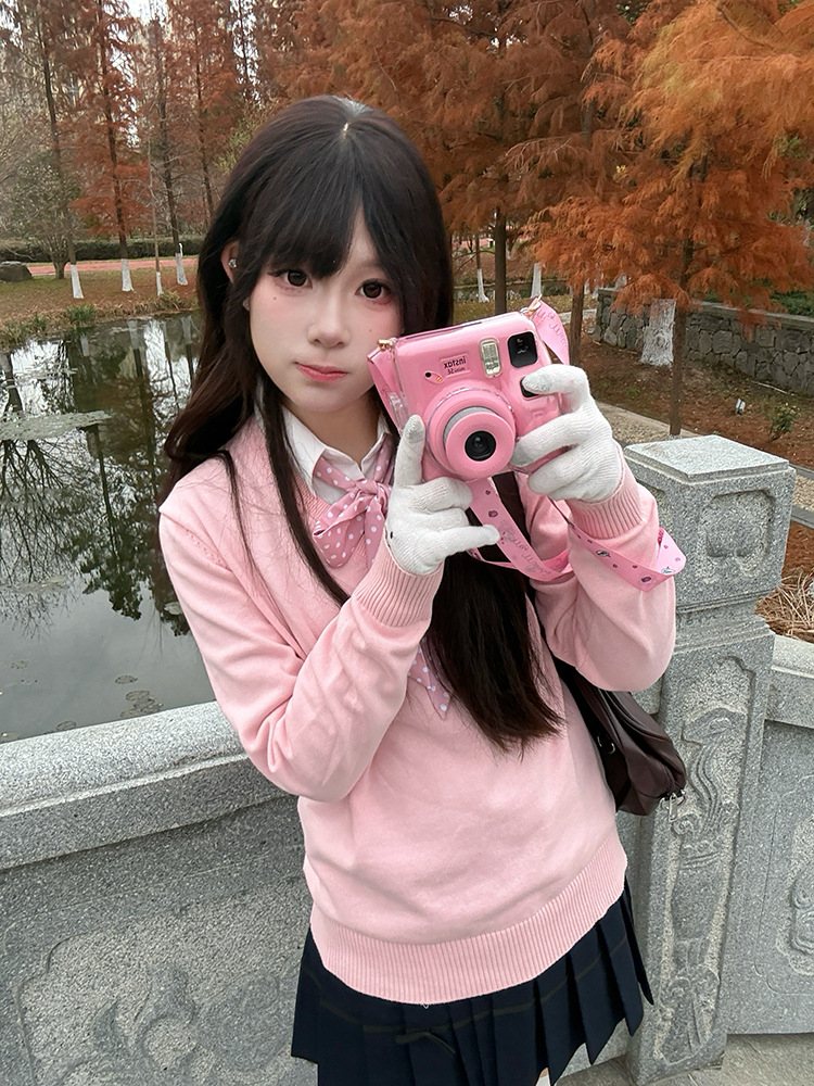 Оригинальный свитер JK, имитирующий двухслойный дизайн, однотонный, в японском стиле, униформа, студенческий стиль, трикотаж с длинными рукавами, осенне-зимний, женский.