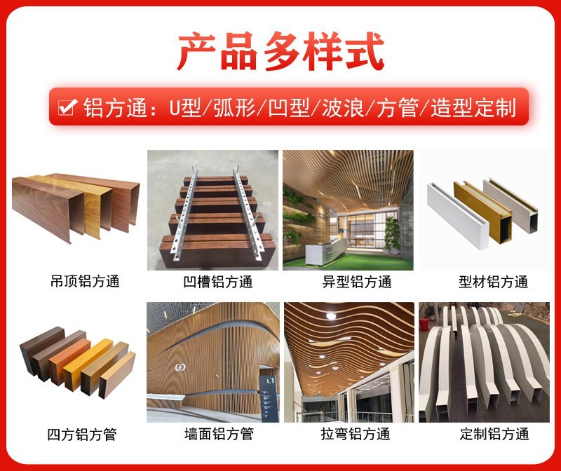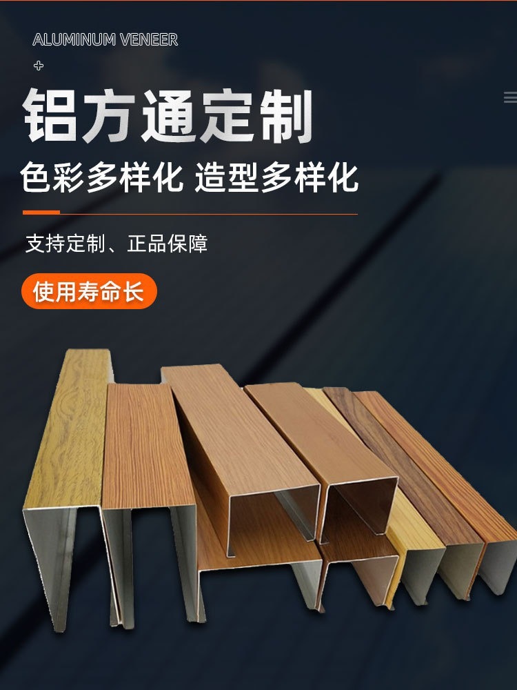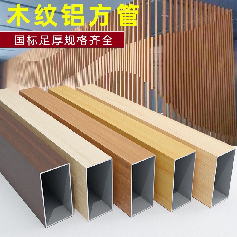 Алюминиевая квадратная серия; Квадратная труба из алюминиево-магниевого сплава; Алюминиевая решетка; Трансферная печать под дерево, полимерное покрытие, распыление, процесс роликового покрытия; Алюминиевая квадратная труба