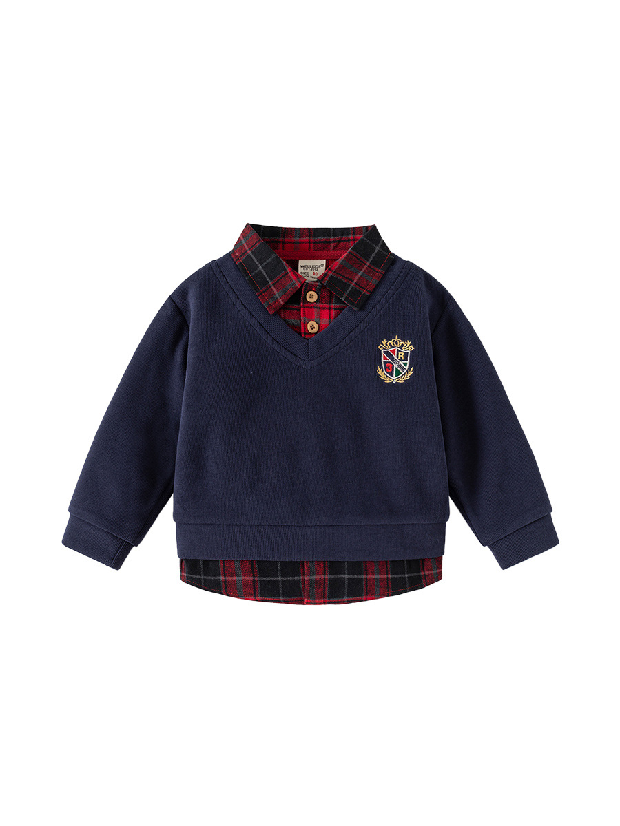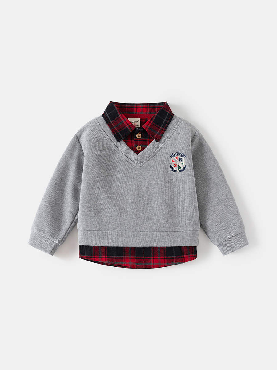 Весенний мальчик поддельный двухсекционный свитер весенний костюм 2025 новая корейская версия рубашки с длинными рукавами для детей