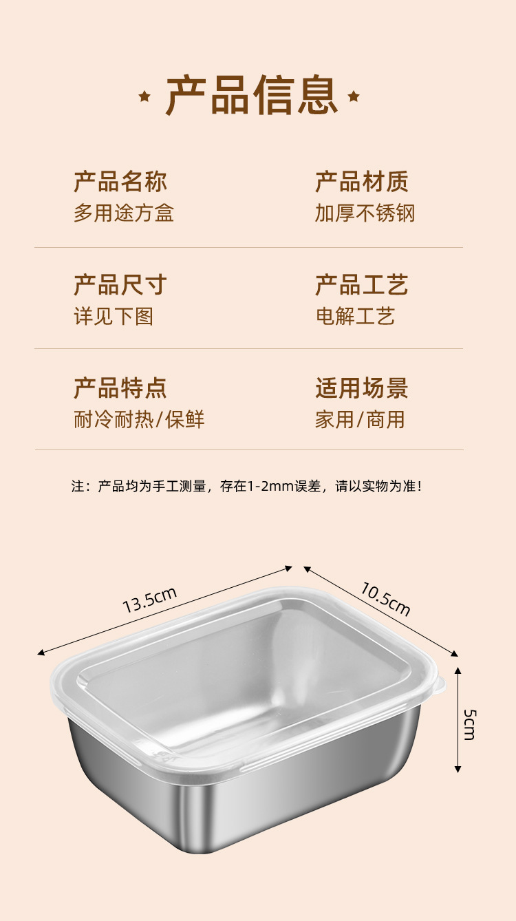 Нержавеющая сталь свежая коробка с крышкой для пищевых продуктов сырые маринованные герметичные коробки для холодильника коробка для хранения фруктов коробка для бенто