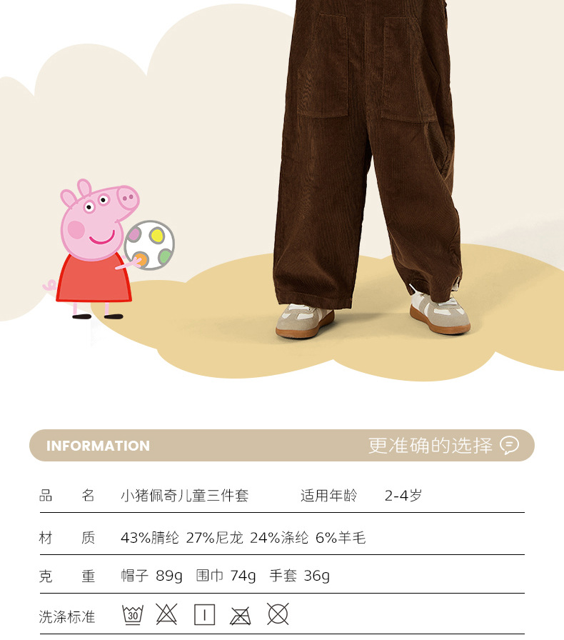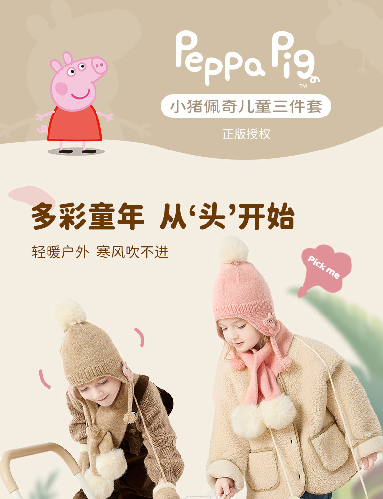 Поросенка Пейдж детская шапка шарф перчатки из трех частей