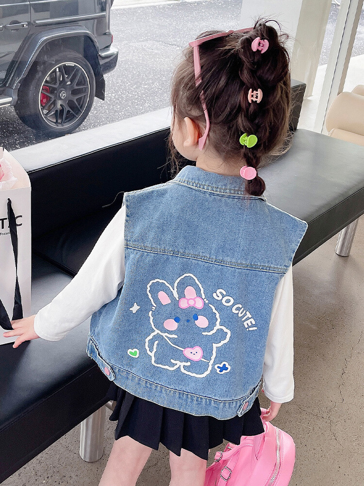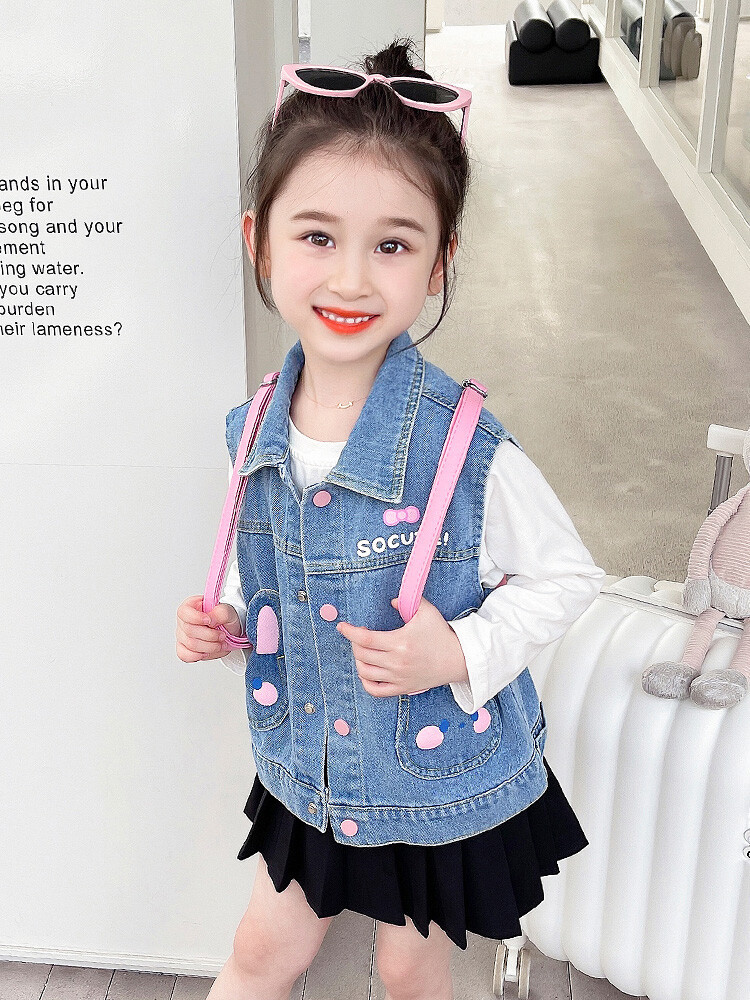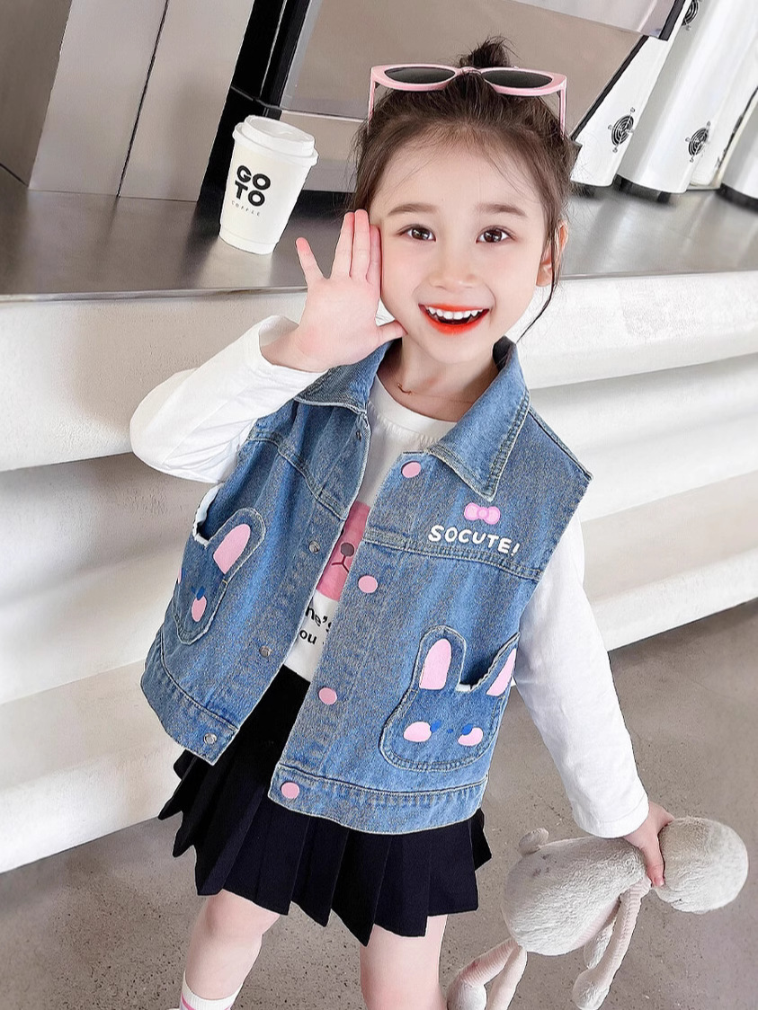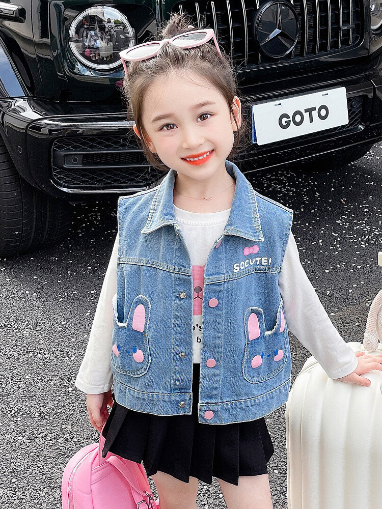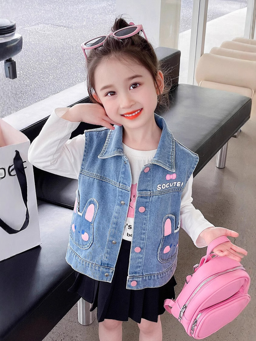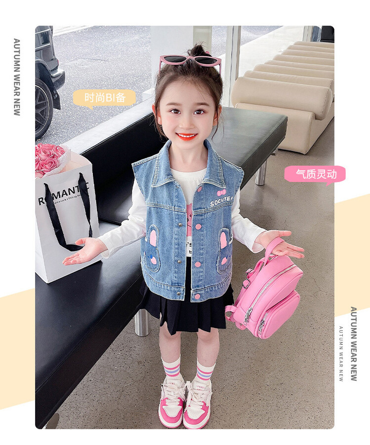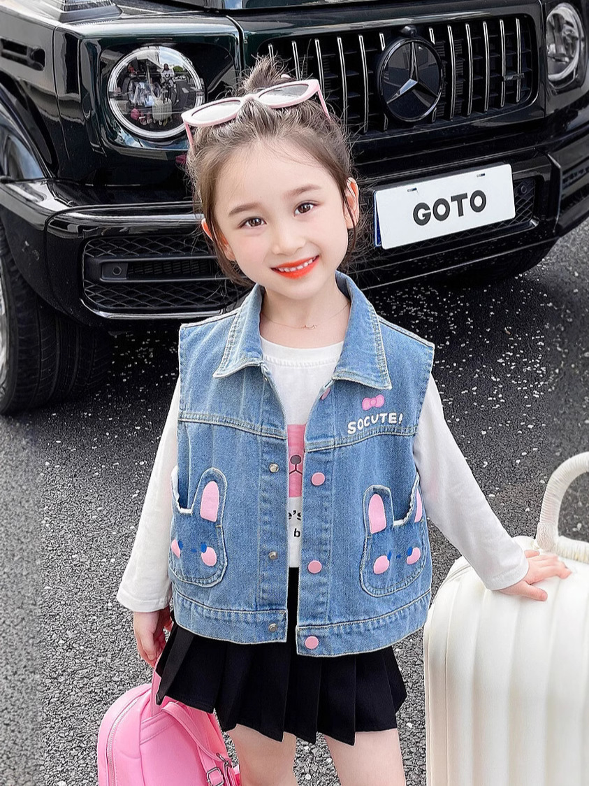 Девушки джинсовый жилет Весна и Осень 2025 Новый детский чужой осенний пальто детское модное ношение жилет осенняя одежда