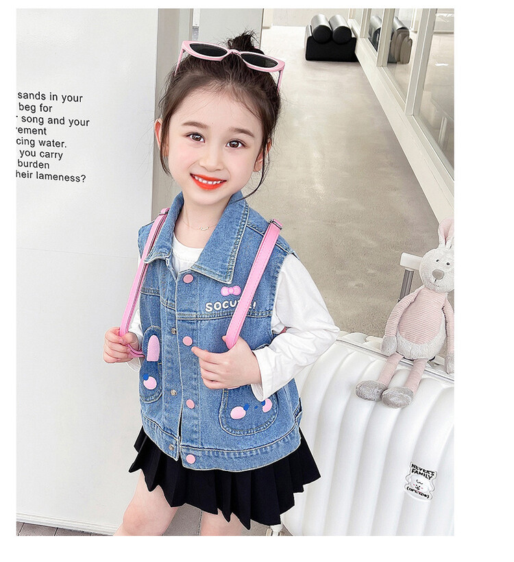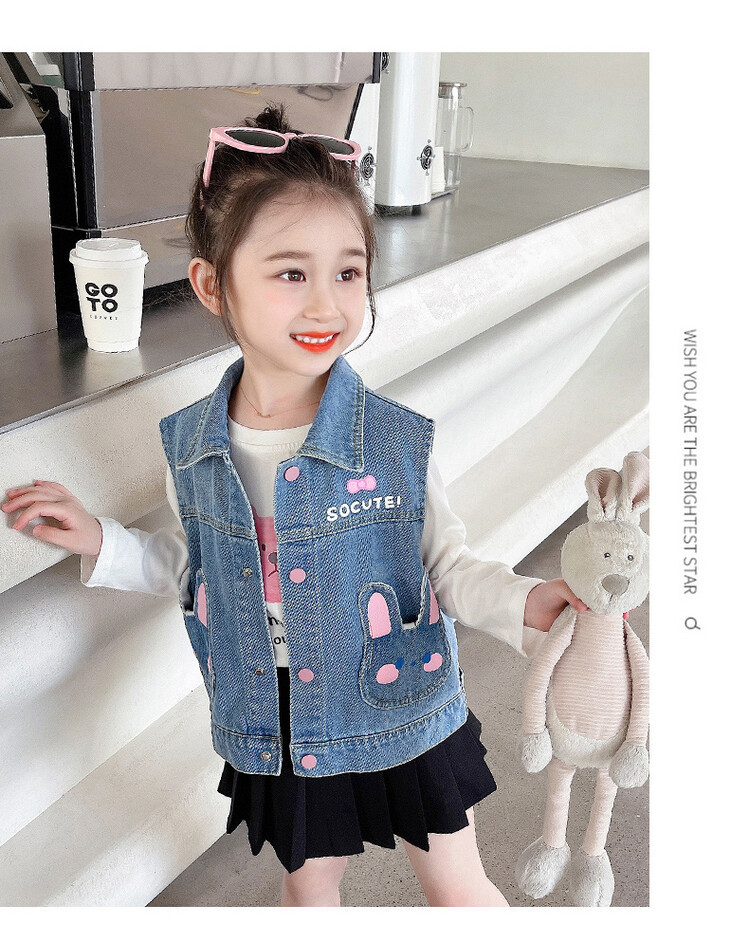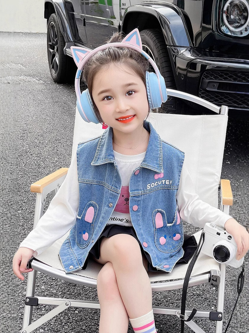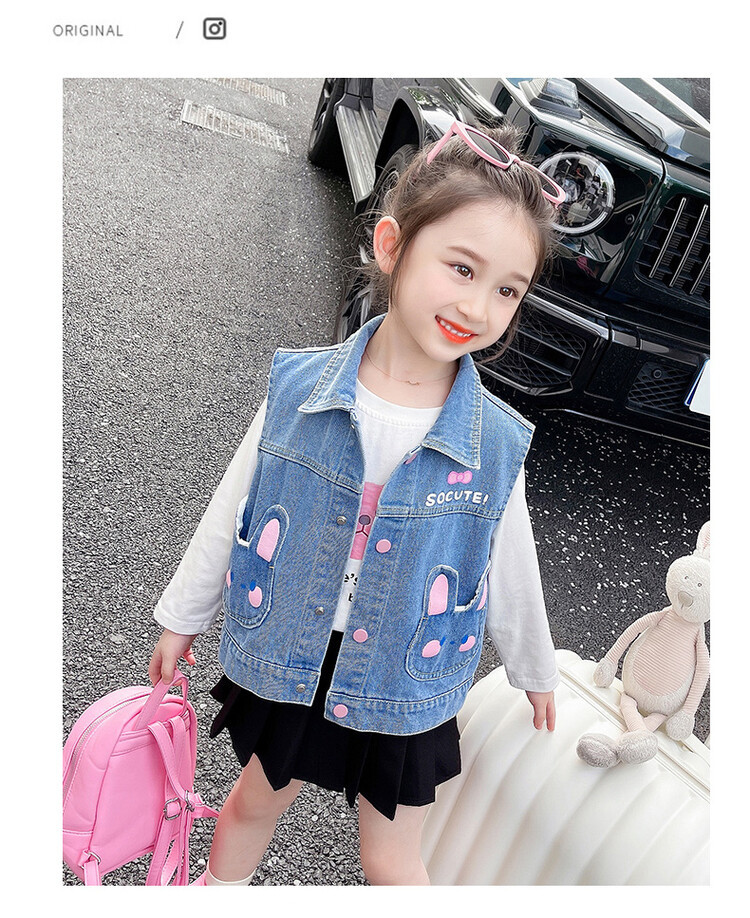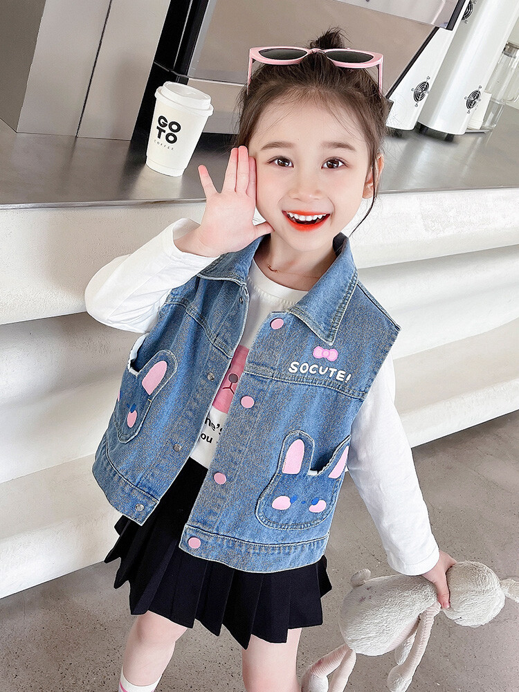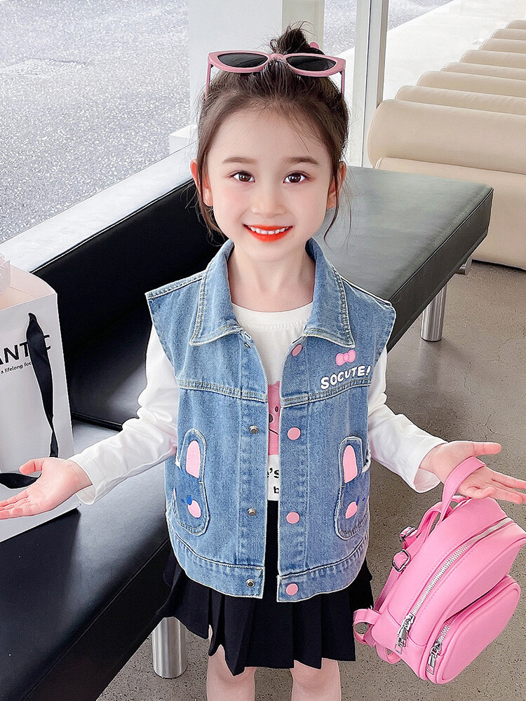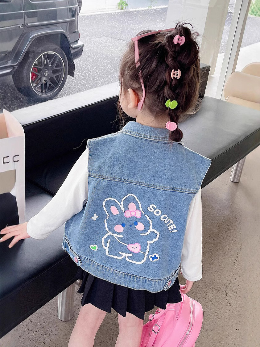 Девушки джинсовый жилет Весна и Осень 2025 Новый детский чужой осенний пальто детское модное ношение жилет осенняя одежда