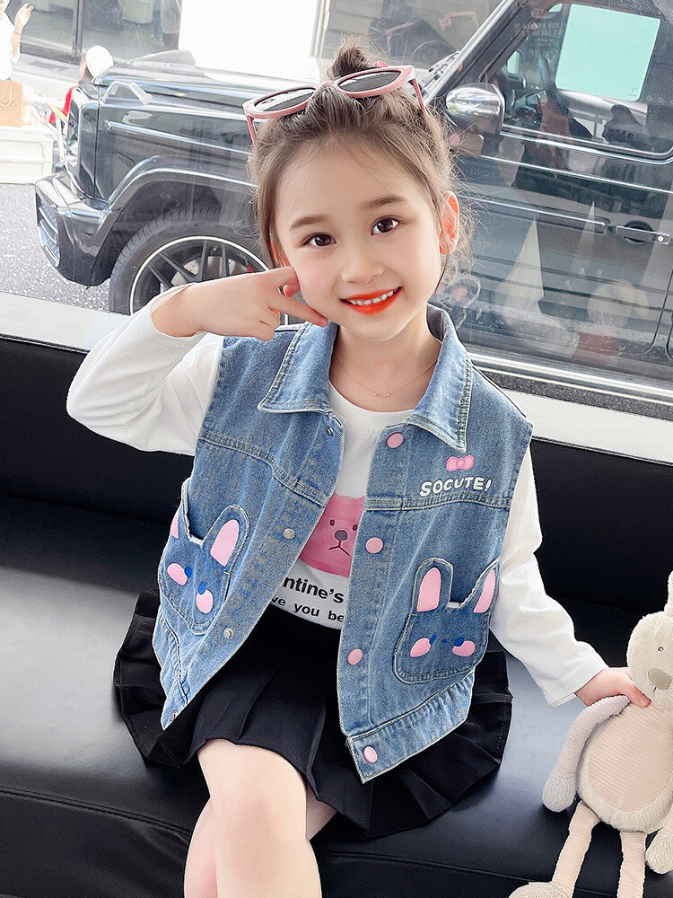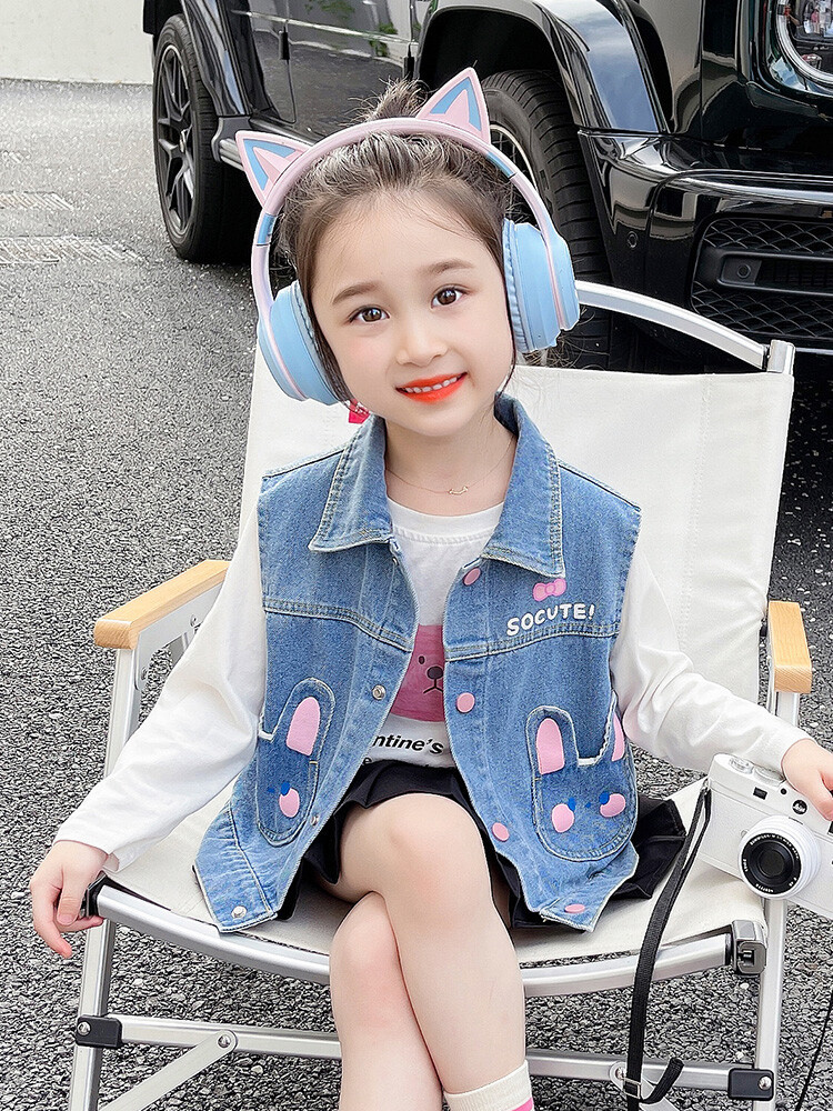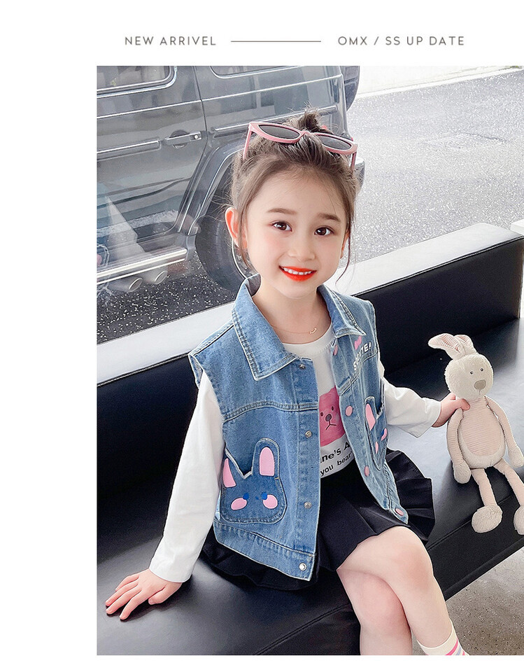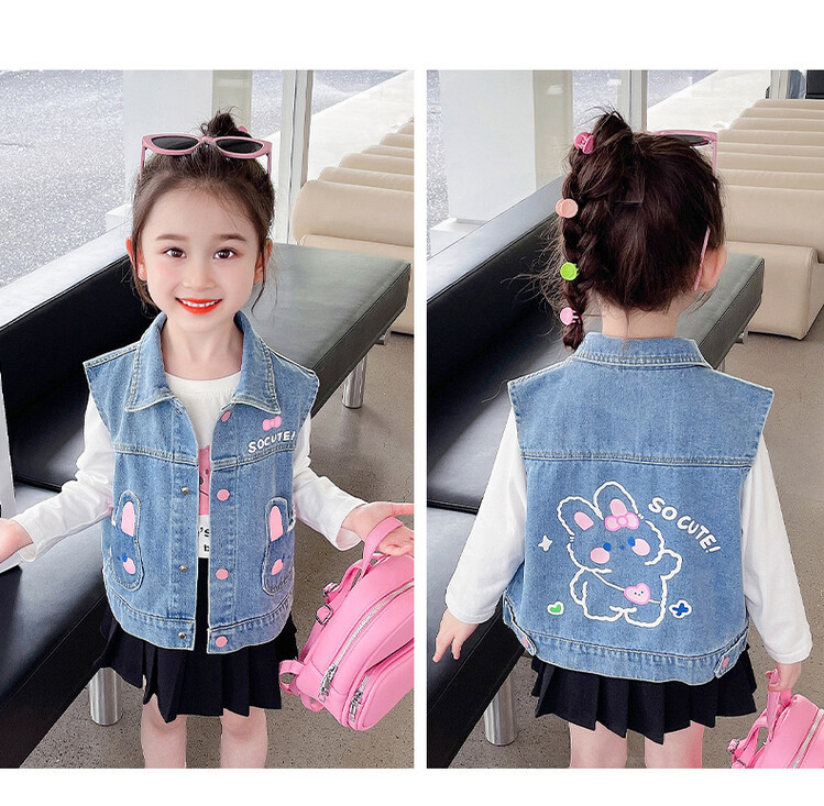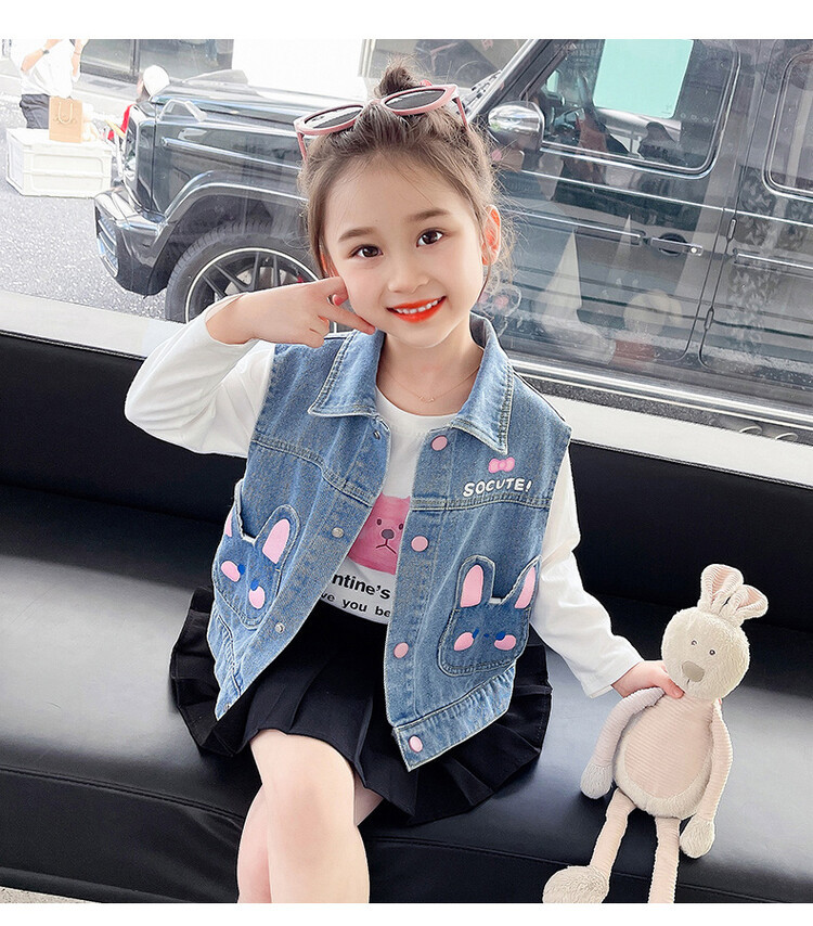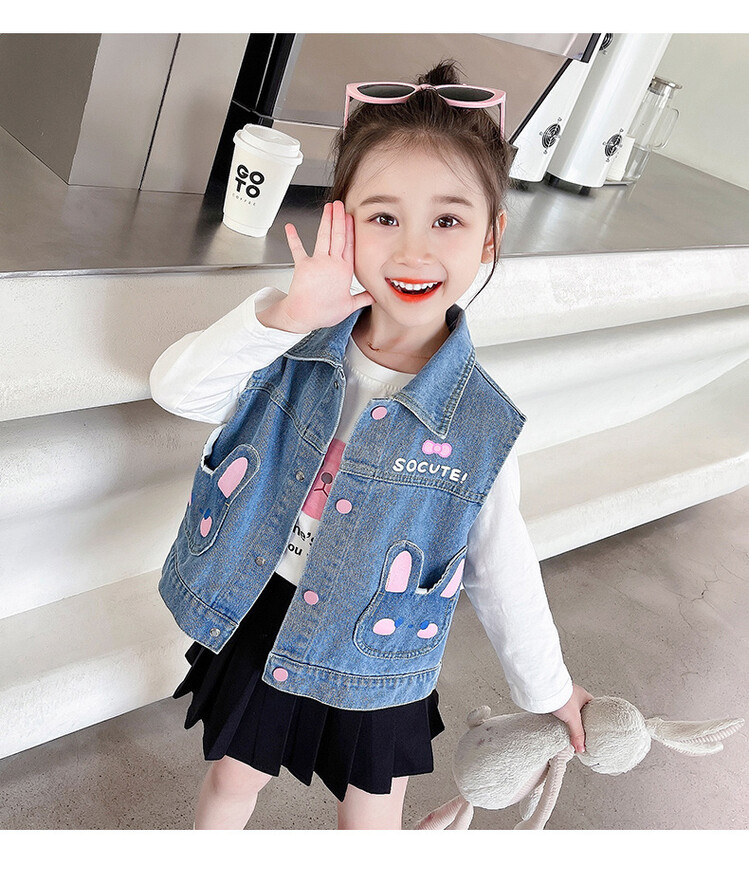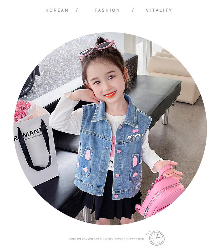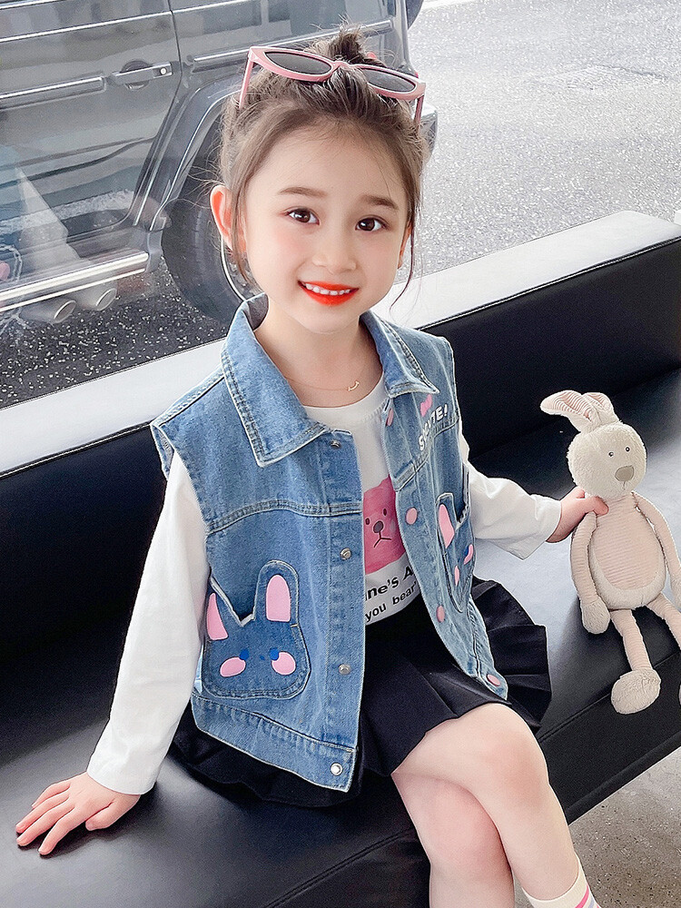 Девушки джинсовый жилет Весна и Осень 2025 Новый детский чужой осенний пальто детское модное ношение жилет осенняя одежда