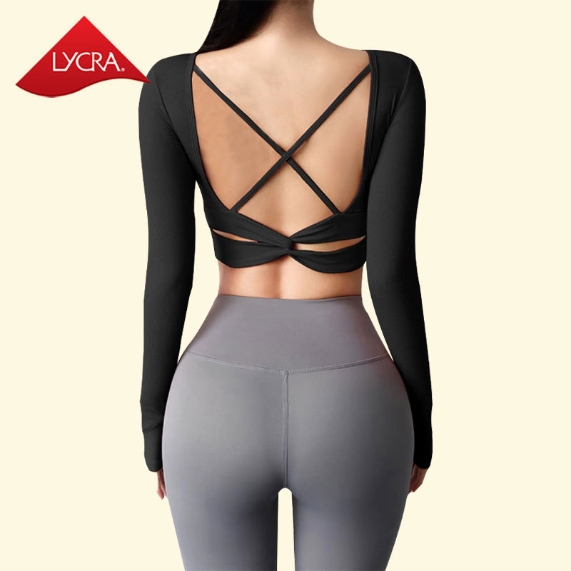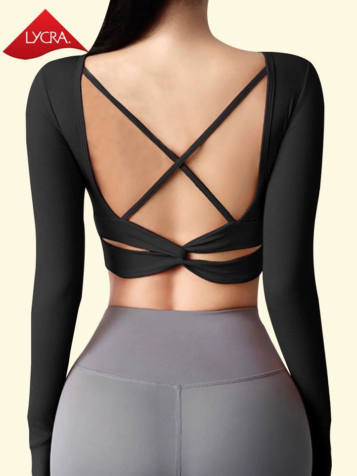 Продвинутого чувству красоты на спине костюм йоги с длинными рукавами женский 2025 новый стиль с нагрудным ковриком спортивный обтягивка профессиональный пилатес