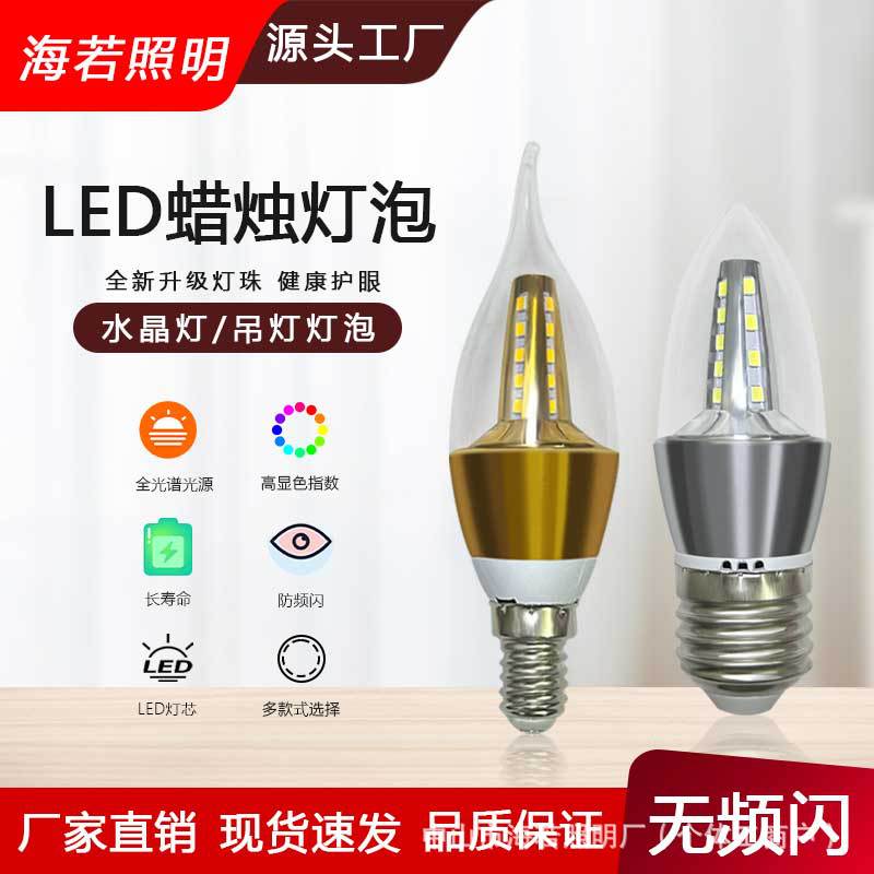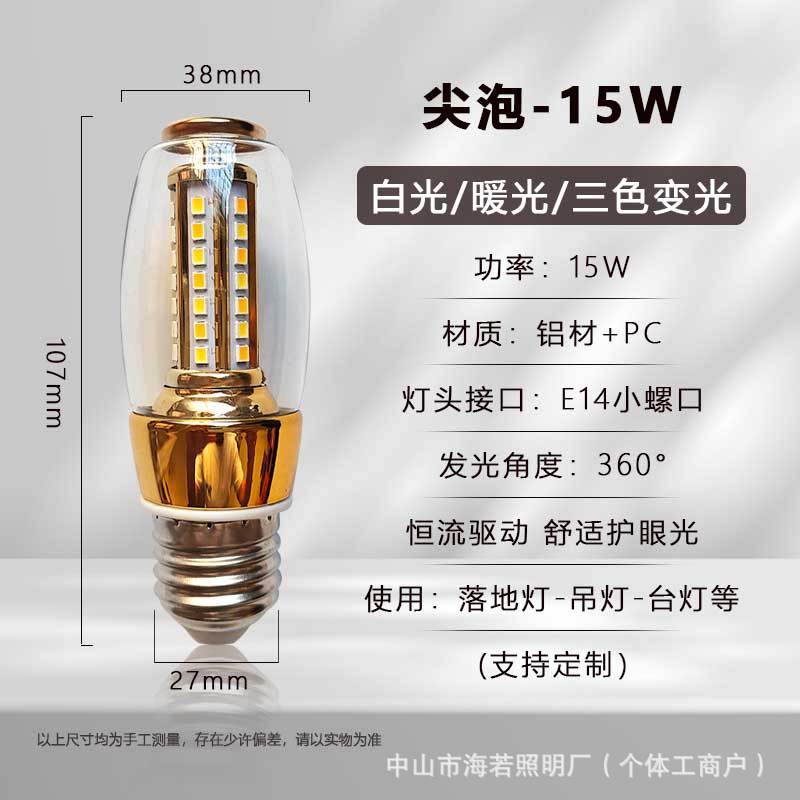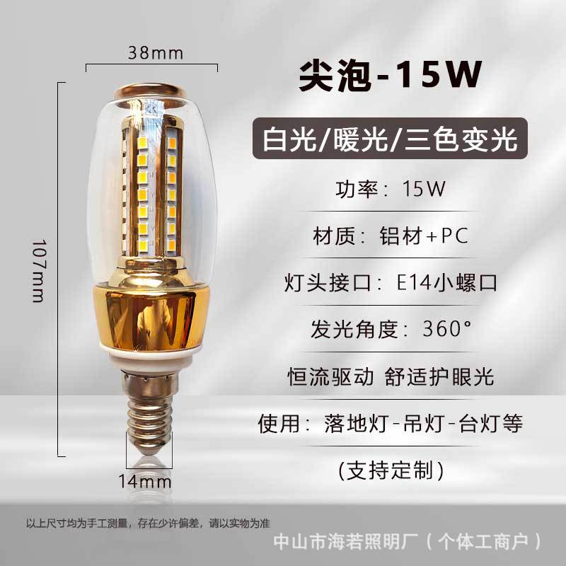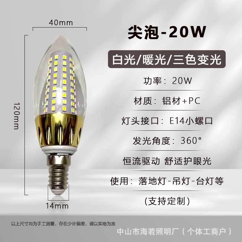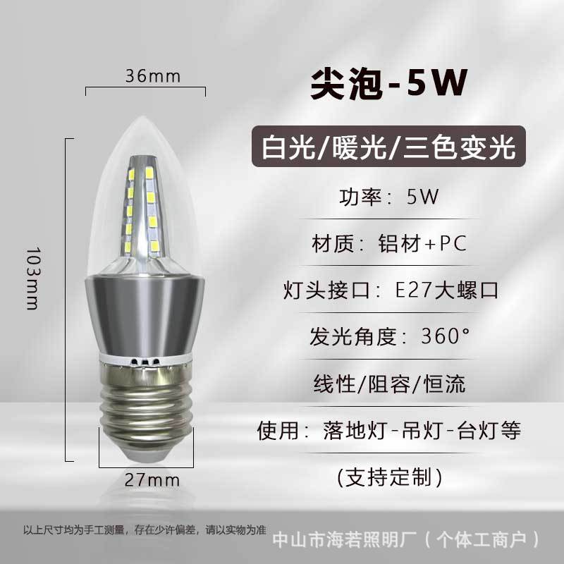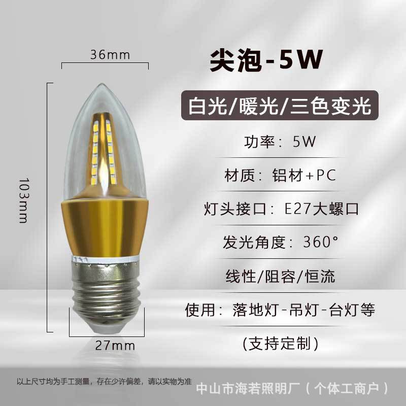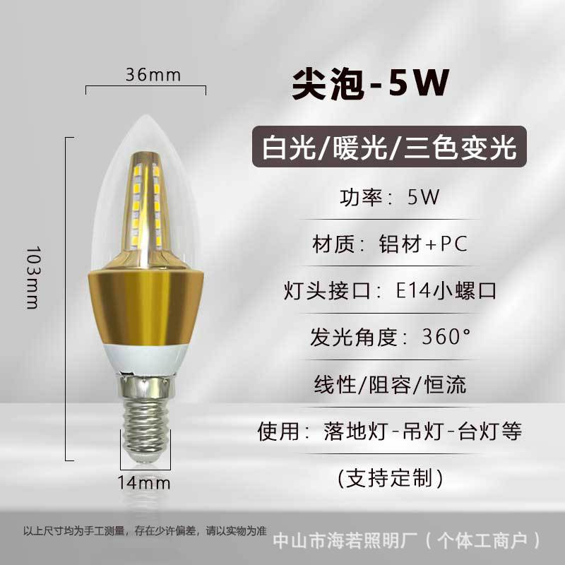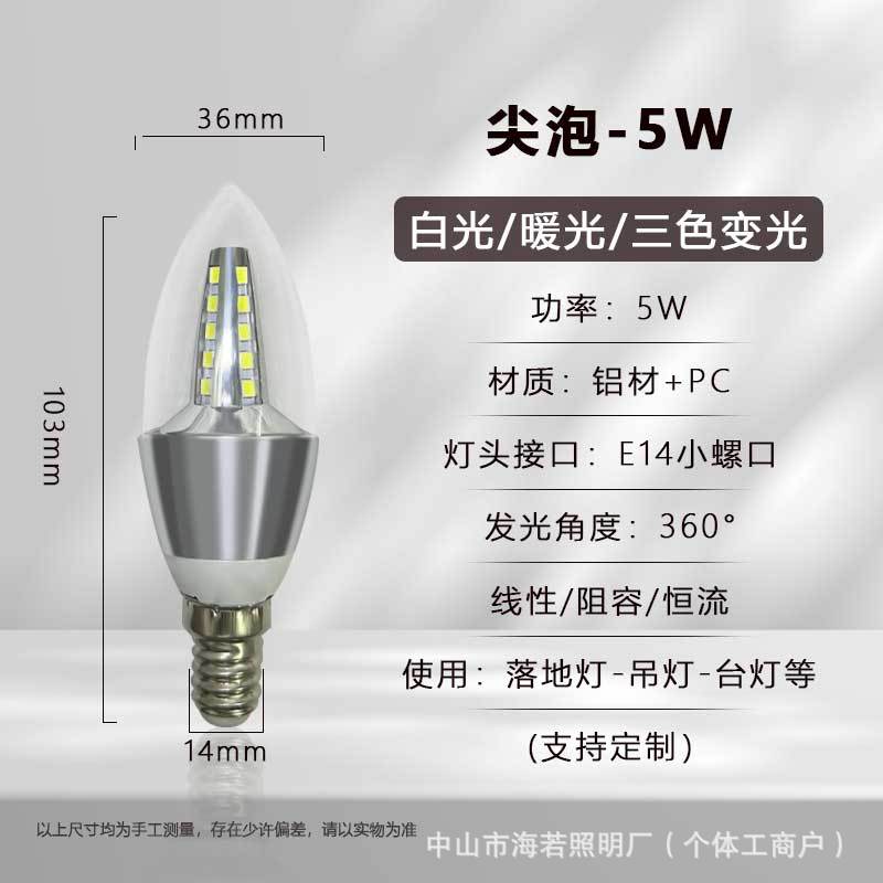 Светодиодная лампа-свеча E14 с цоколем типа «штекер», коническая, для подсветки, европейская люстра, источник света, трехцветная регулировка яркости, постоянный ток, без мерцания