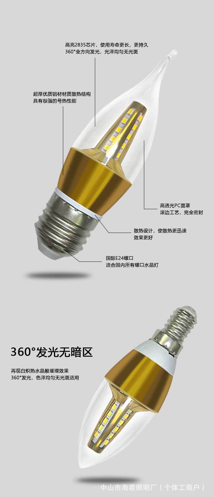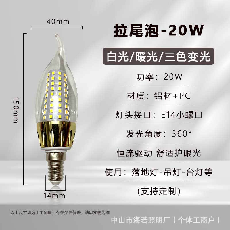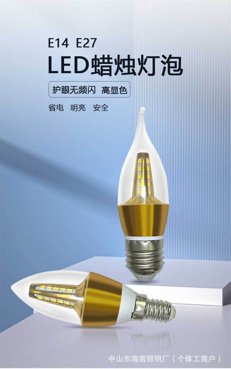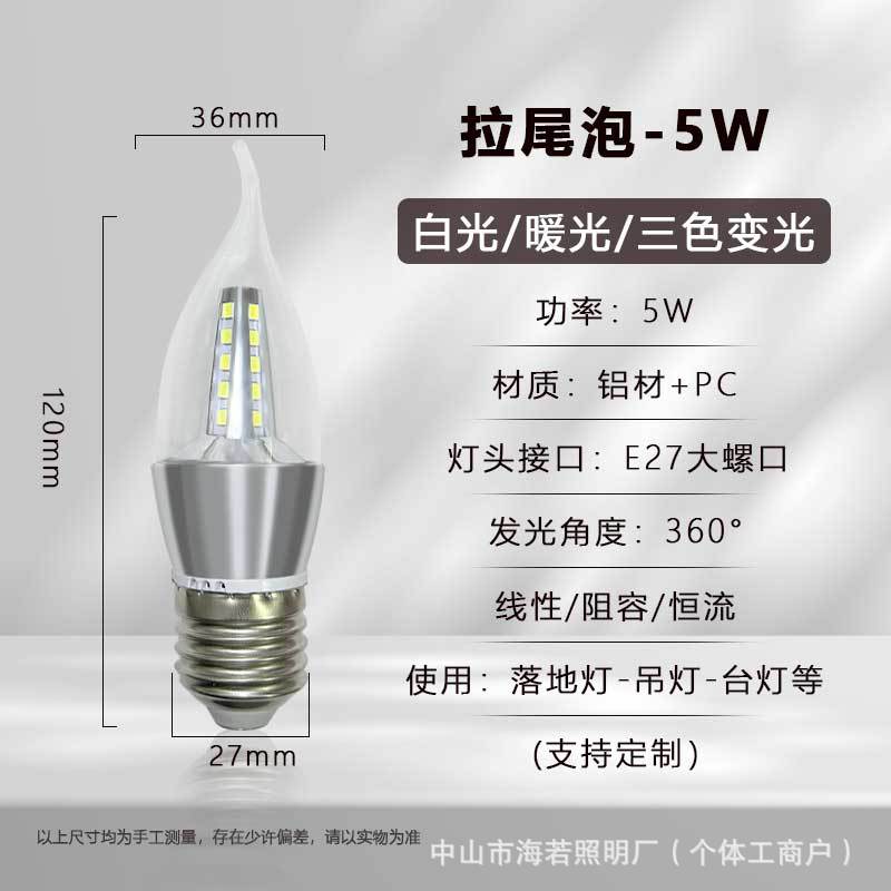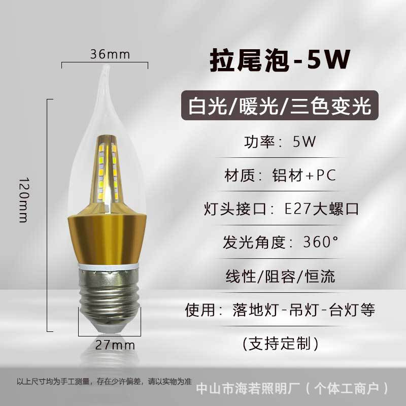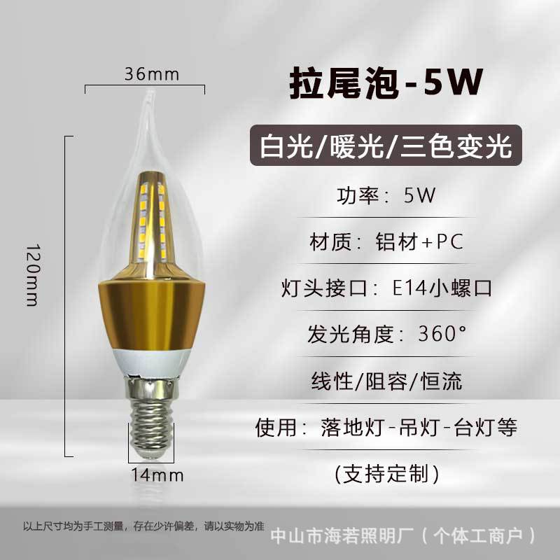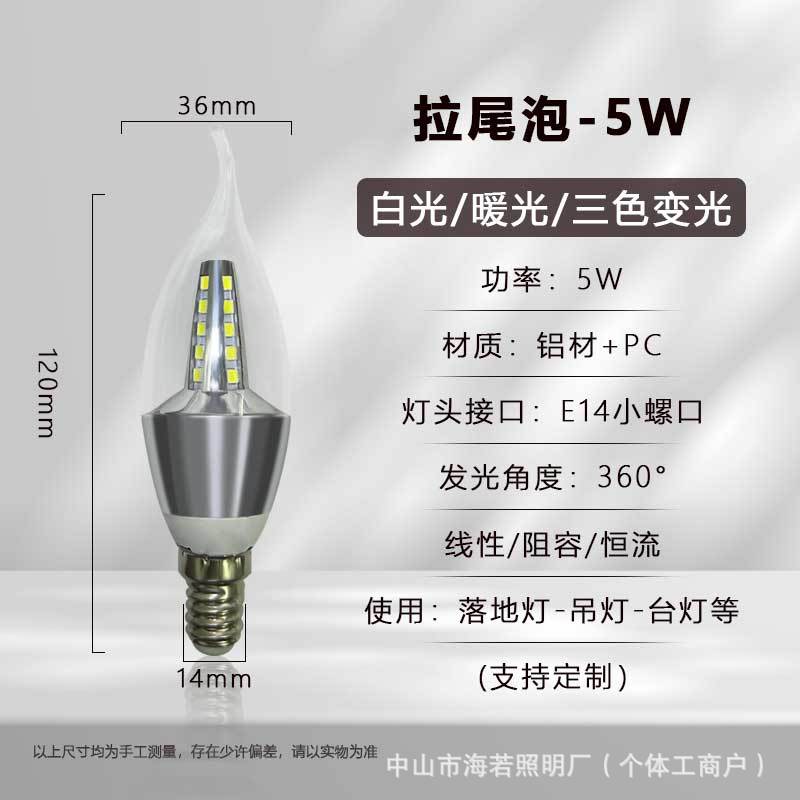 Светодиодная лампа-свеча E14 с цоколем типа «штекер», коническая, для подсветки, европейская люстра, источник света, трехцветная регулировка яркости, постоянный ток, без мерцания