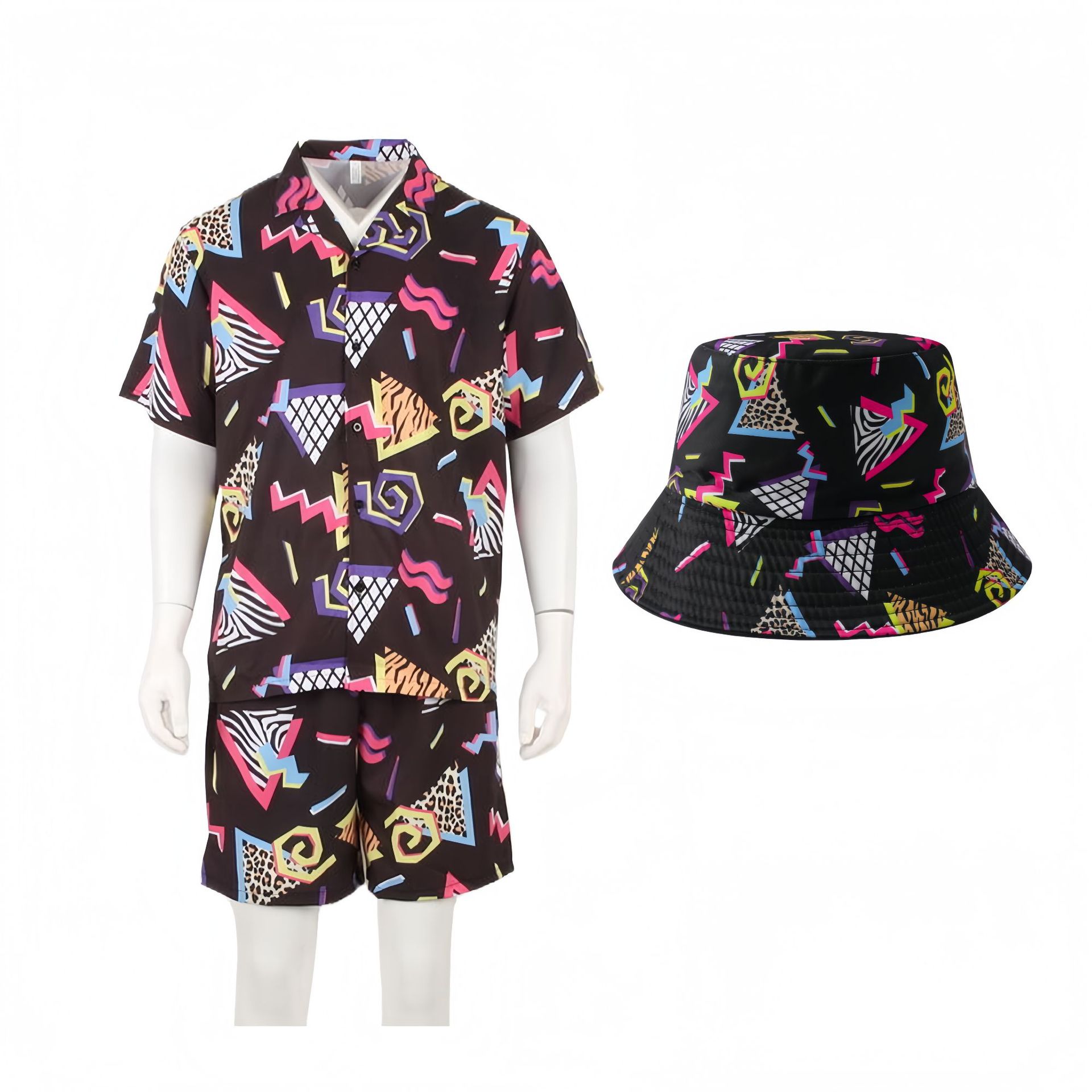 Одежда 80-х и 90-х годов, ретро-комплект из рубашки и шорт, гавайский мужской стиль, для дискотек, пляжа, спорта, повседневный, универсальный
