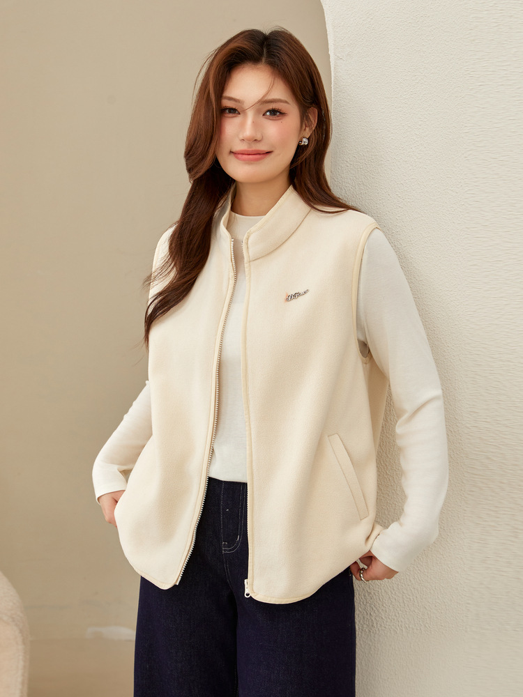 [Вельфиш повседневный дикий теплый воротник жилет] Funny Show большой размер женский толстый mm2025 весенний новый