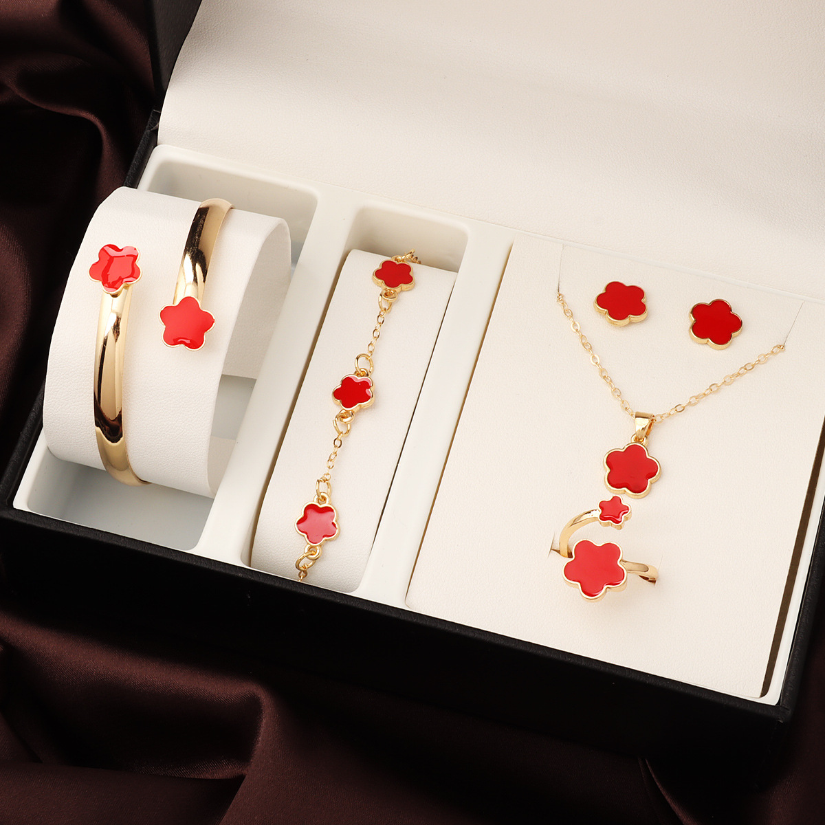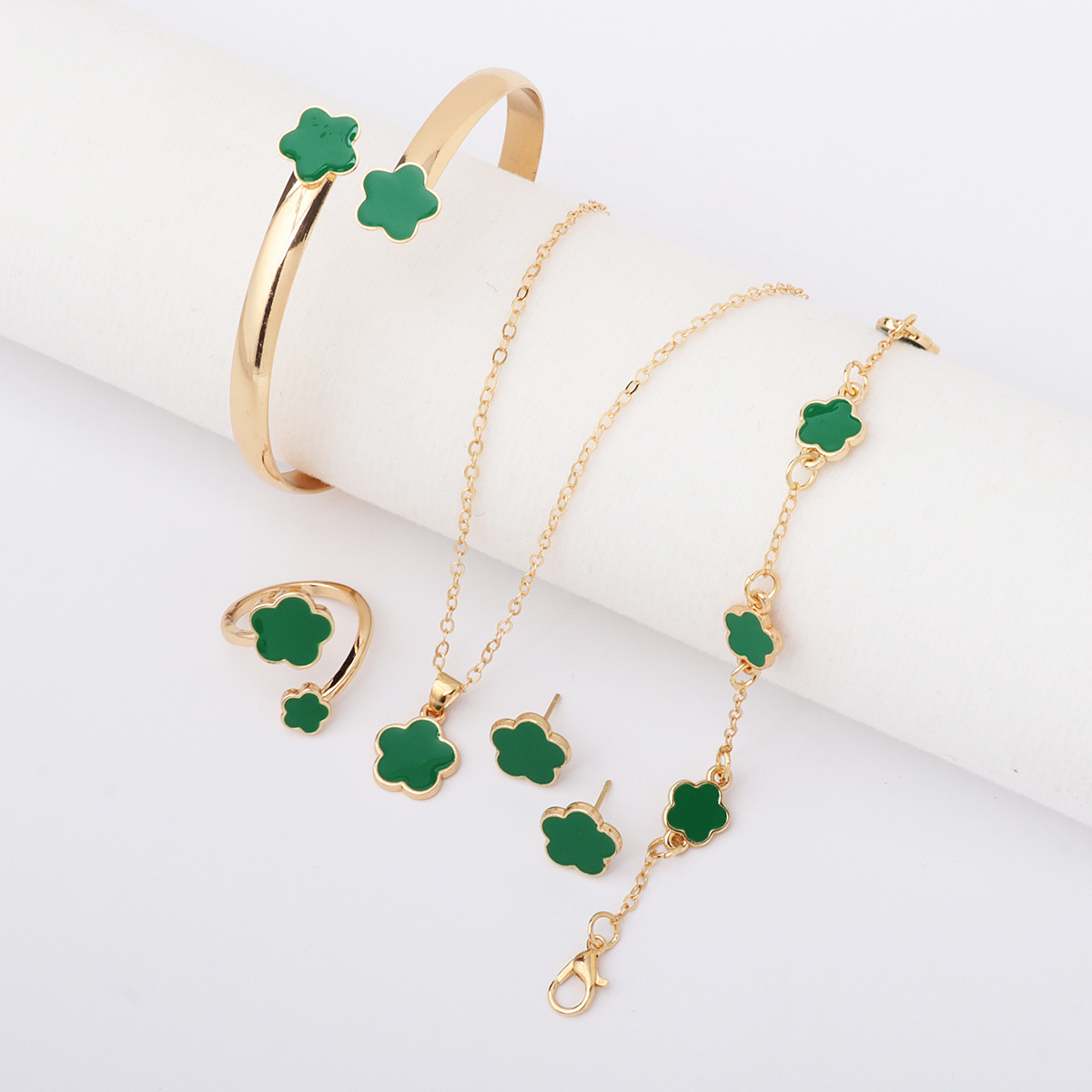 Производитель ювелирных наборов оптом: модные персонализированные ожерелья и браслеты с пятилепестковым клевером и изображением сакуры, 2025 год, международная торговля.
