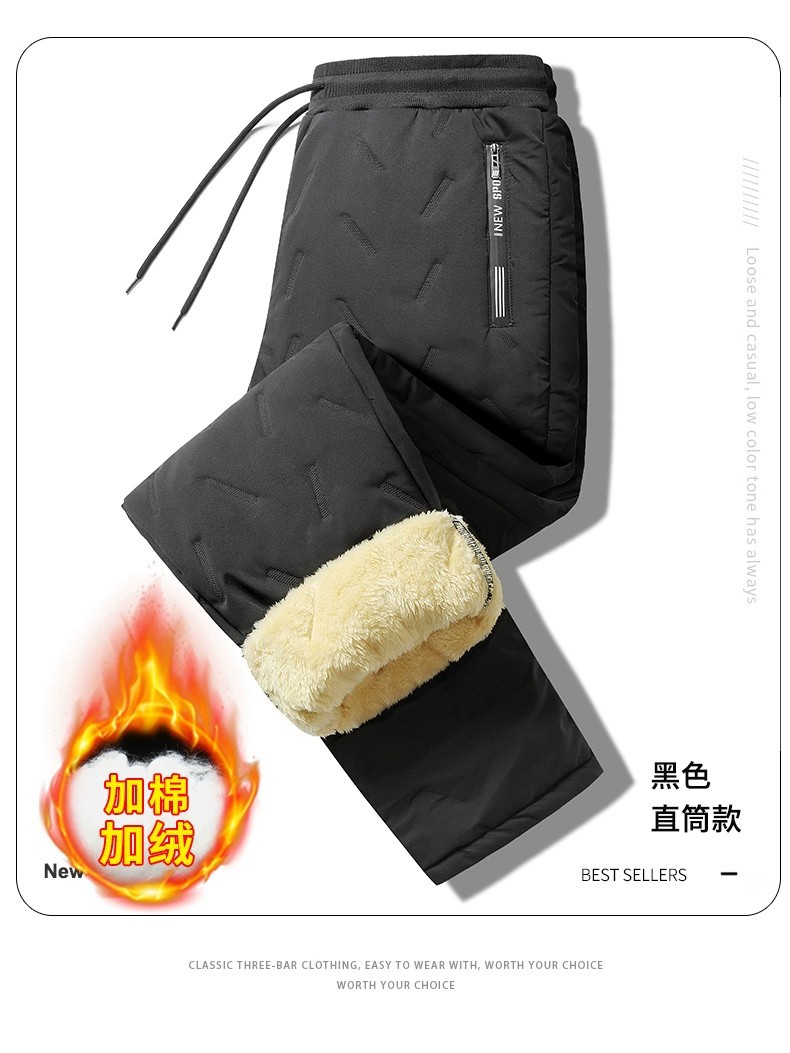 Зимние хлопчатобумажные брюки мужские толстые плюс кашемировые кашемировые пуховые толстые зимние наружные теплые свободные прямые брюки