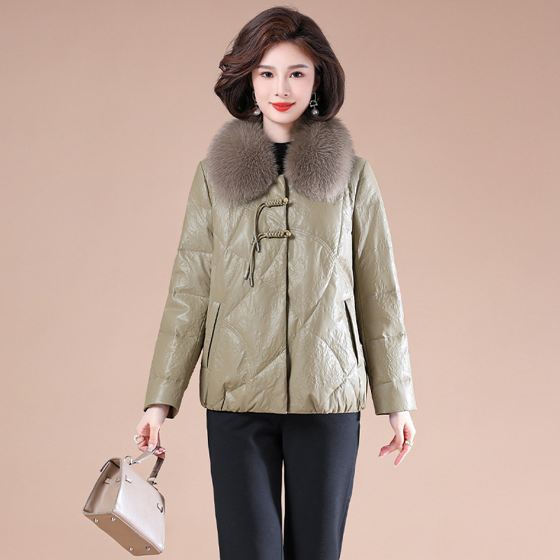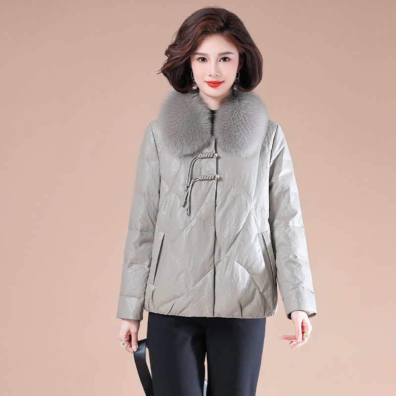 Зимний пуховик из кожи пуховика белая утка с лисой шерстяной воротник