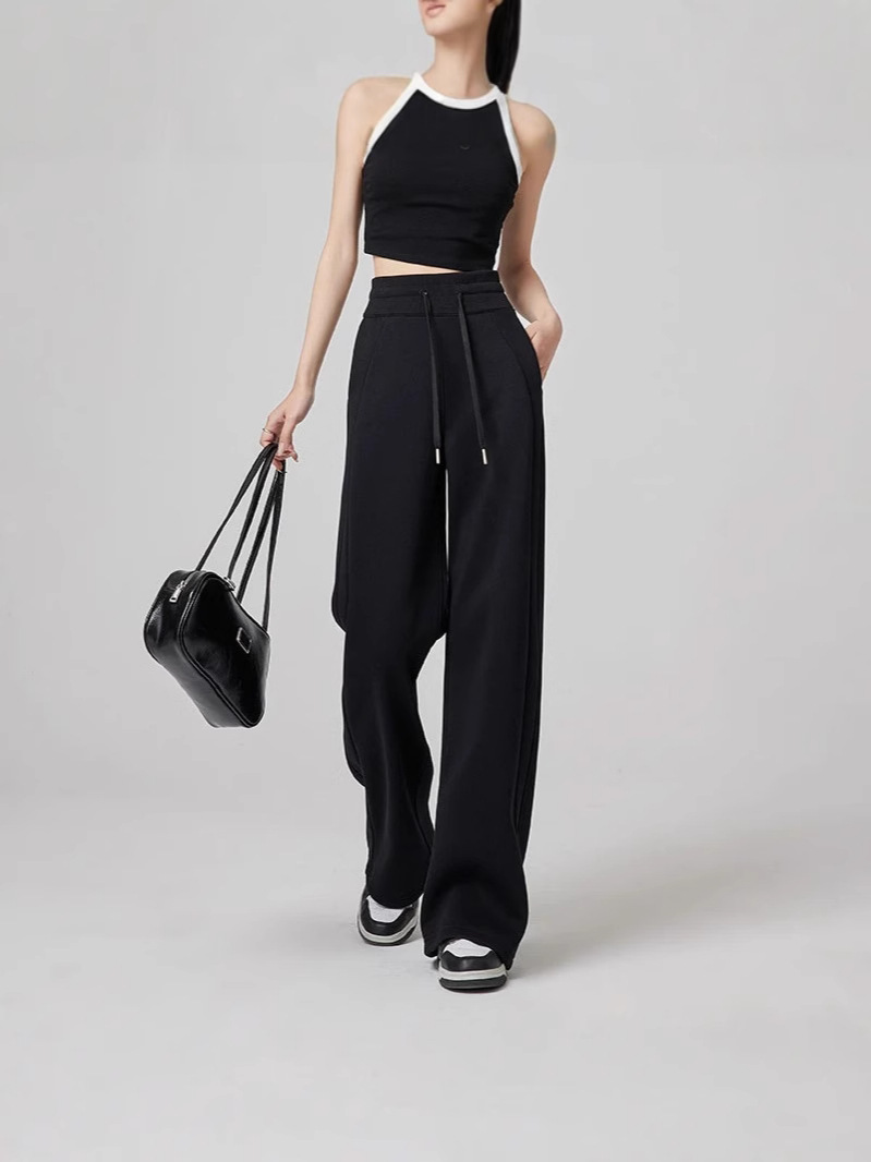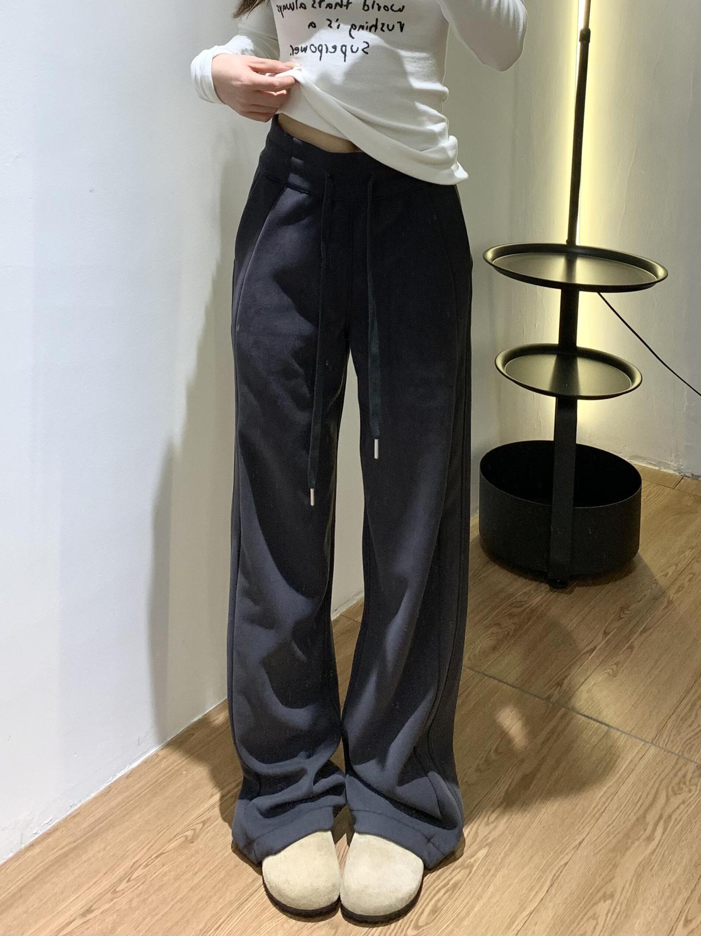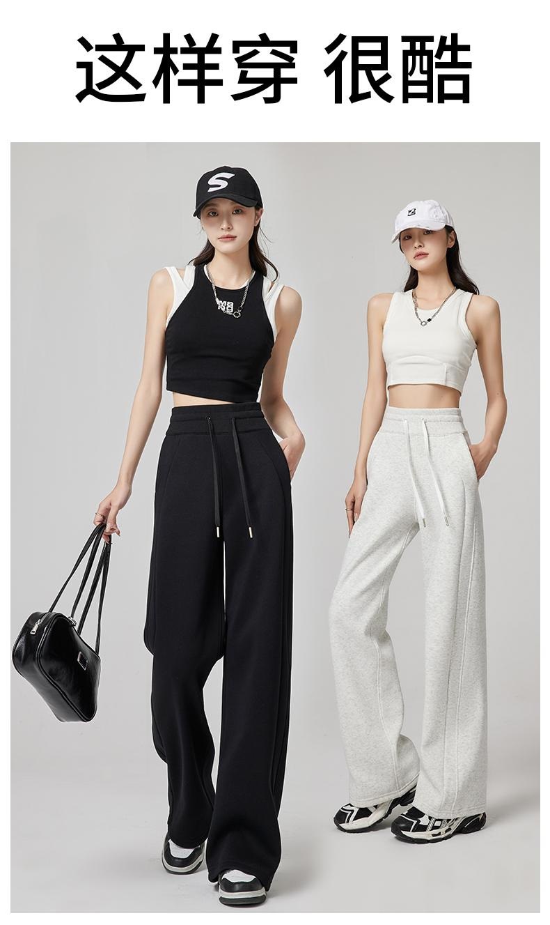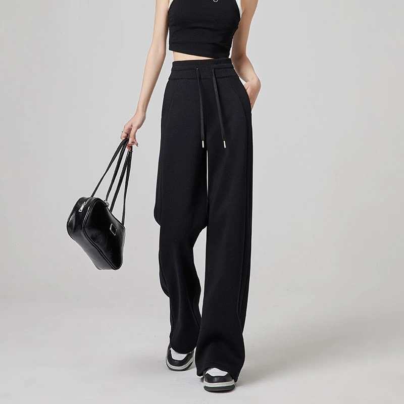 Повседневные спортивные брюки в стиле Lulu для весны и осени, на флисовой подкладке, свободные прямые широкие брюки-бананы для женщин.
