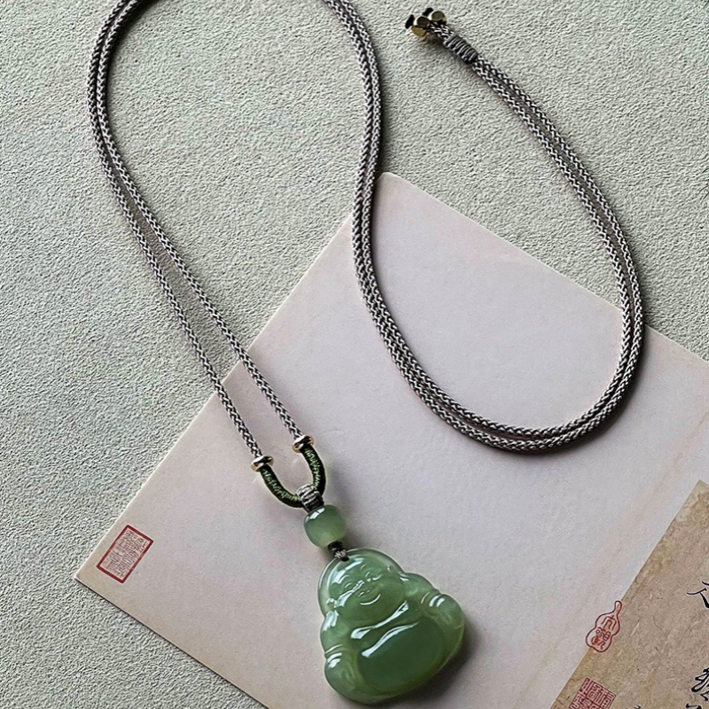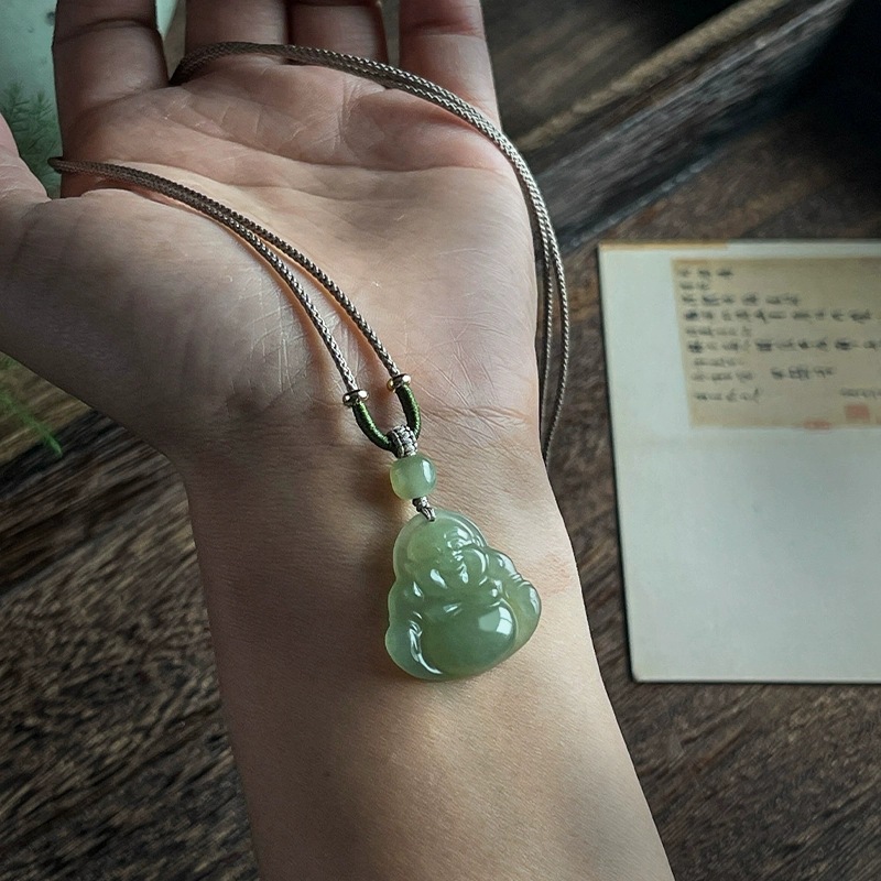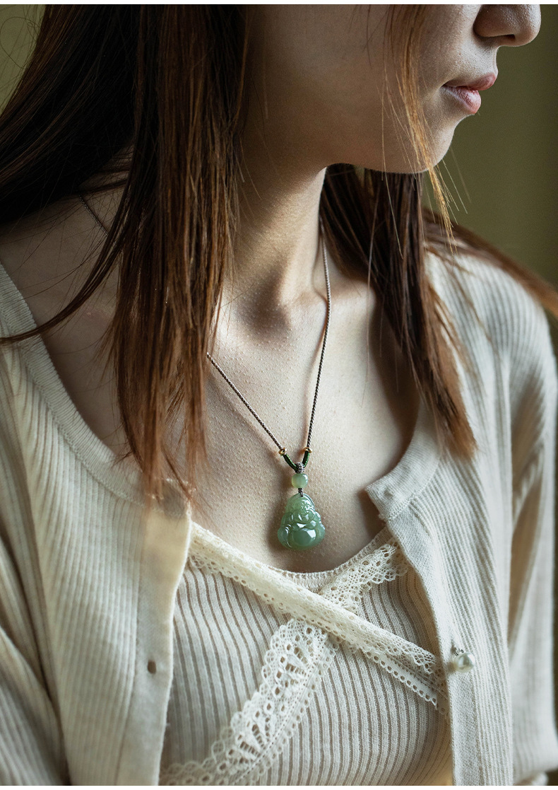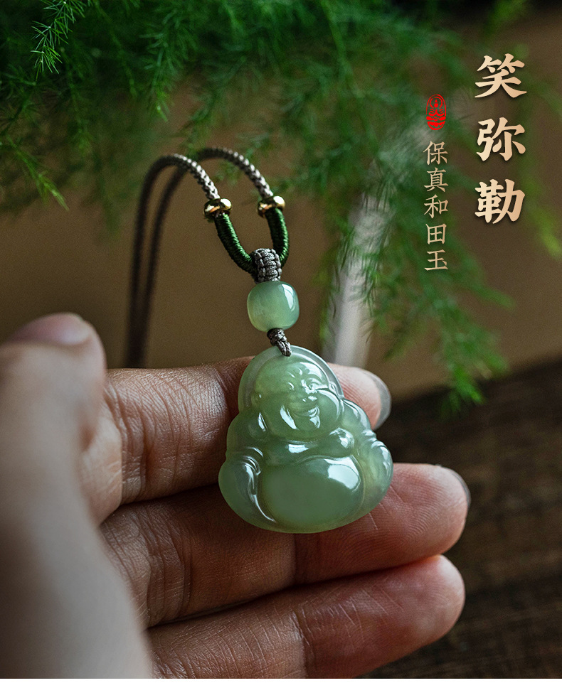 Оригинальный натуральный нефритовый кулон женщина Майтрейя Будда Большой живот улыбающегося Будды и нефритового ожерелья