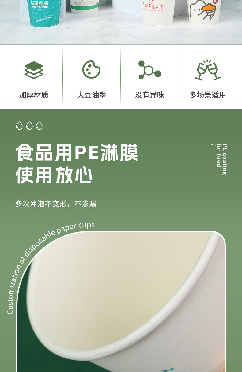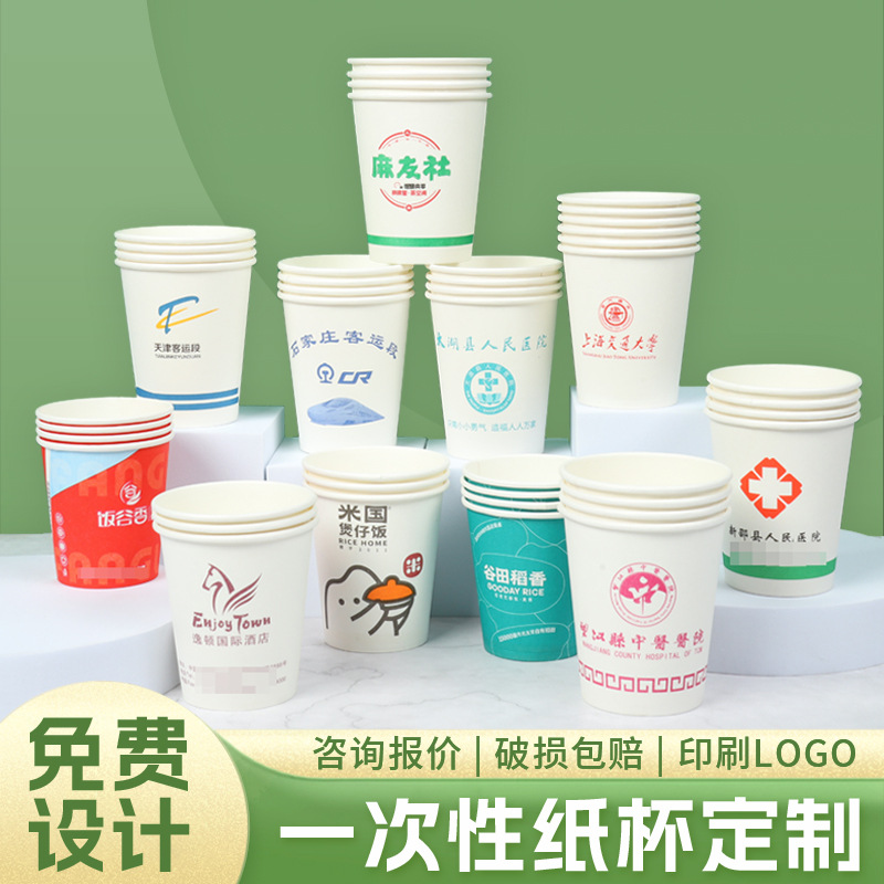 Одноразовые бумажные стаканчики с логотипом по индивидуальному заказу, рекламные стаканчики для коммерческой рекламы, 1000 штук или больше, утолщенные пищевые стаканчики для горячих и холодных напитков.