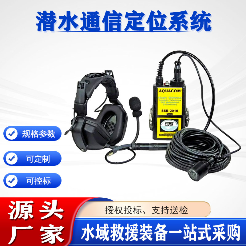 用于潜水员语音、数字通信及定位,具备水面指控系统、水面定位基阵、水下潜水员单bing穿 戴和显示系统。通信距离≥800m,工作深度≥60m。