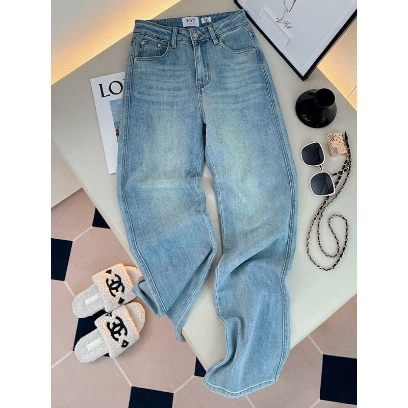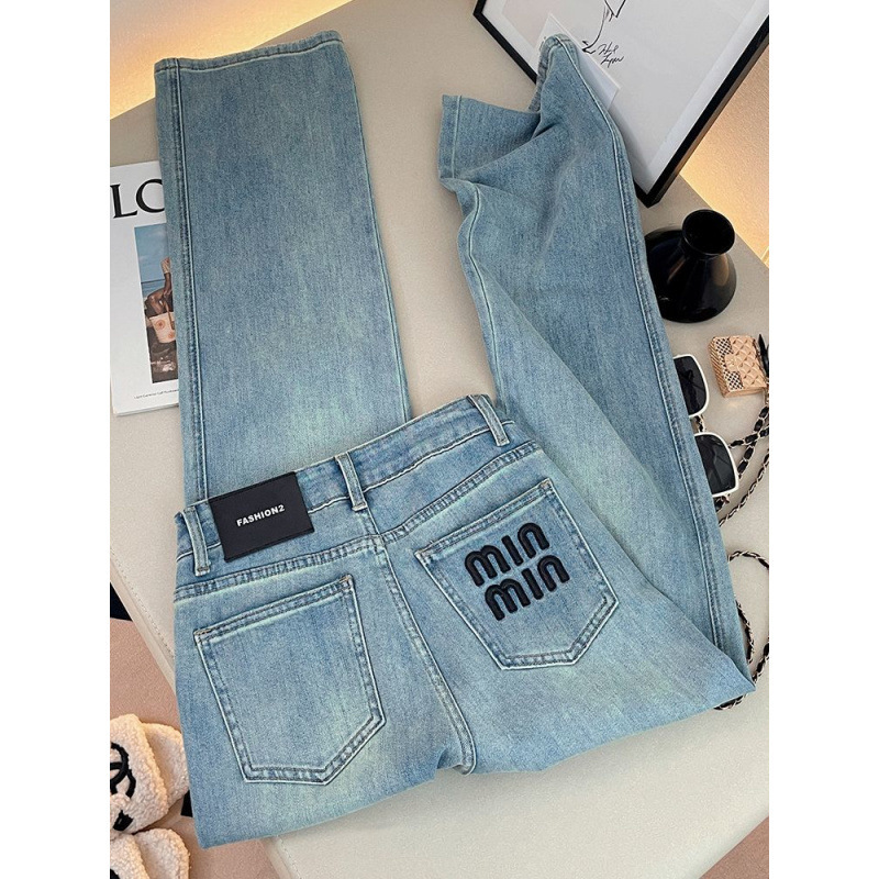 Узкие эластичные джинсы с вышитыми буквами, женские осенние новые узкие свободные брюки с высокой талией светлого цвета, прямые брюки