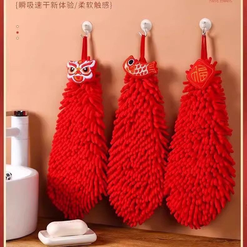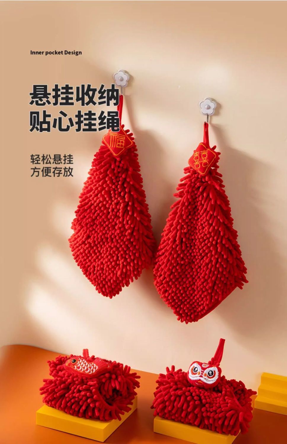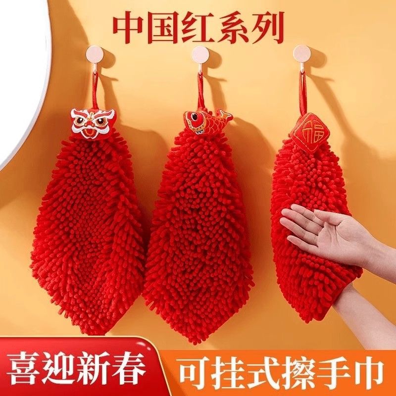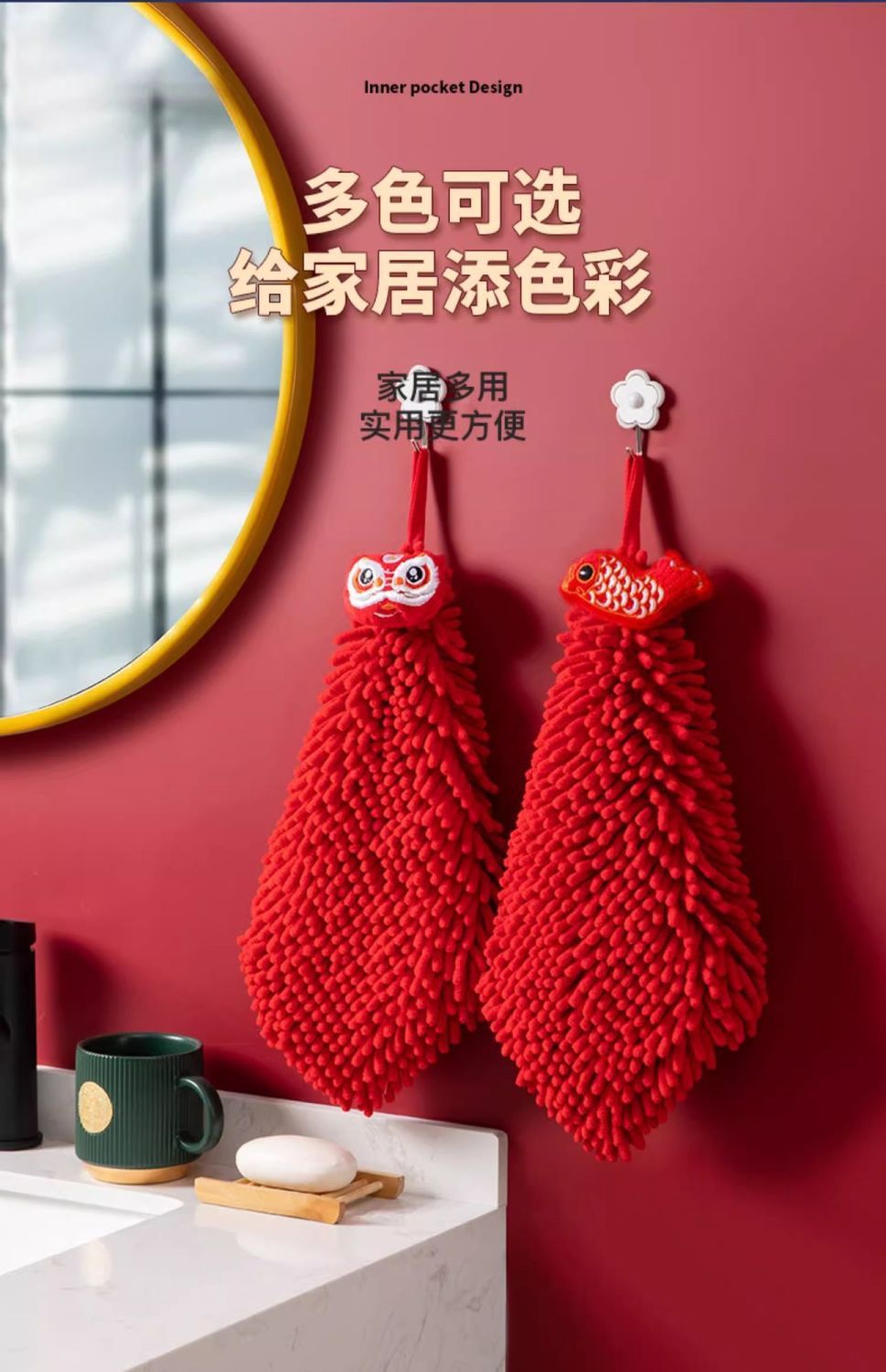 Год Дракона Новый год Красное полотенце для рук Милое висячее полотенце