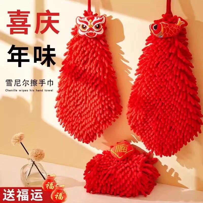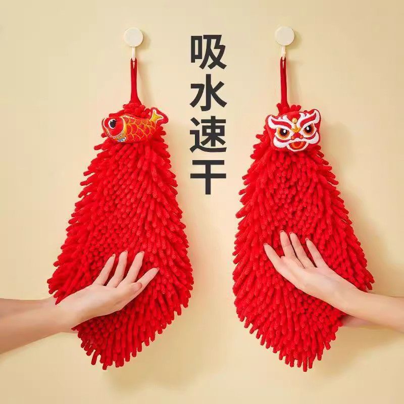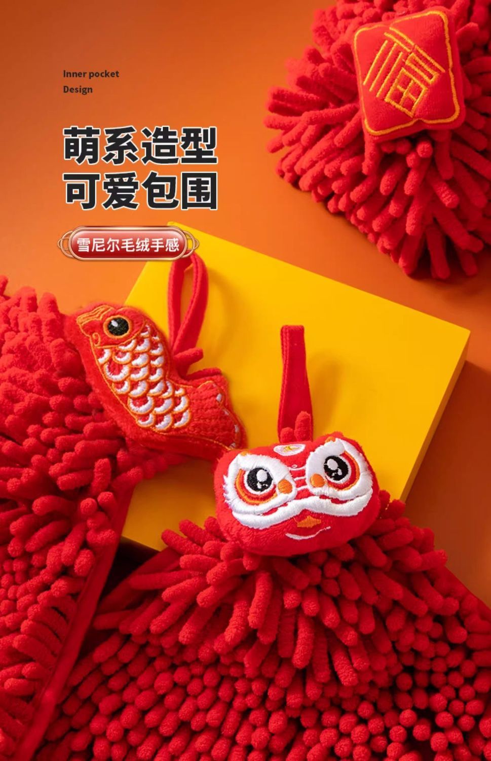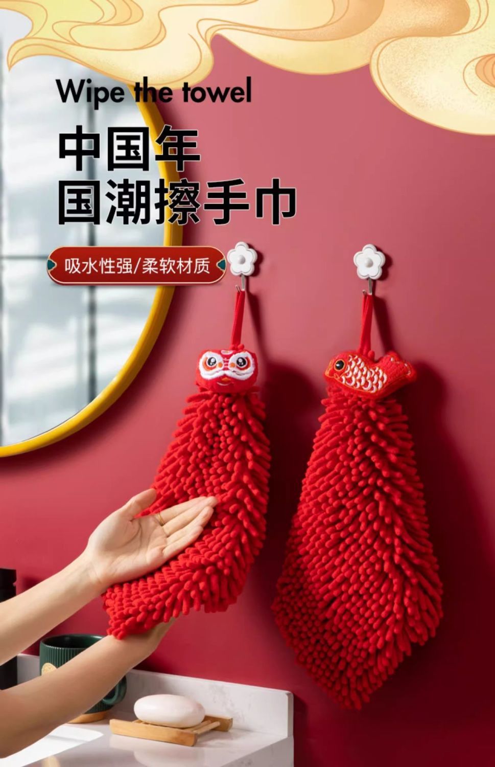 Год Дракона Новый год Красное полотенце для рук Милое висячее полотенце