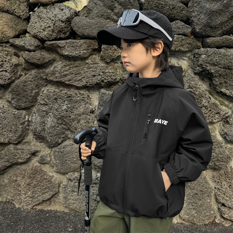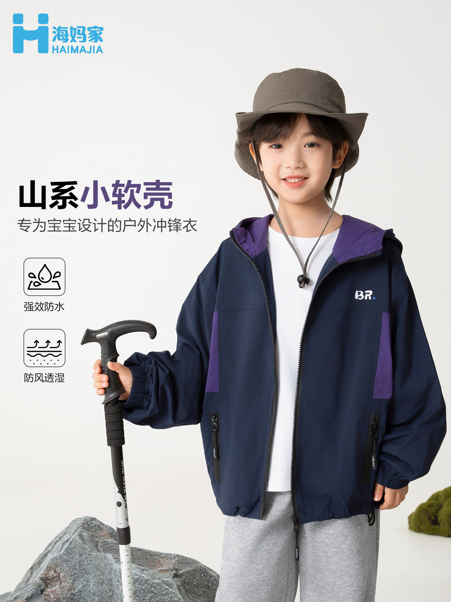Haima Home 2025 Новый мальчик с капюшоном куртка с мягкой оболочкой куртка для детей на открытом воздухе осенняя одежда для кемпинга