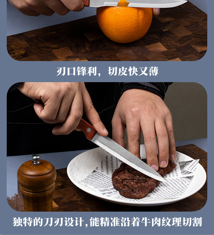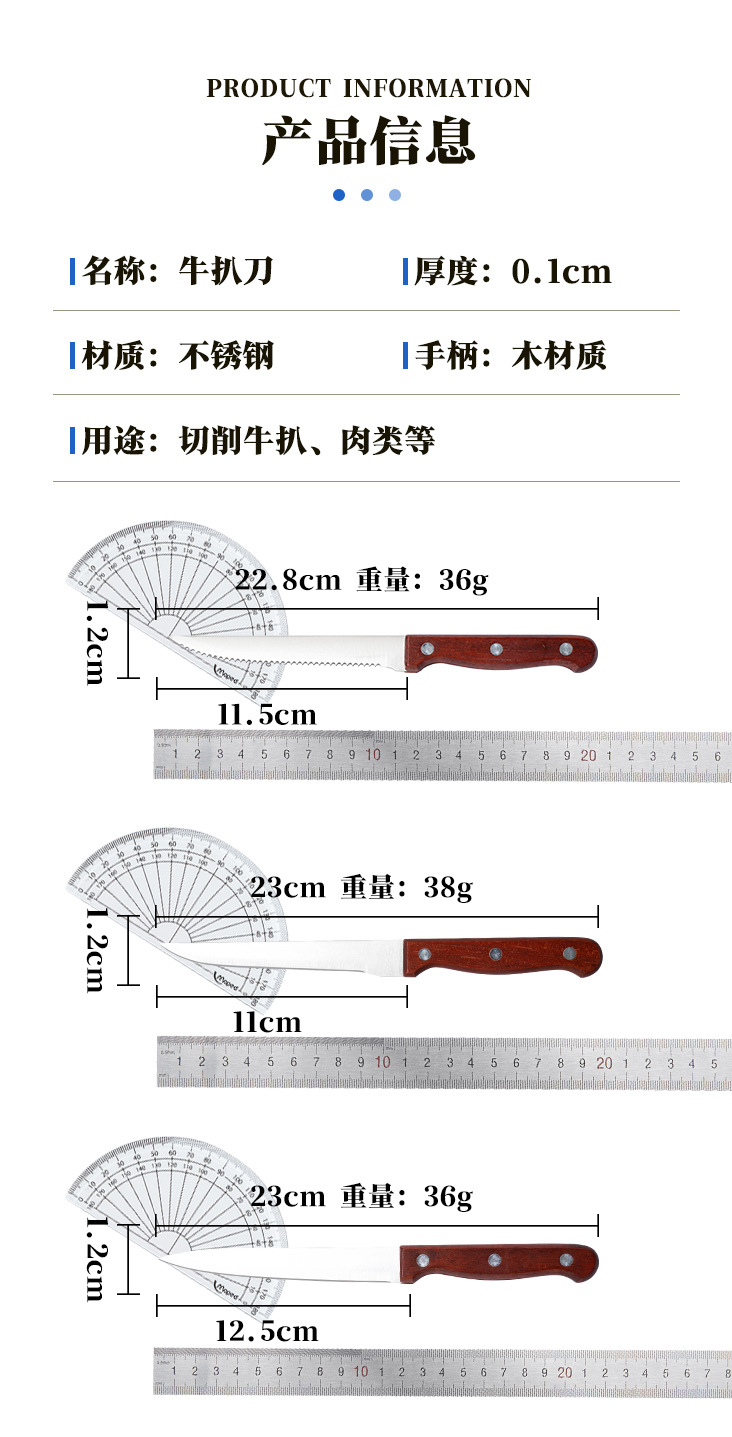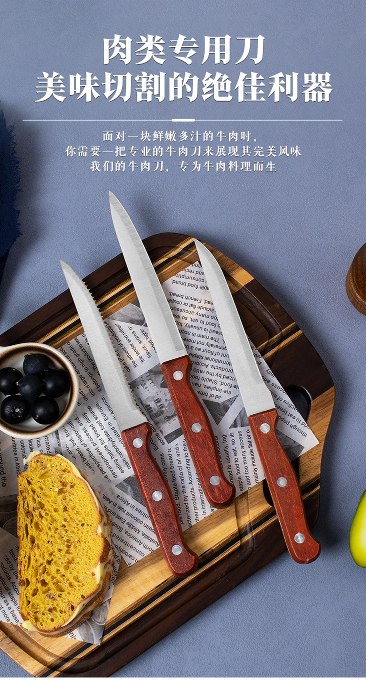 Бытовой нож для стейка с деревянной ручкой, нож для гостиничной западной кухни, нож из нержавеющей стали, набор из 3 предметов, 5inch острых зубчатых ножей, тесак для мяса