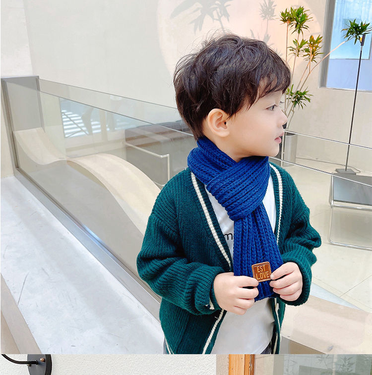 Ins корейский детский трикотажный шарф зимний сплошной цвет теплая шерсть