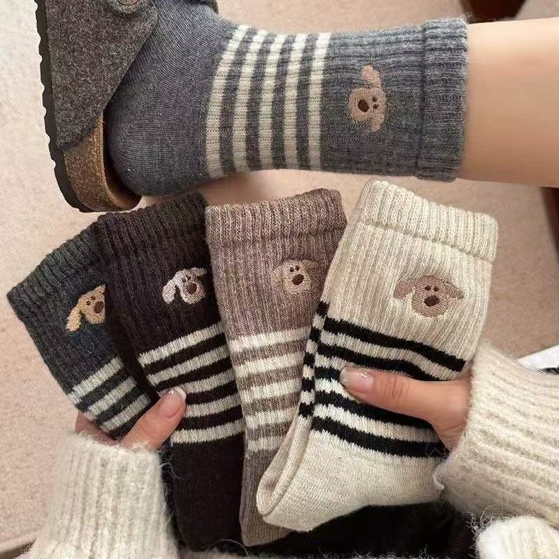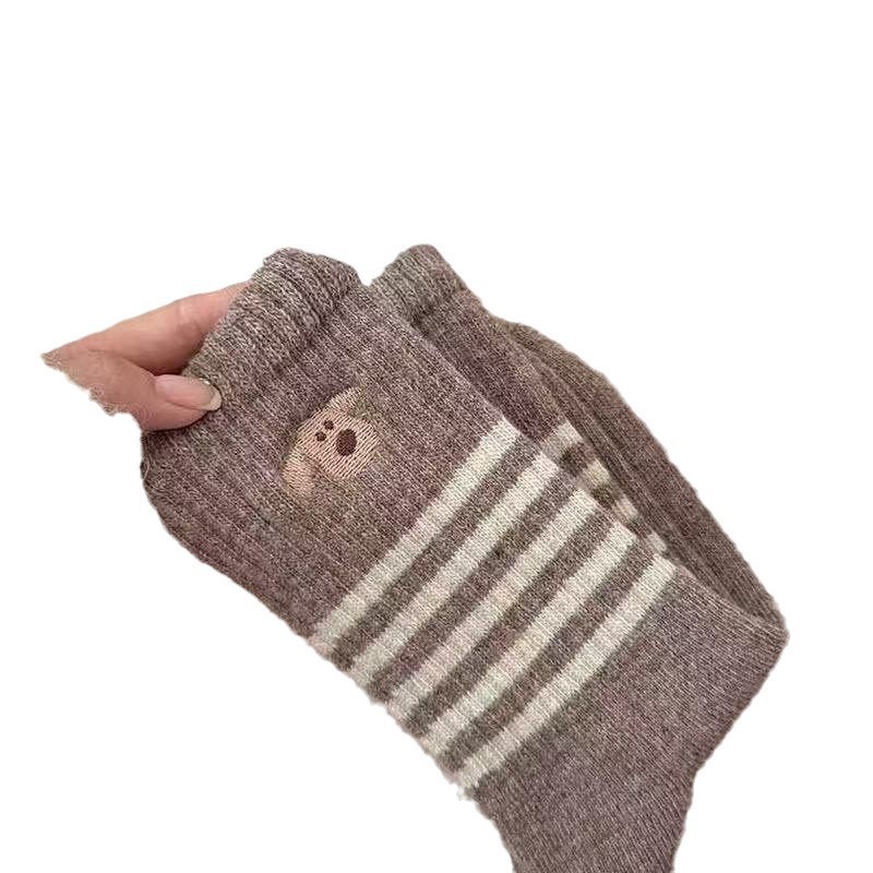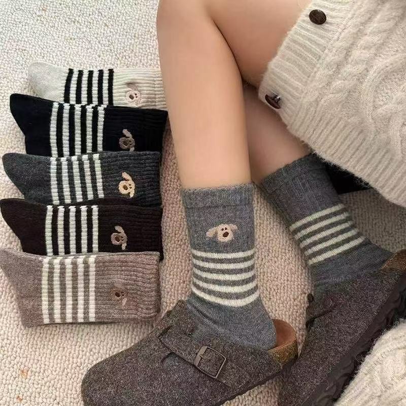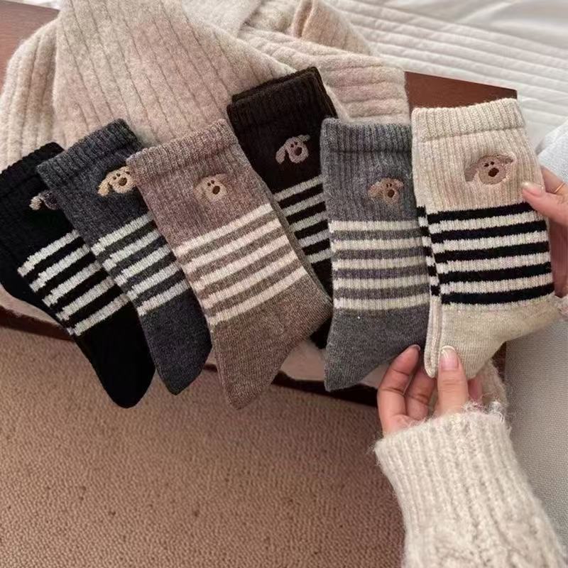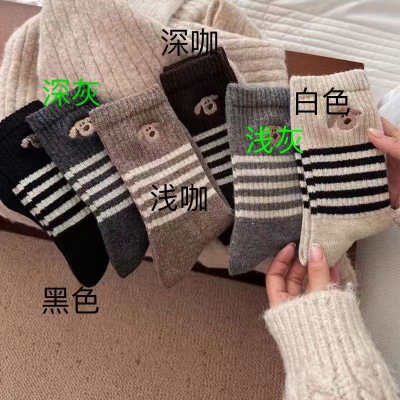 Носки женские средние трубочки зимние толстые полоски корейские сплошные длинные цилиндры ins допамин уложенные носки колледжа стиль дикий