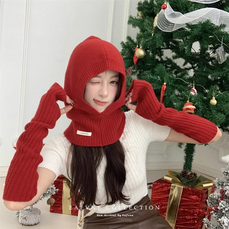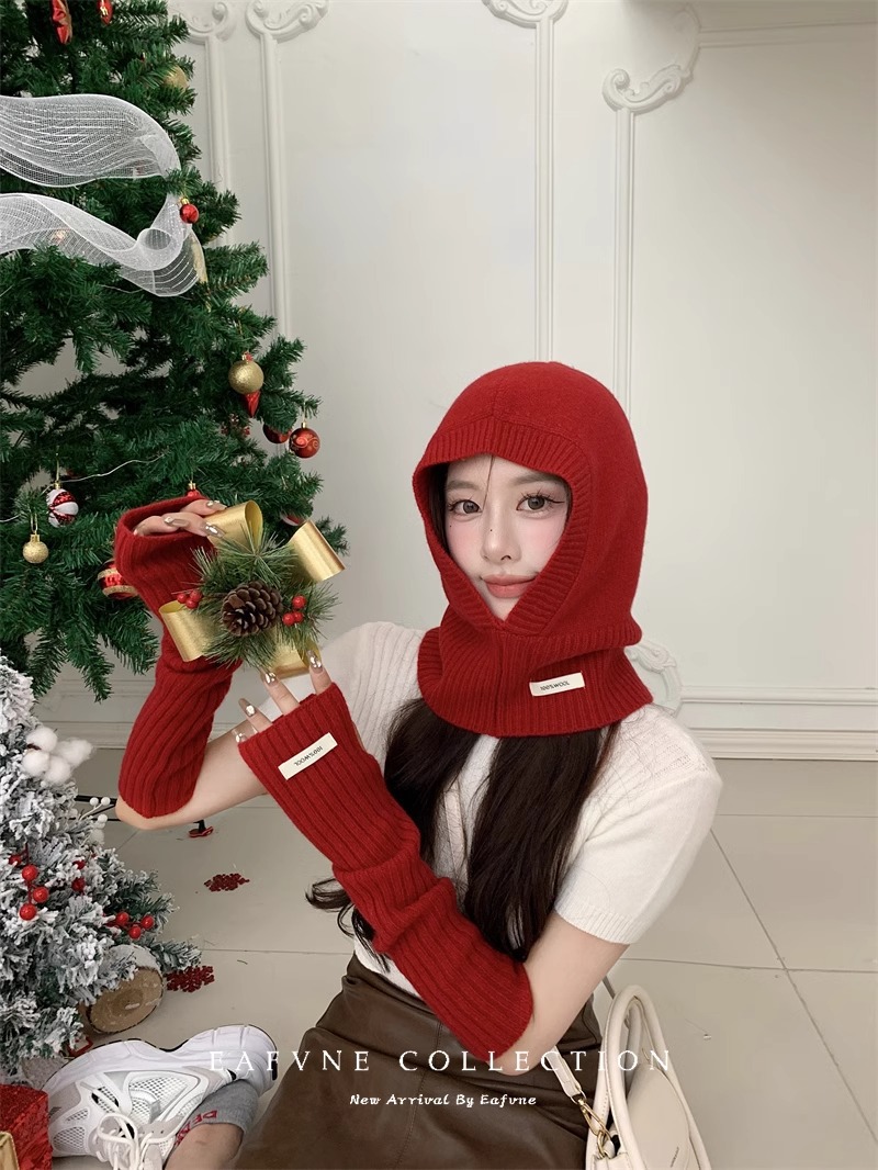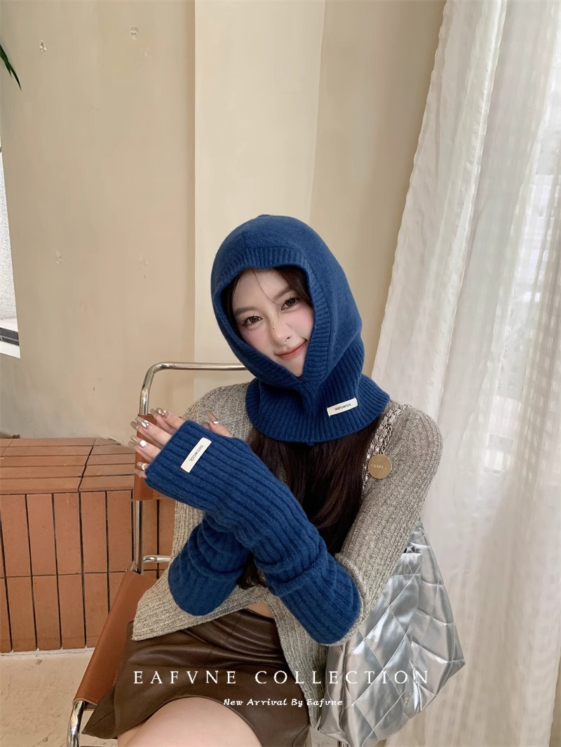 100% шерстяная балаклавская шапка перчатки рукав цельный набор шапки показывает лицо маленькая вязаная шерстяная шапка