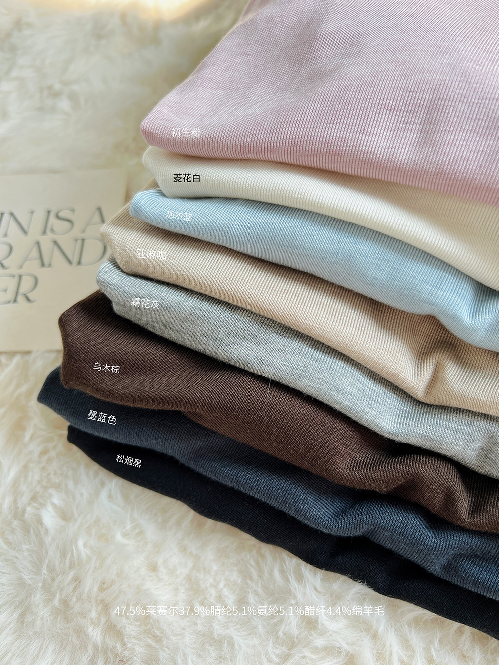 Сплошная цветная мягкая восковая шерстяная рубашка из тенселя, женская модная универсальная корейская футболка с круглым вырезом и длинными рукавами, внутренний топ