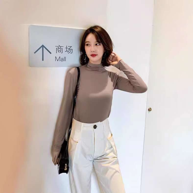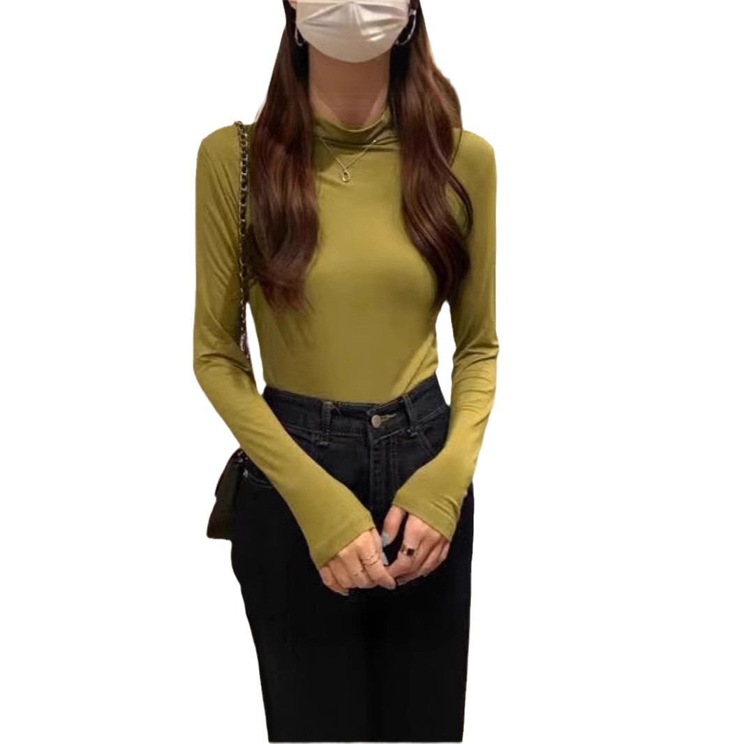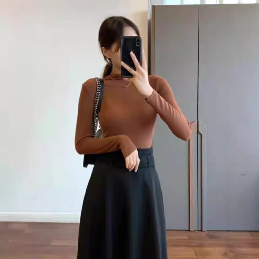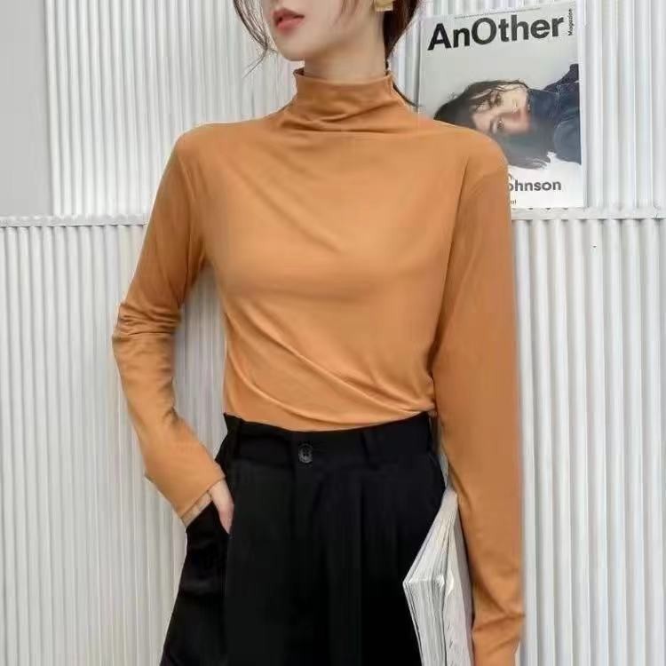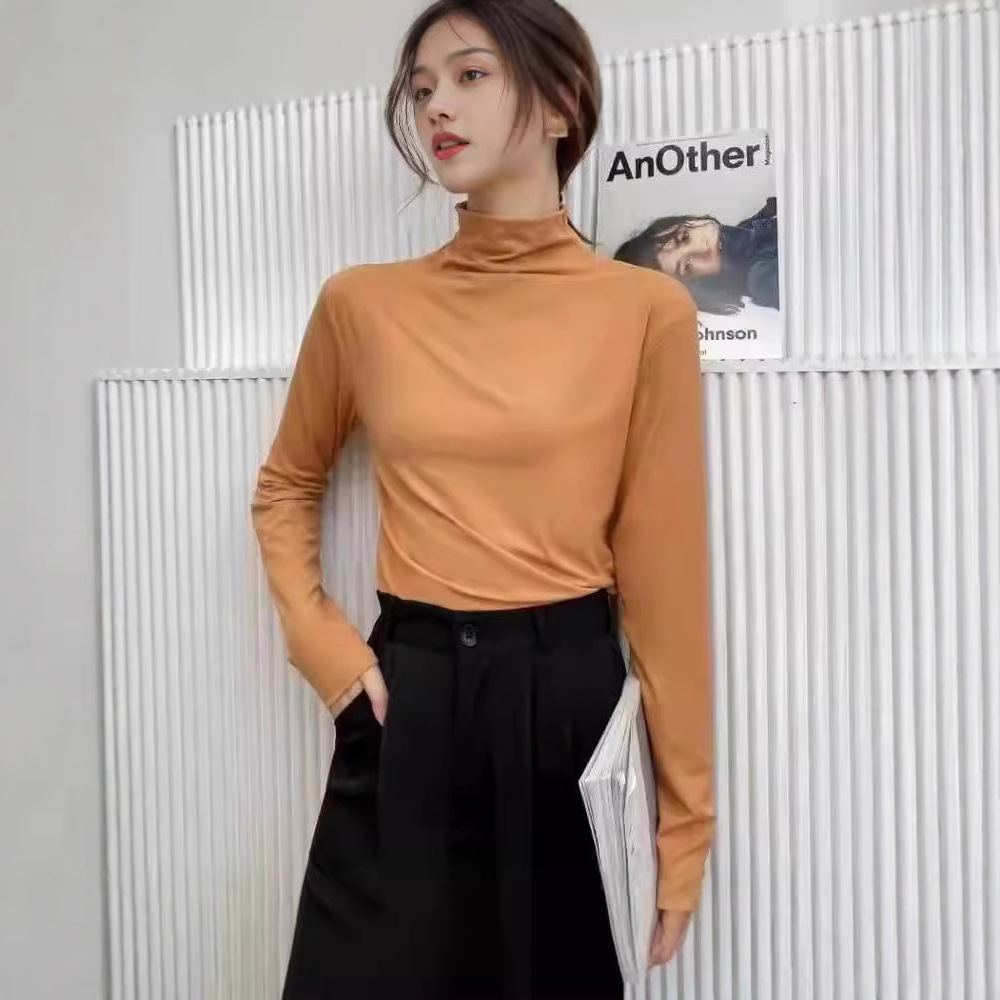 Девятицветная маска одежда женская осень-зима 2025 модельская нижняя рубашка с высоким воротником корейская версия сплошного цвета с длинными рукавами внутри топ оптом