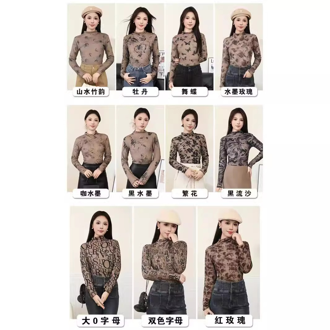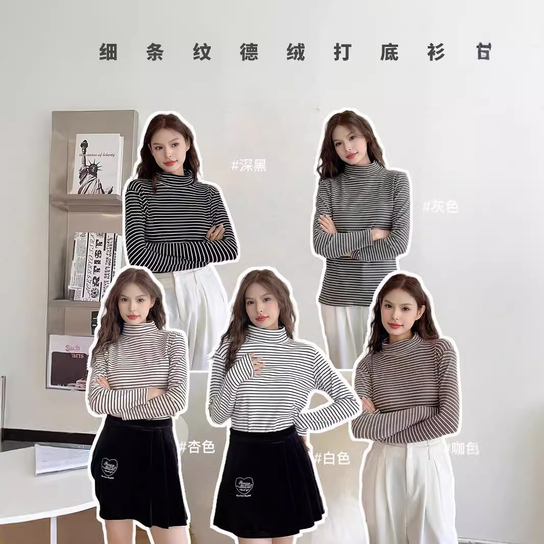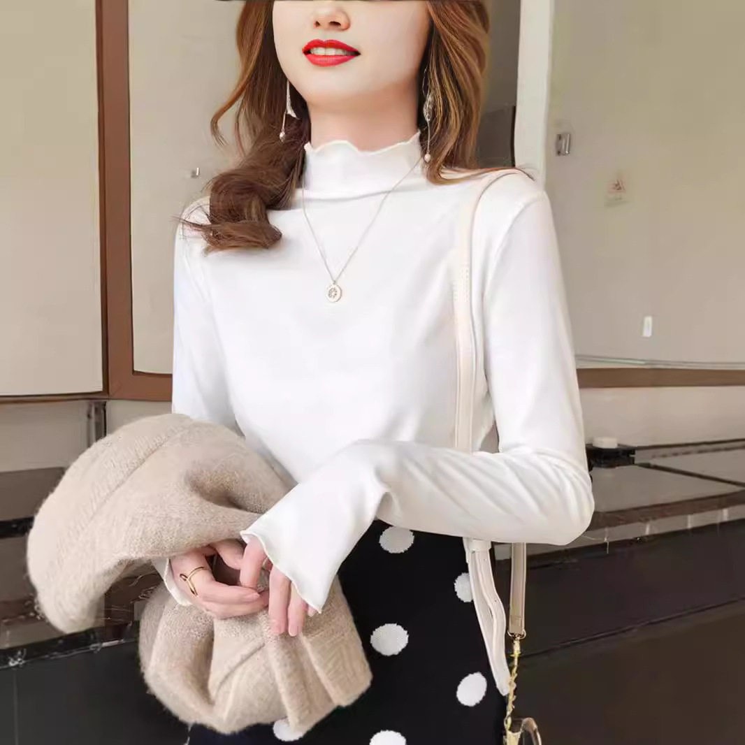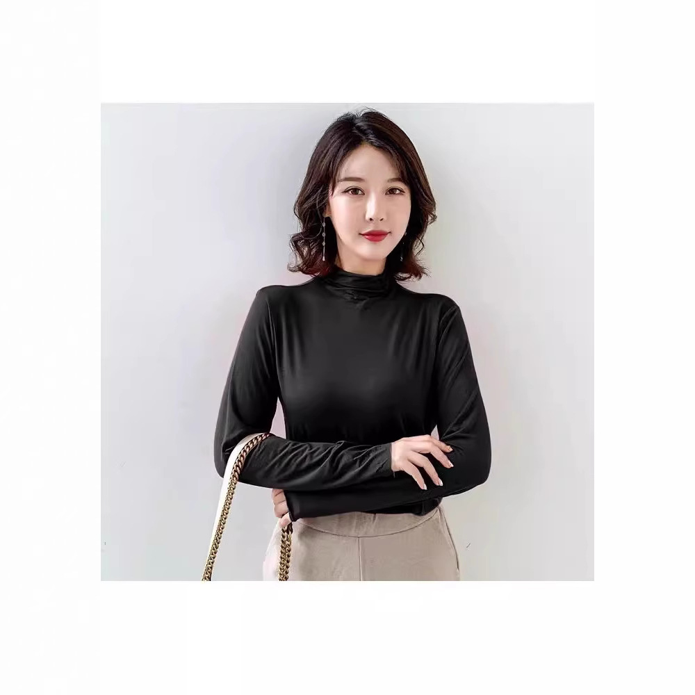 Девятицветная маска одежда женская осень-зима 2025 модельская нижняя рубашка с высоким воротником корейская версия сплошного цвета с длинными рукавами внутри топ оптом