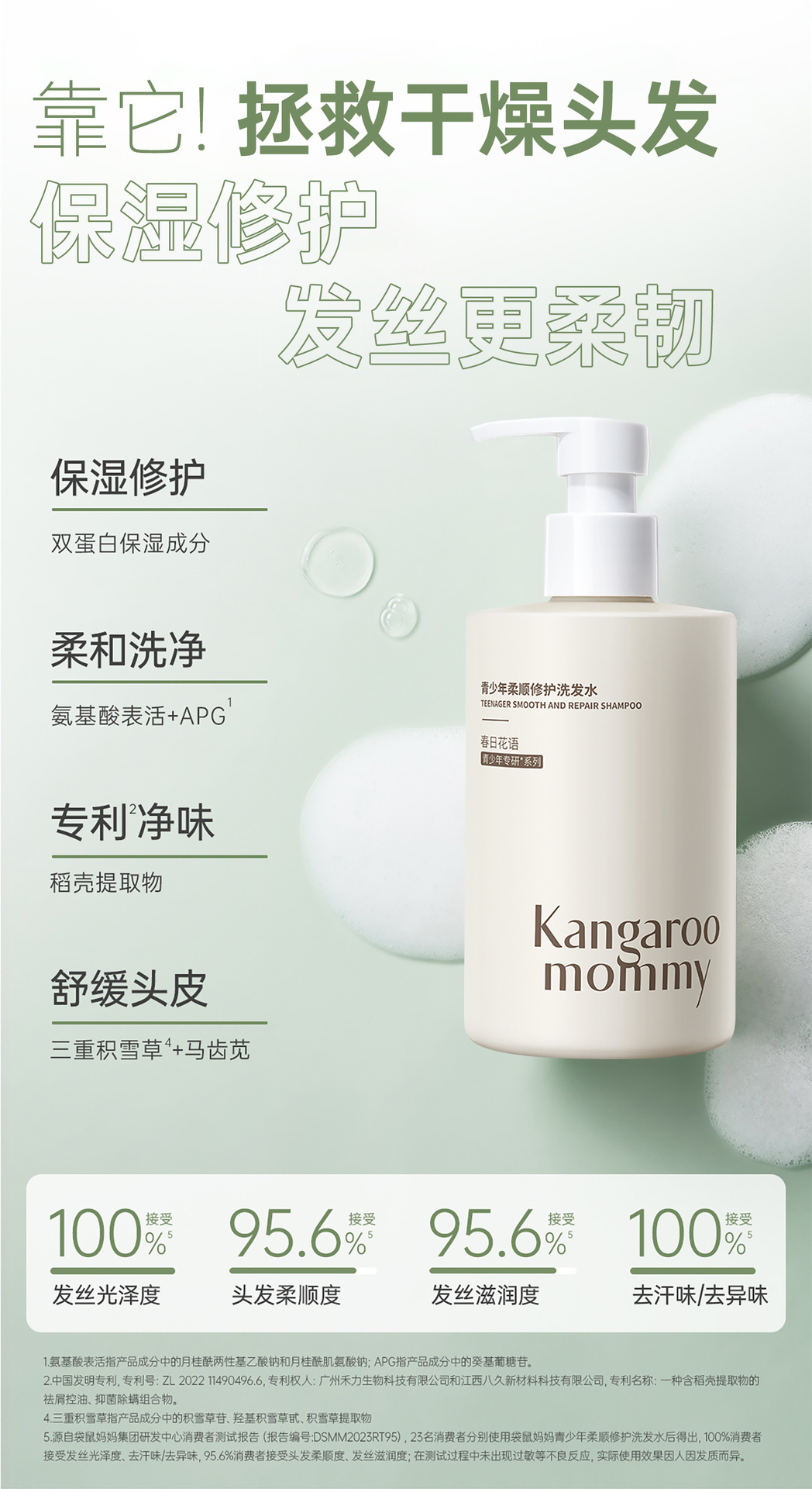 Шампунь Kangaroo Mom Teen для девочек и мальчиков, специальный шампунь против перхоти, контроль жирности, пушистый шампунь против зуда для больших мальчиков