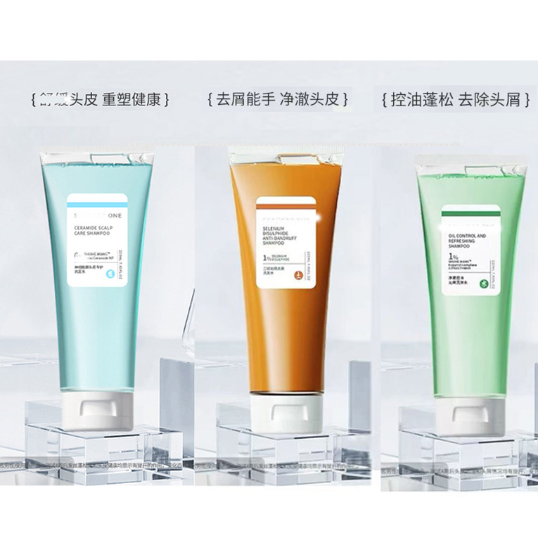 [Средство для удаления масла из зеленой бутылки] Две бутылки; Синяя бутылка [Уход за кожей головы] Две бутылки; [Желтая бутылка против перхоти] Две бутылки