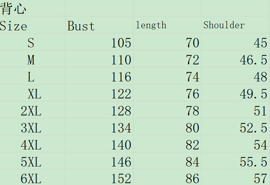 S; M; L; XL; 2XL; 3XL; 4XL; 5XL; 6XL