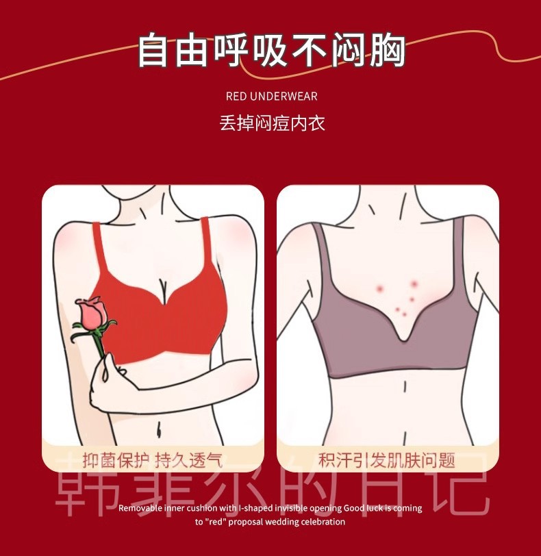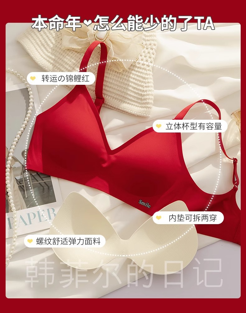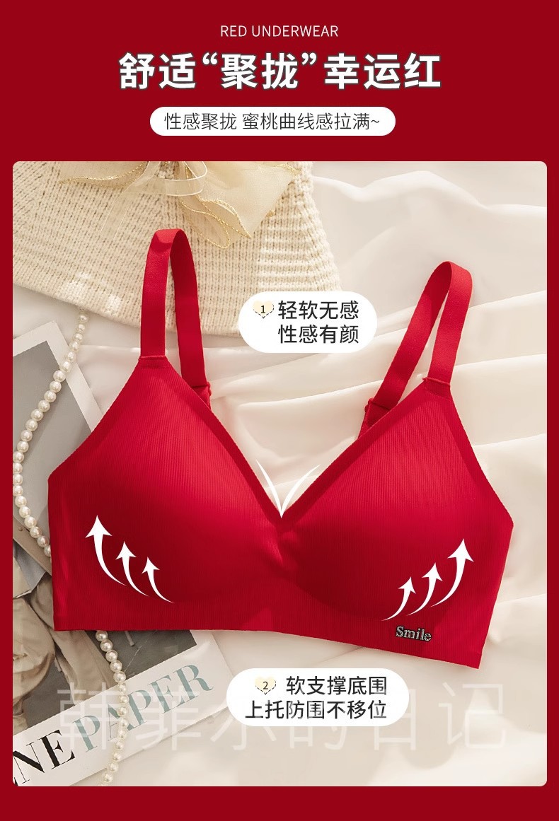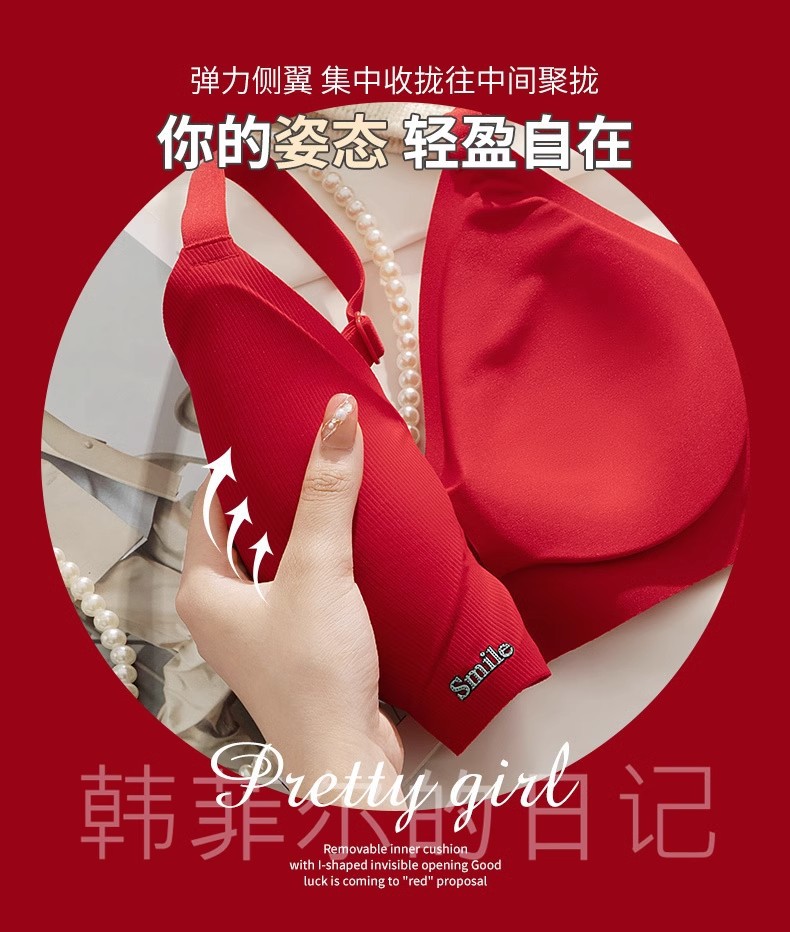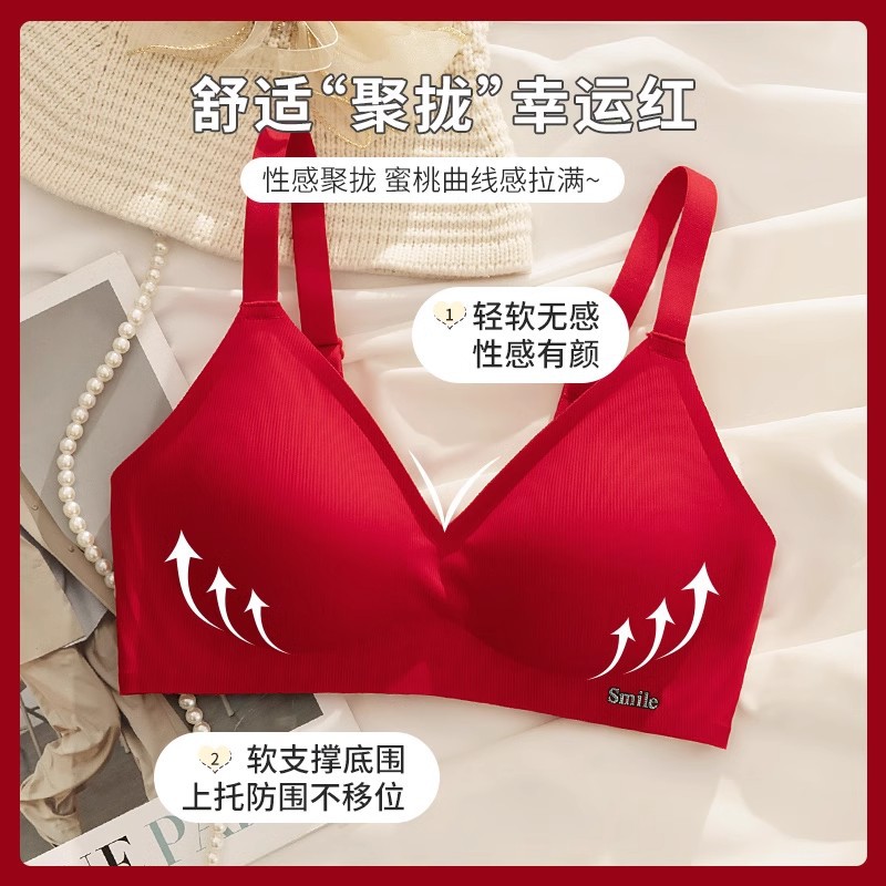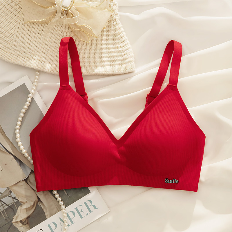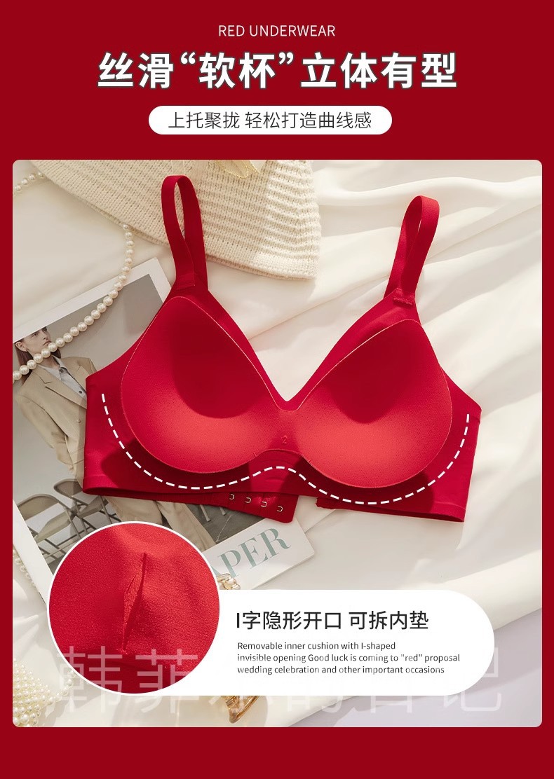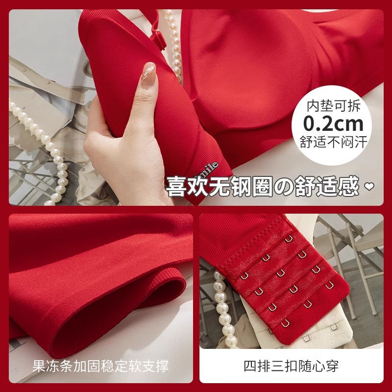 B78 натальный год красного бесшовного нижнего белья женская большая грудь маленькая 3D желе полоски тонкого бюстгальтер для невесты